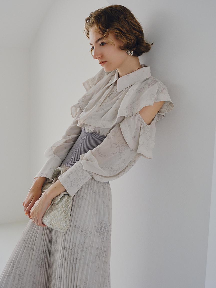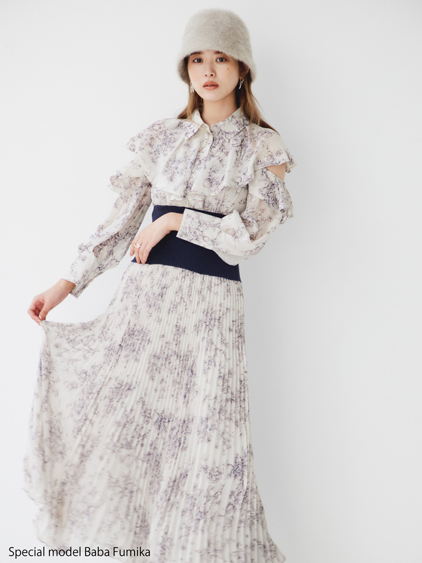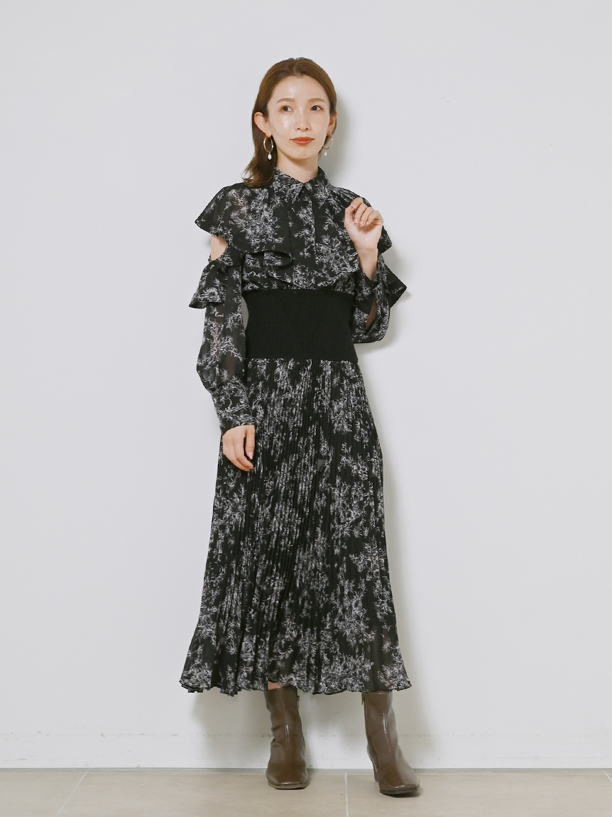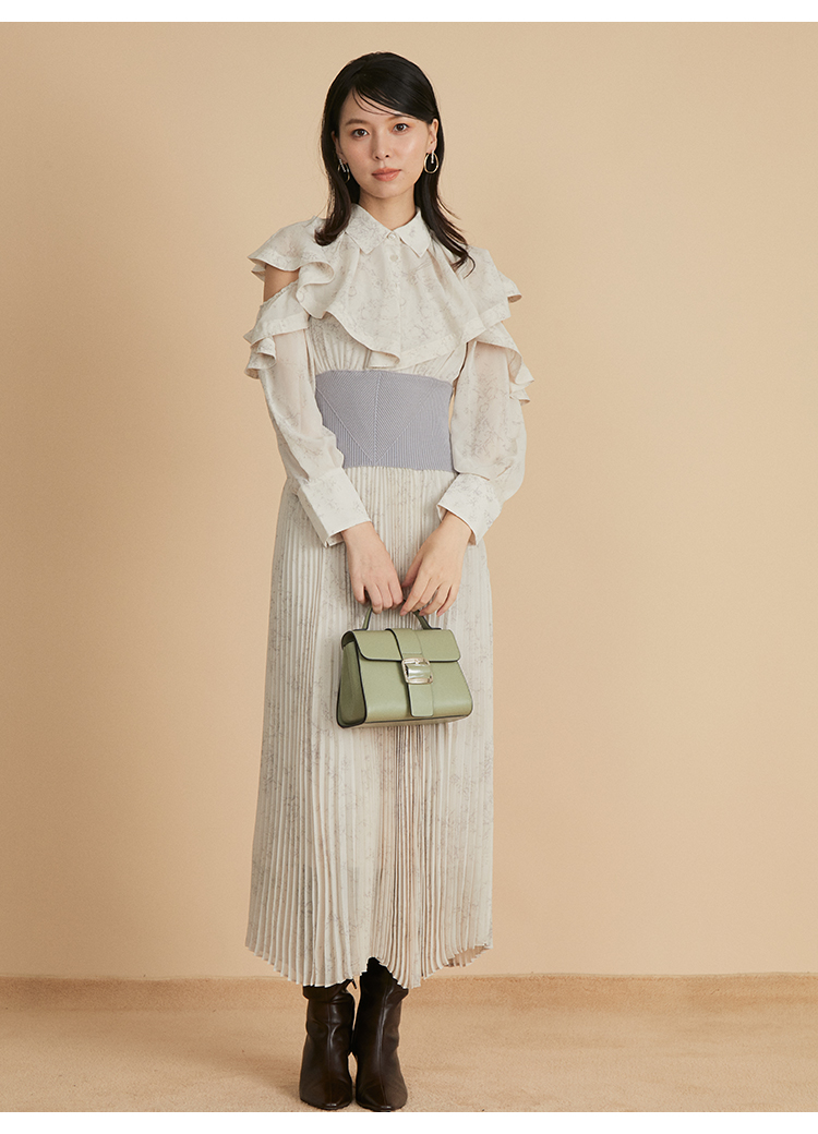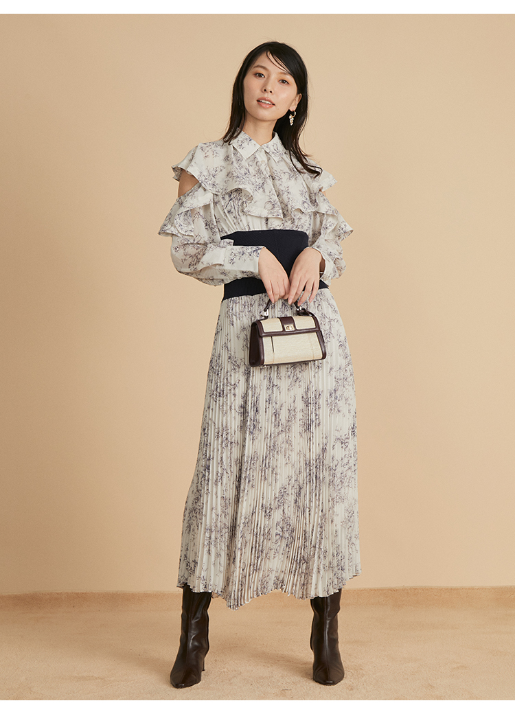 スタイルアップ効果の高いフォルムで人気を集める定番のウエストリブワンピース。今季はトレンドのシャツ衿を採用しデザインを大幅にアップデートしました。袖も「SNIDEL」らしくセンシュアルな開きをプラスし女性らしさを演出。カラーごとに異なるオリジナルのプリントをのせ華やかな雰囲気に仕上げています。