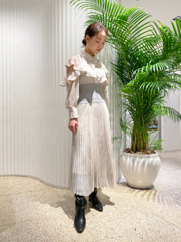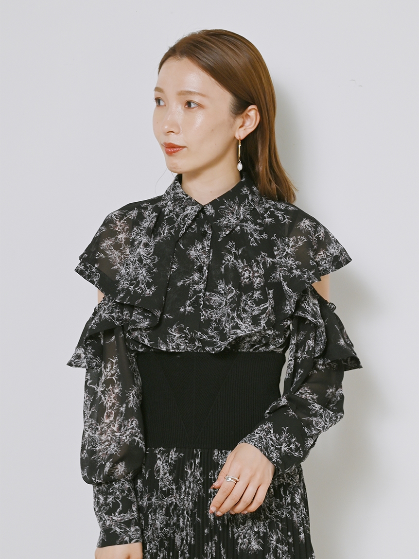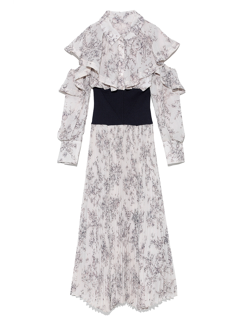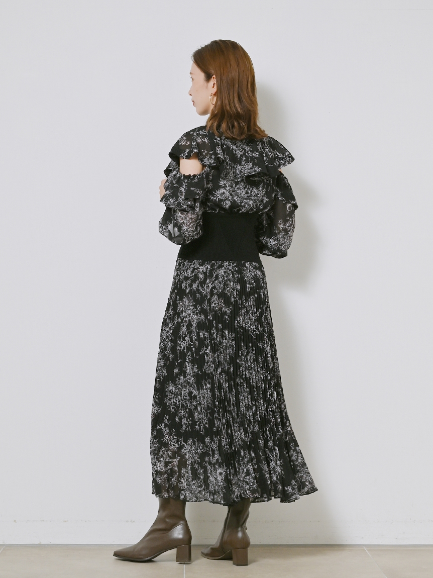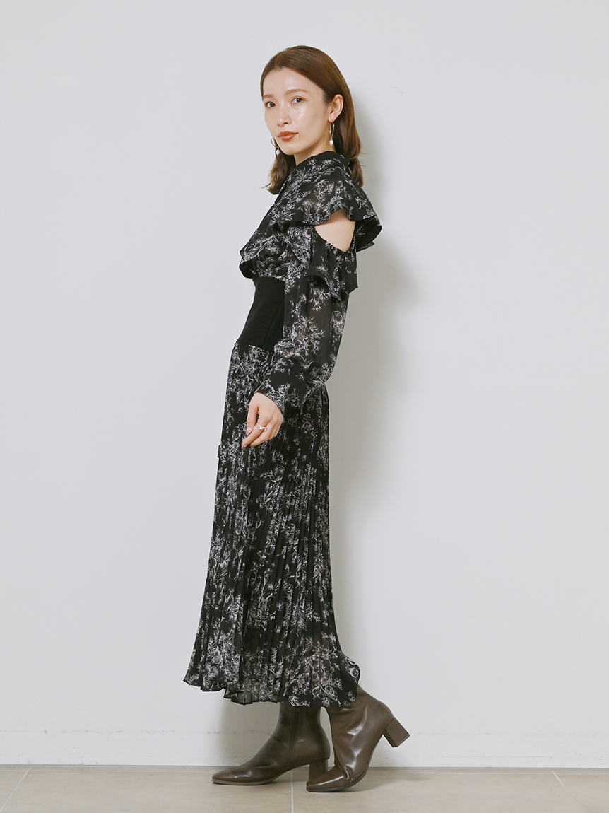 スタイルアップ効果の高いフォルムで人気を集める定番のウエストリブワンピース。今季はトレンドのシャツ衿を採用しデザインを大幅にアップデートしました。袖も「SNIDEL」らしくセンシュアルな開きをプラスし女性らしさを演出。カラーごとに異なるオリジナルのプリントをのせ華やかな雰囲気に仕上げています。