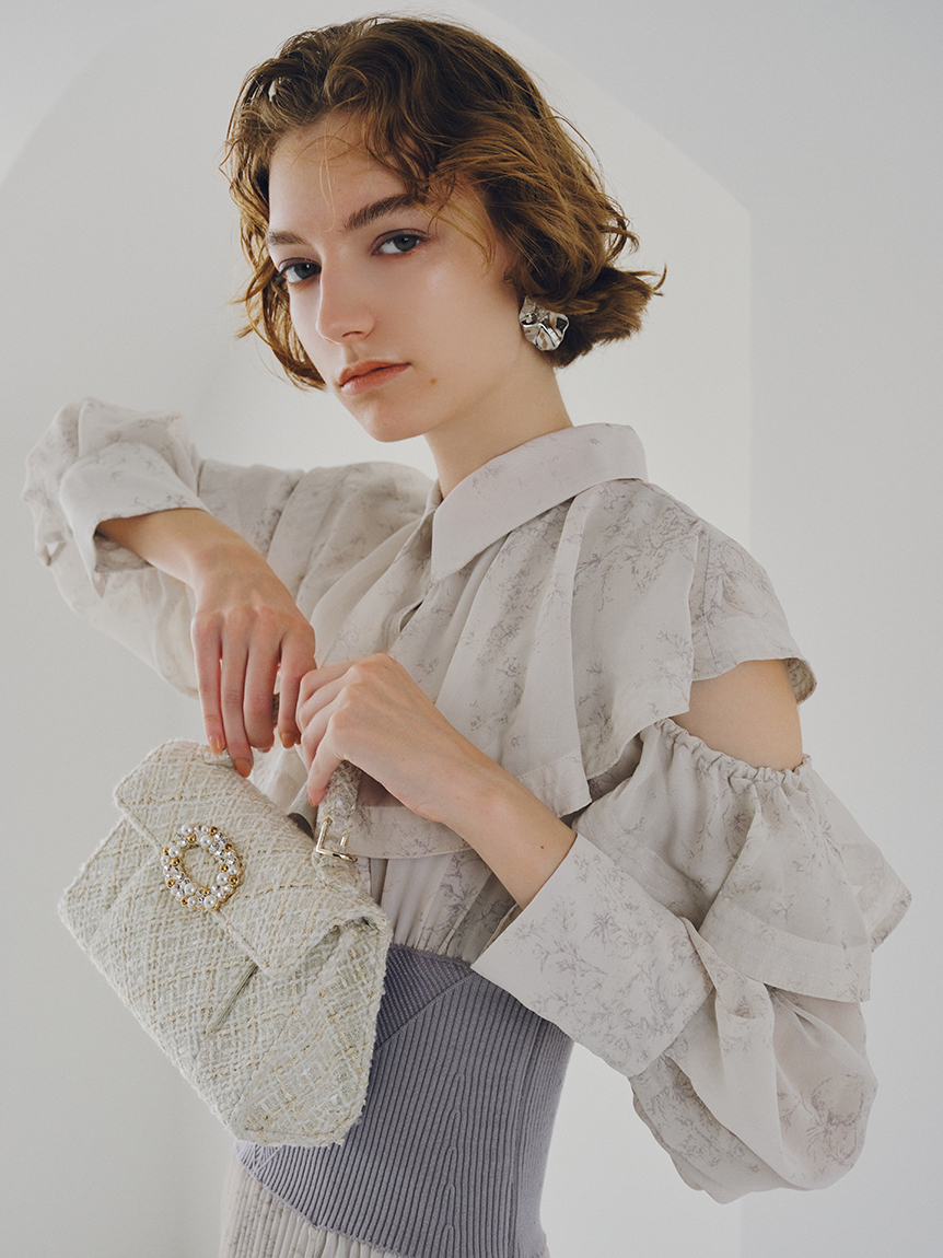 ほんのり透け感のある軽やかなファブリックを使用しました。優しい色合いのライトグレー、華やかな雰囲気のブラック、バイカラーでメリハリ感のあるネイビーの3色をご用意。