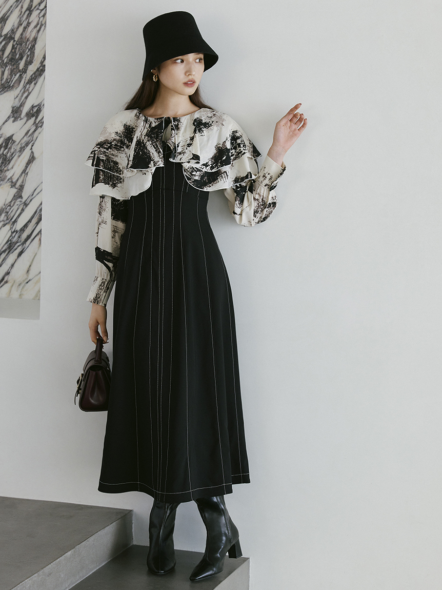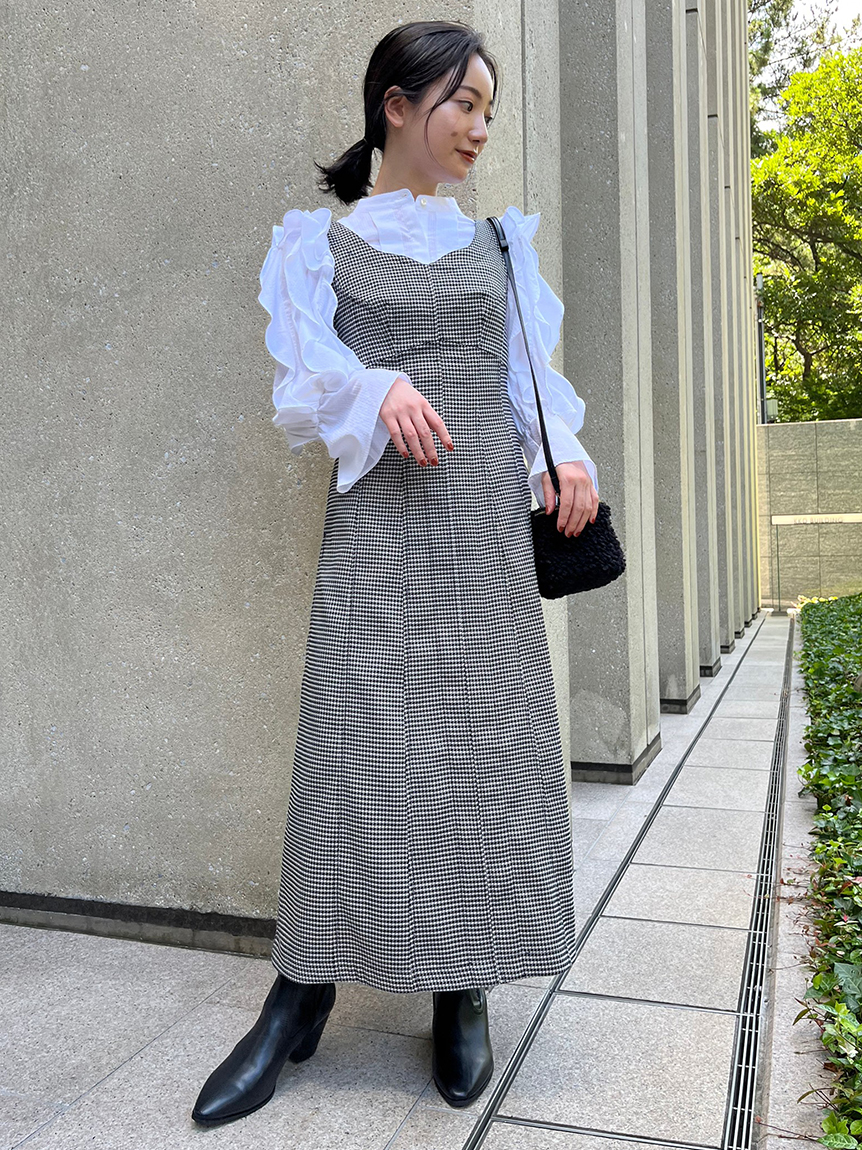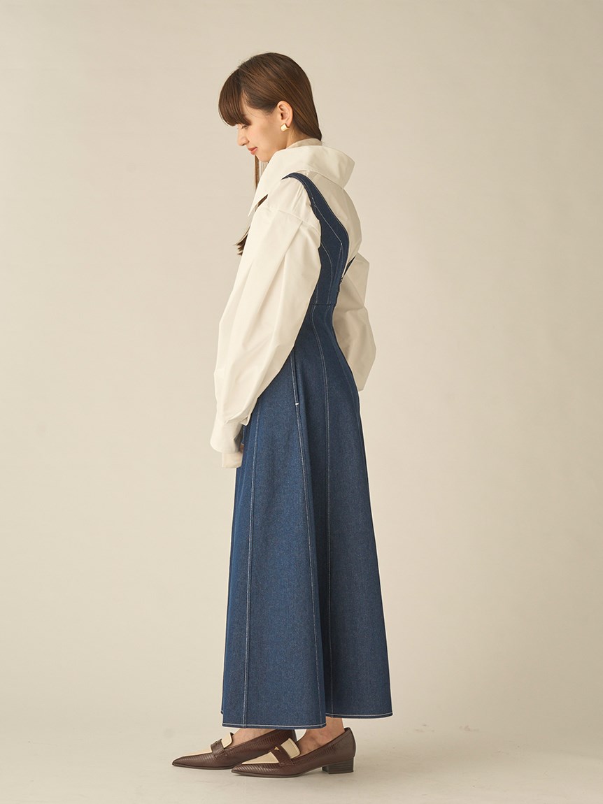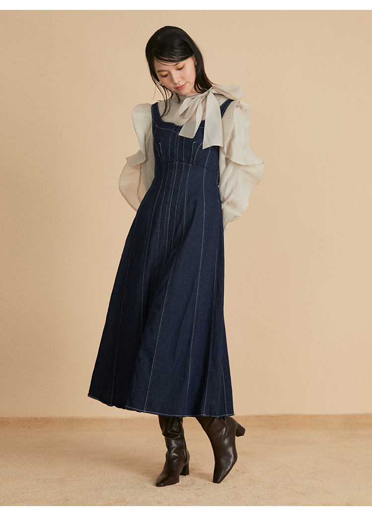 コルセットライクなディテールが特徴的な、モードな雰囲気を漂わせるジャンスカ。巧みな切り替えデザインで身体のラインを美しく見せてくれるような縦ラインにこだわりました。無地タイプは配色のステッチが効いて更にスタイルアップを叶えてくれます。オーバーシャツを合わせたり、ハイネックのニットと合わせたりと、様々なレイヤードスタイルが楽しめます。