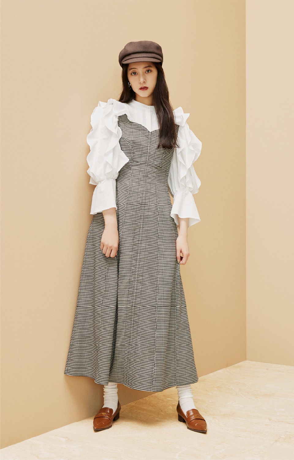 表情感のある素材を使用したブラック、程よくカジュアルなデニム素材を用いたインディゴ、秋らしい千鳥柄が広がるチェックの3色をご用意しました。