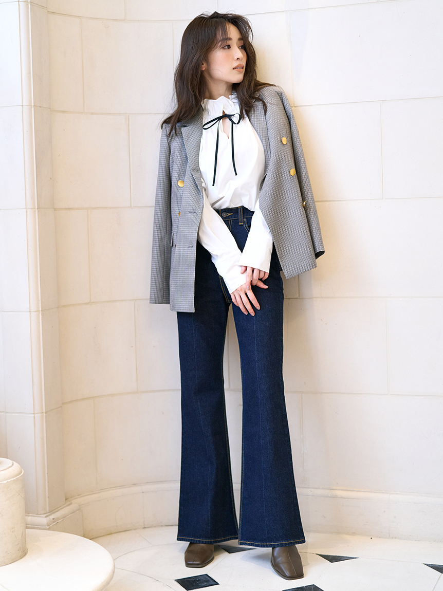 「SNIDEL」定番のテーラードジャケットが今季も到着。王道クラシカルなダブルブレストデザインで、洗練された印象を与えるこだわりの1着です。ゆったりとし過ぎずジャスト過ぎない絶妙なサイズ感がこなれ感を与える秘訣。やや丈長でパンツともスカートともバランスが取りやすく、ワードローブに加えればスタイリングの幅がぐっと広がります。同素材を用いたスラックス(SWFP224041)とセットアップでスタイリングするのもオススメ。