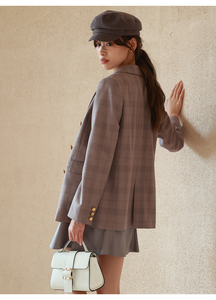 品の良さを感じさせるきれいめなファブリックで仕立てました。リサイクルペットボトルの素材を使用したサステナブルな商品です。秋冬らしいチェック柄のモカ、上品な印象を与えるネイビー、クラシカルなミックスの3色展開でお届けします。