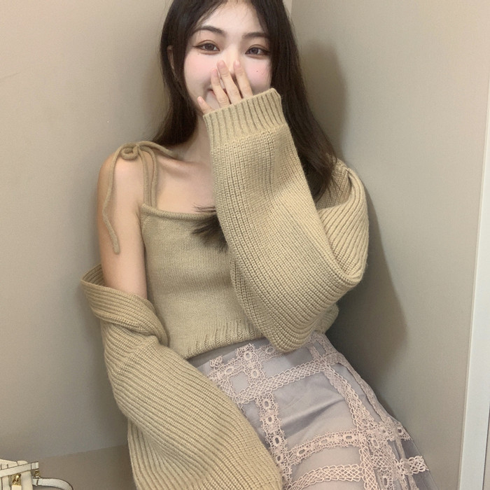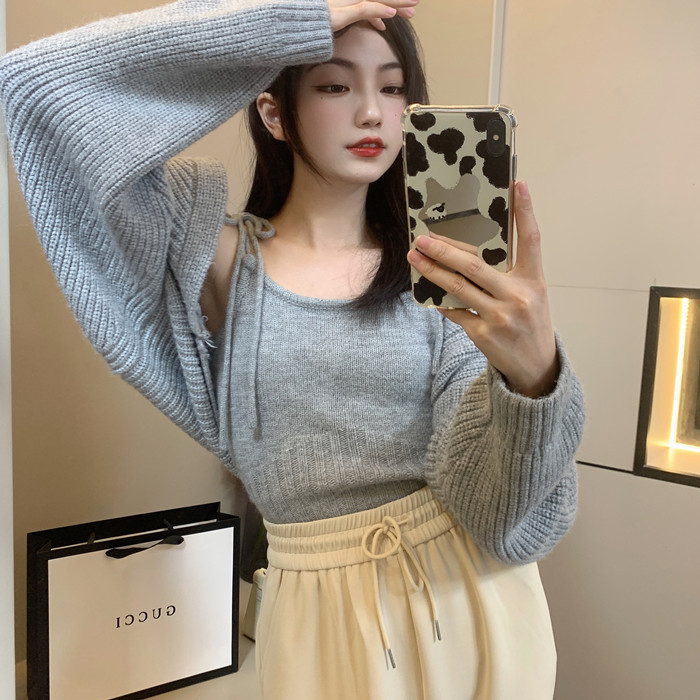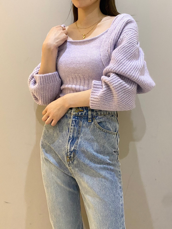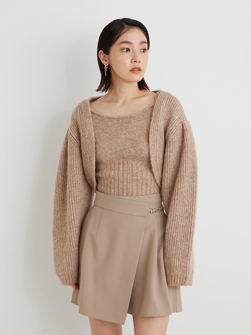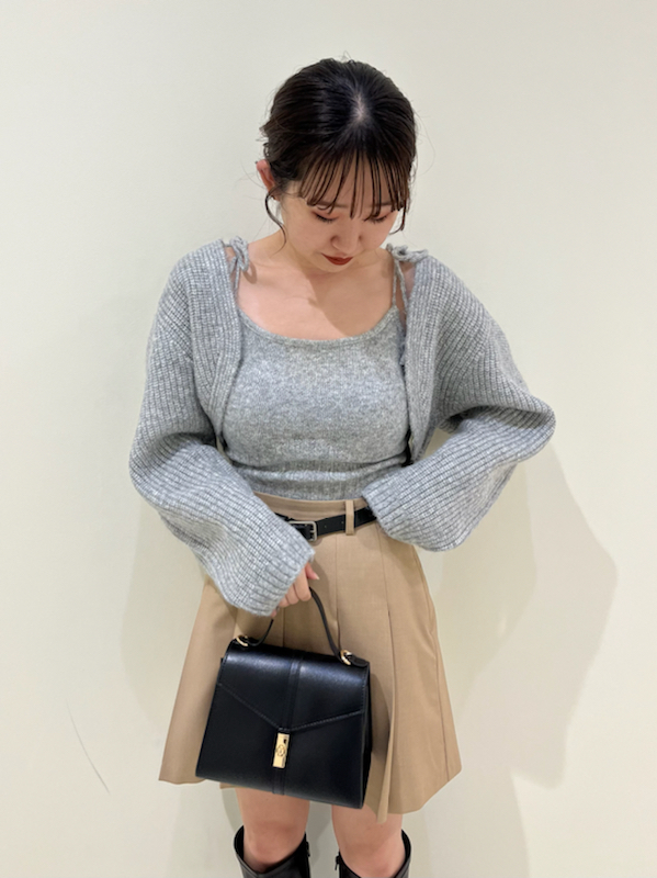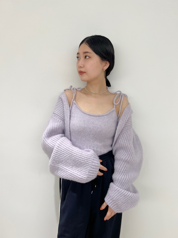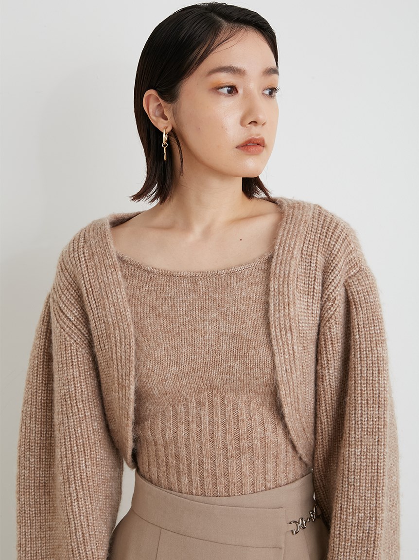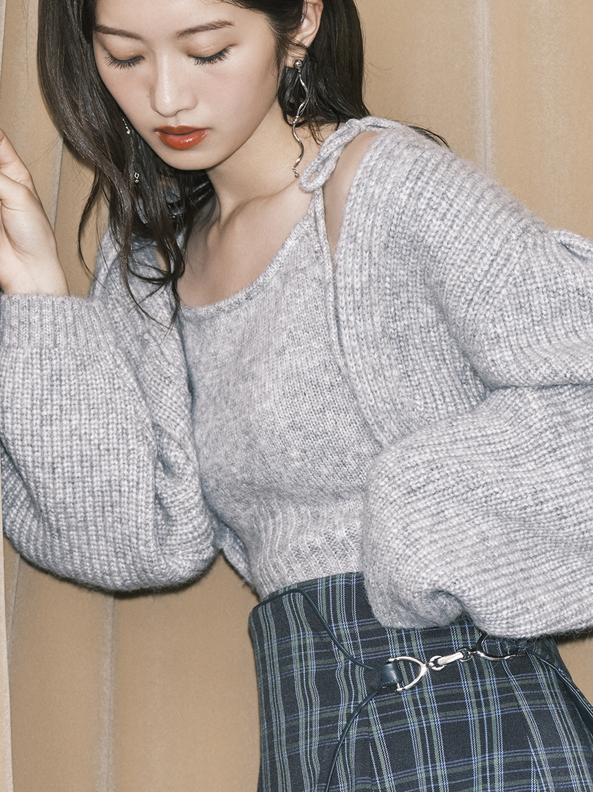 秋冬のスタイリングに欠かせないボレロカーディガンとニットキャミソールの万能アンサンブル。キャミソールは肩紐を女性らしいリボンディテールにしているので、お好みの位置で結ぶことが可能。ボレロはルーズにゆるっと着られるサイズ感で、程よい抜け感を与えてくれます。それぞれ別々でもお使い頂け、幅広いコーディネートに活躍するアイテムです。