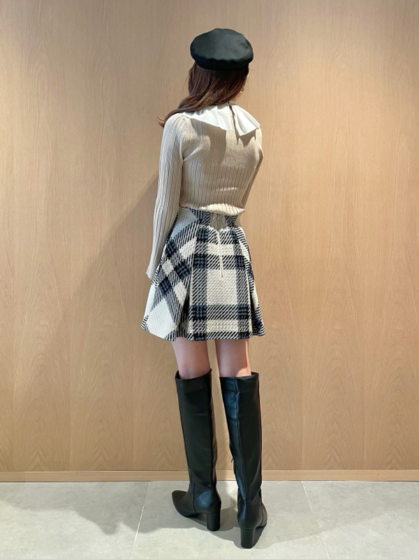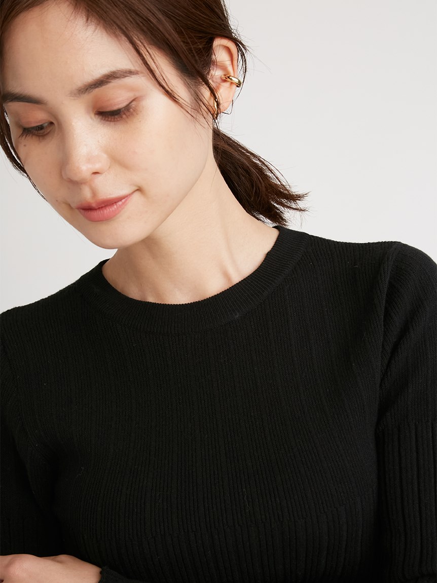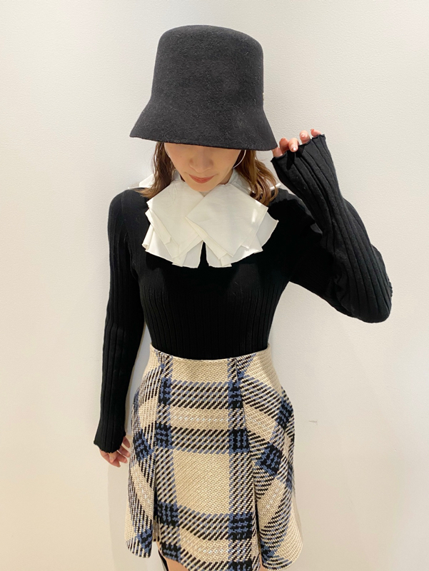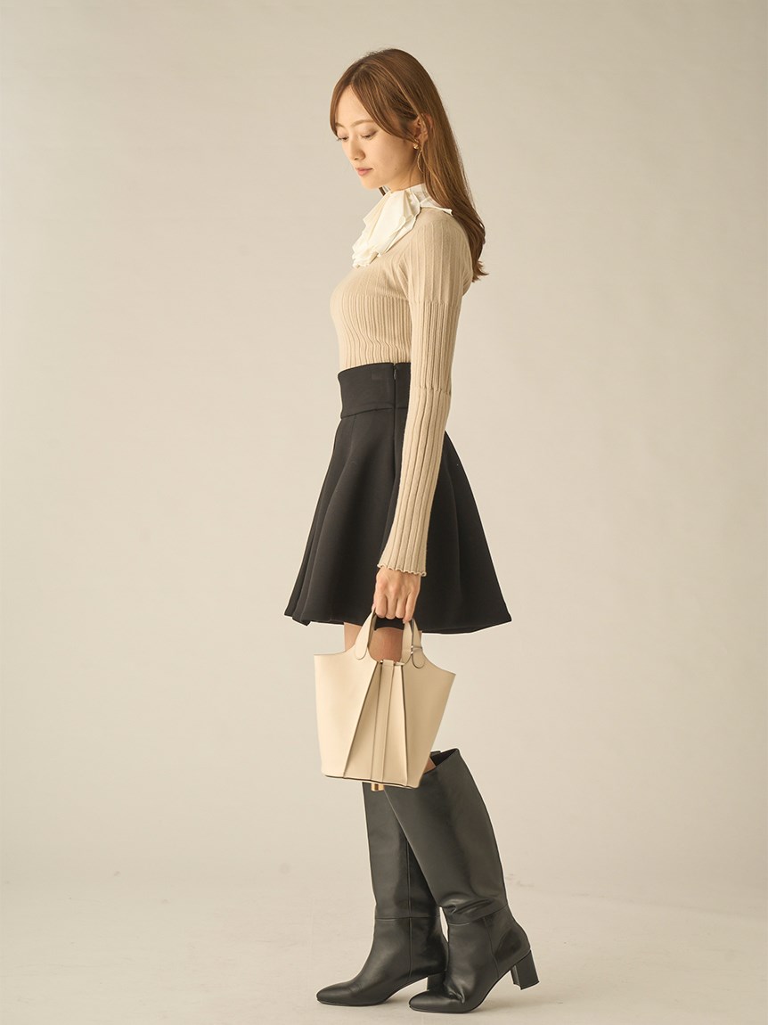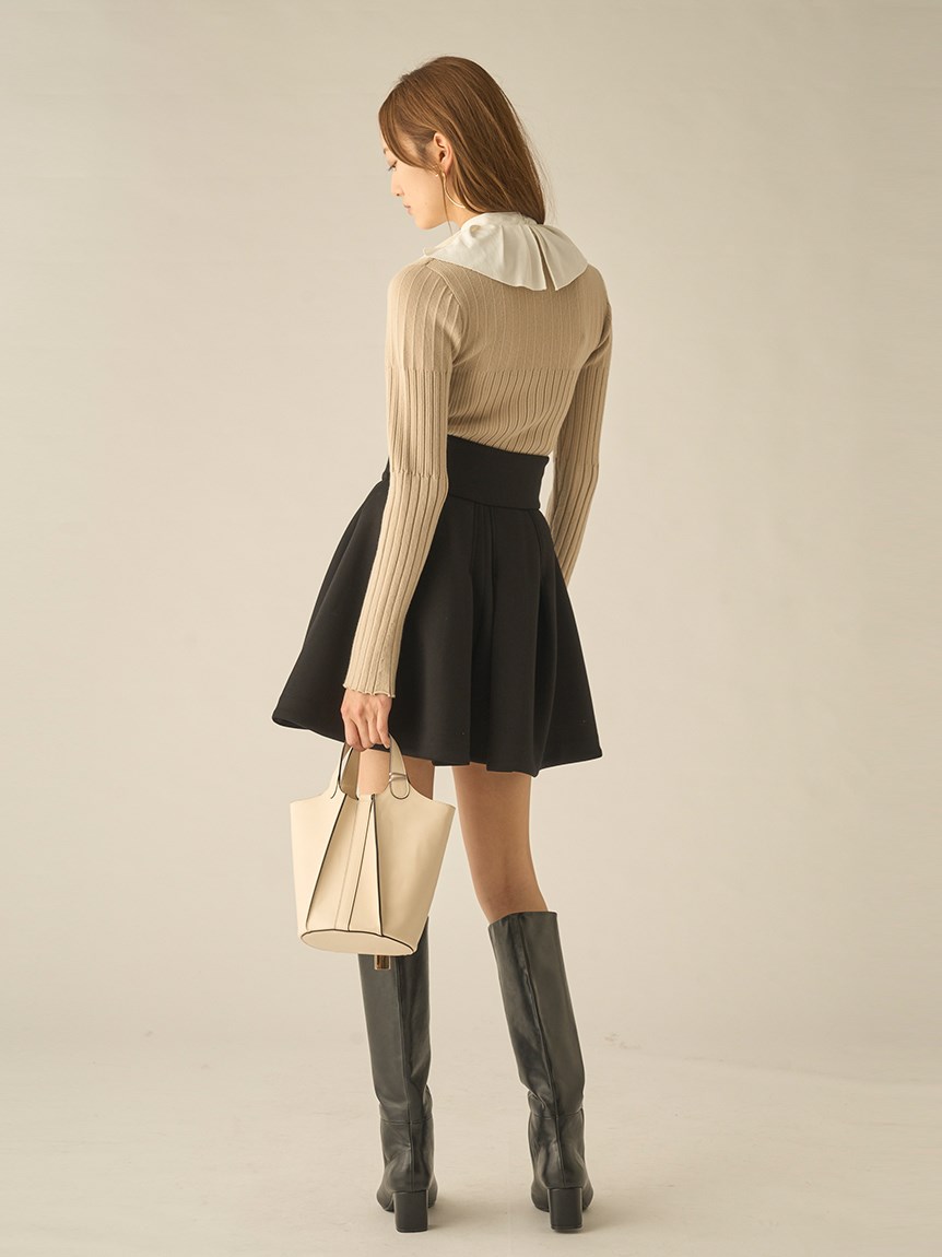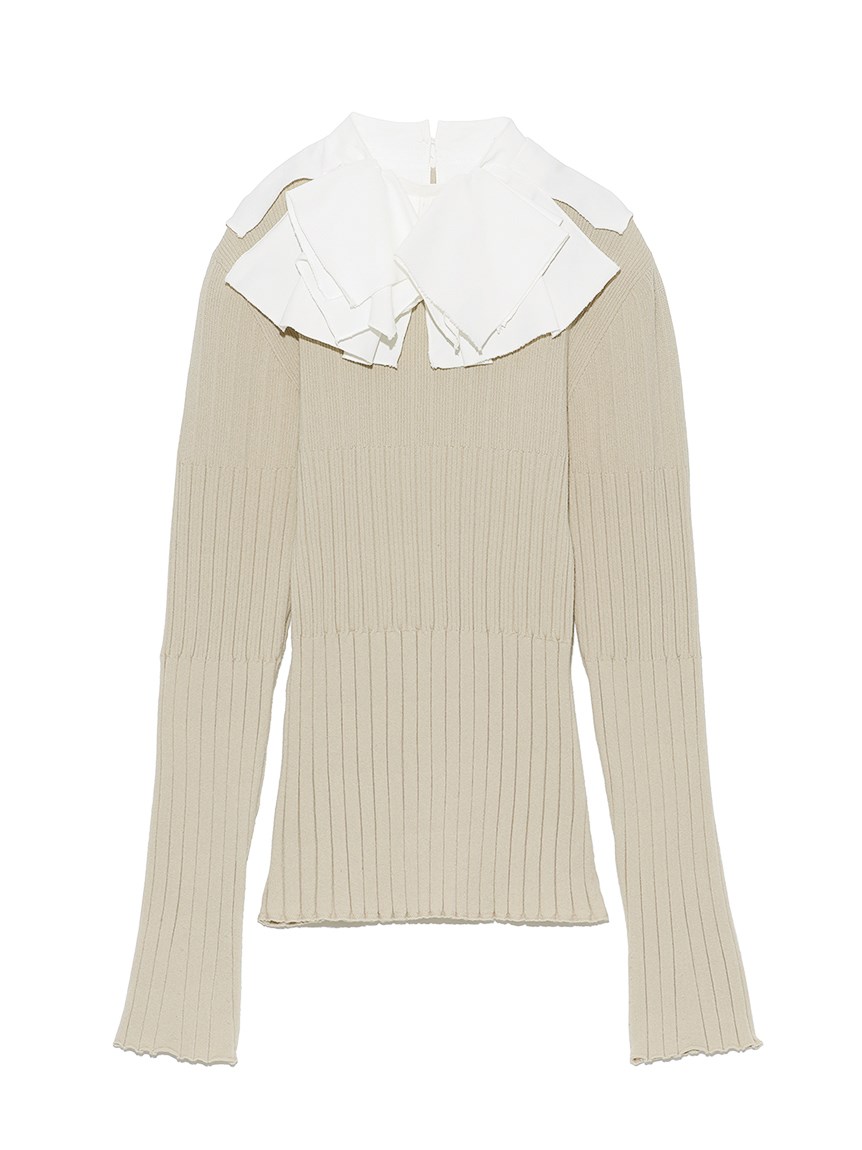 編地を切り替えたリブニットとシャツ地の襟を組み合わせました。ブラック、ライトベージュ、ブラウンの着まわしやすいカラー展開でお届けします。
