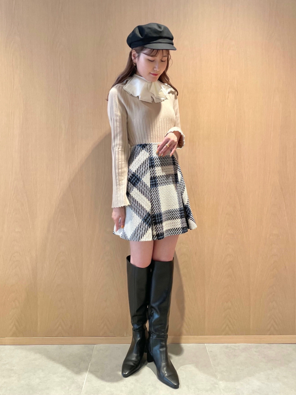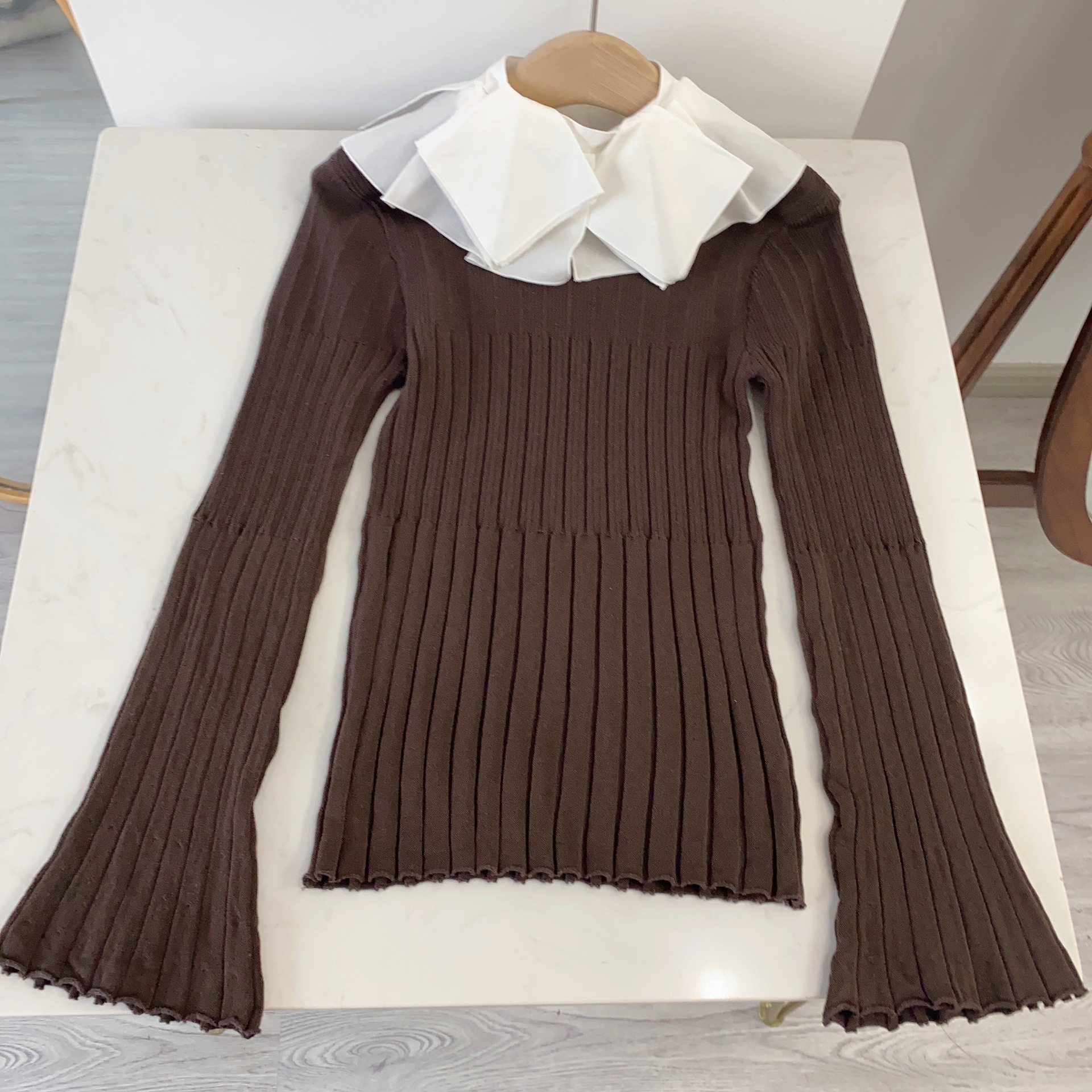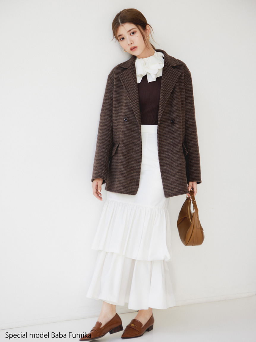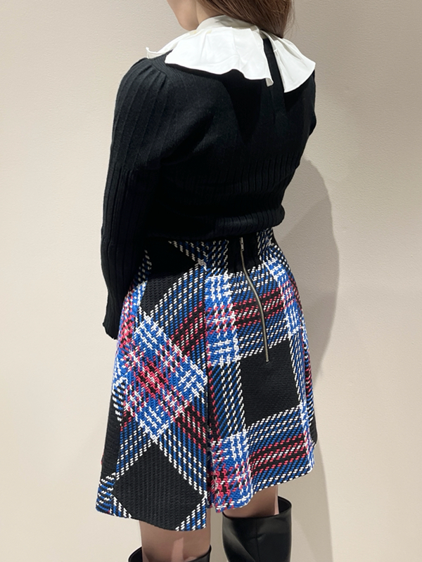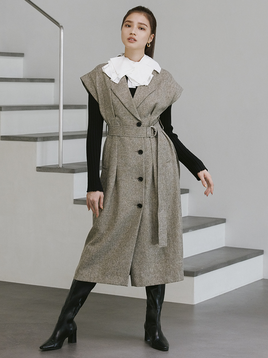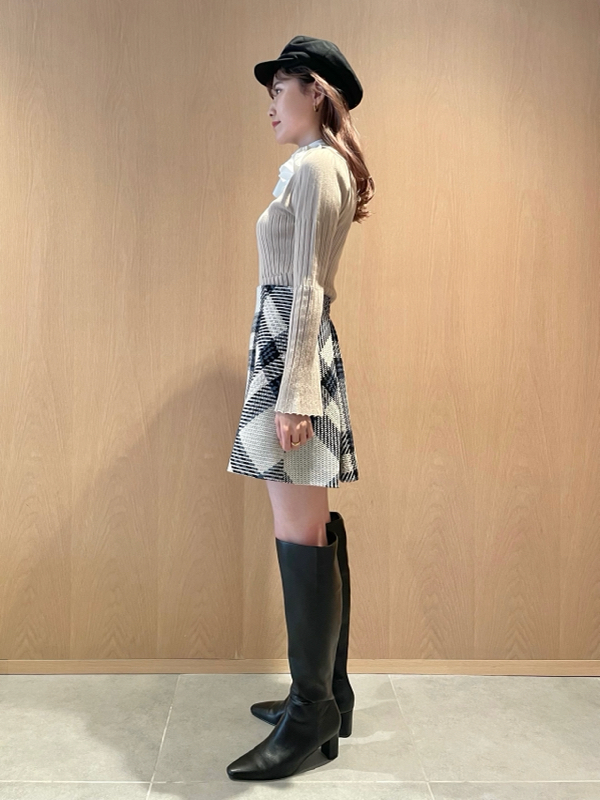 編地を切り替えたリブニットとシャツ地の襟を組み合わせました。ブラック、ライトベージュ、ブラウンの着まわしやすいカラー展開でお届けします。