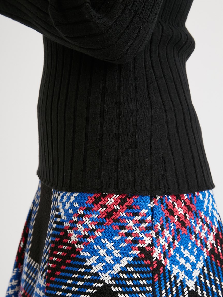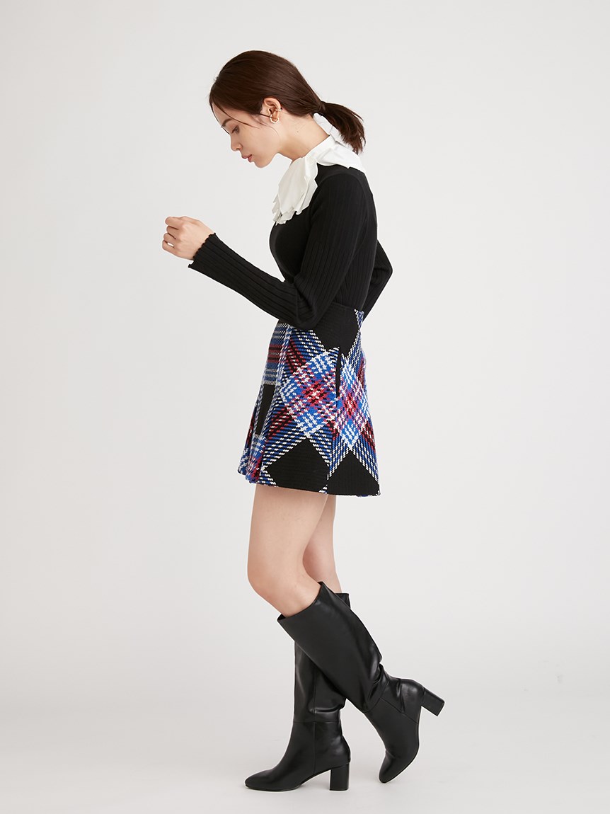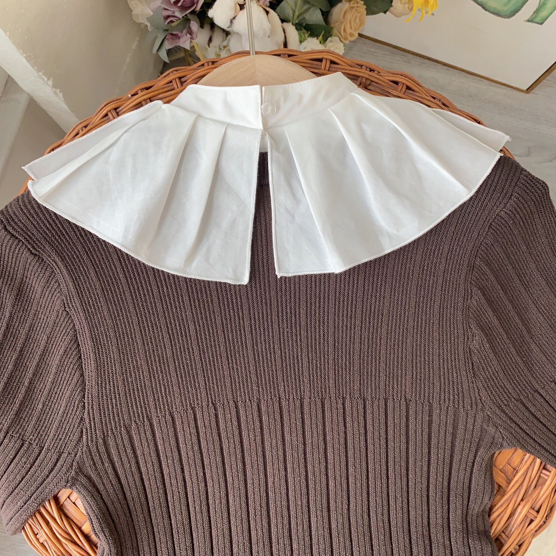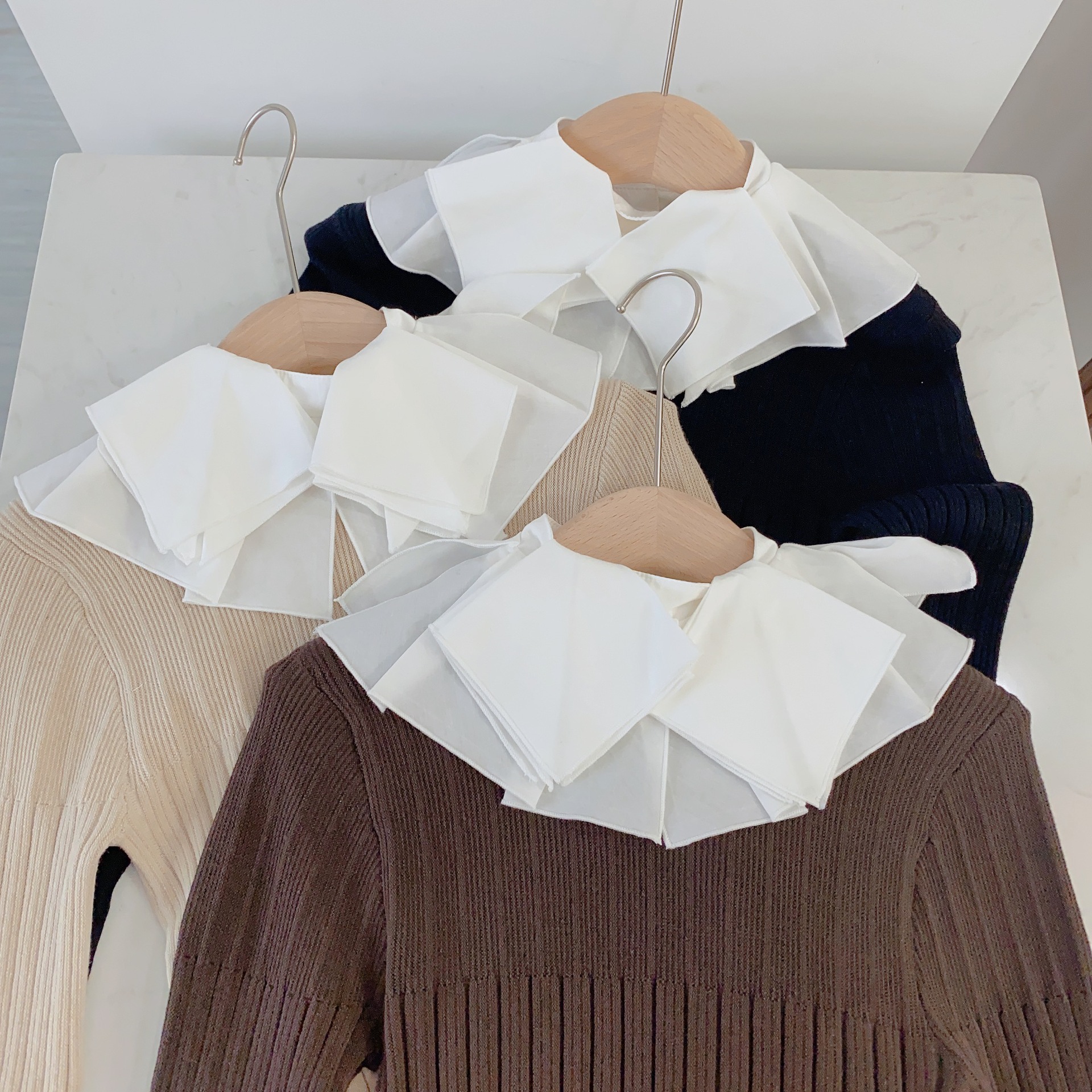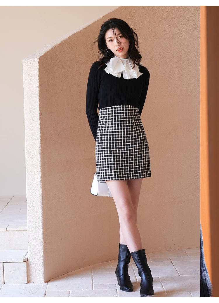 編地を切り替えたリブニットとシャツ地の襟を組み合わせました。ブラック、ライトベージュ、ブラウンの着まわしやすいカラー展開でお届けします。