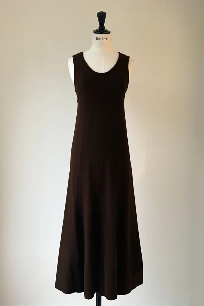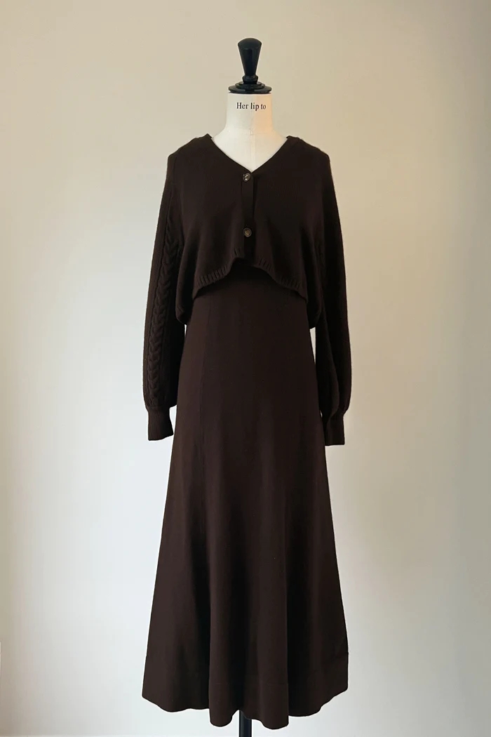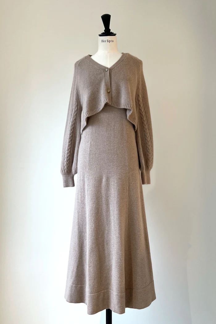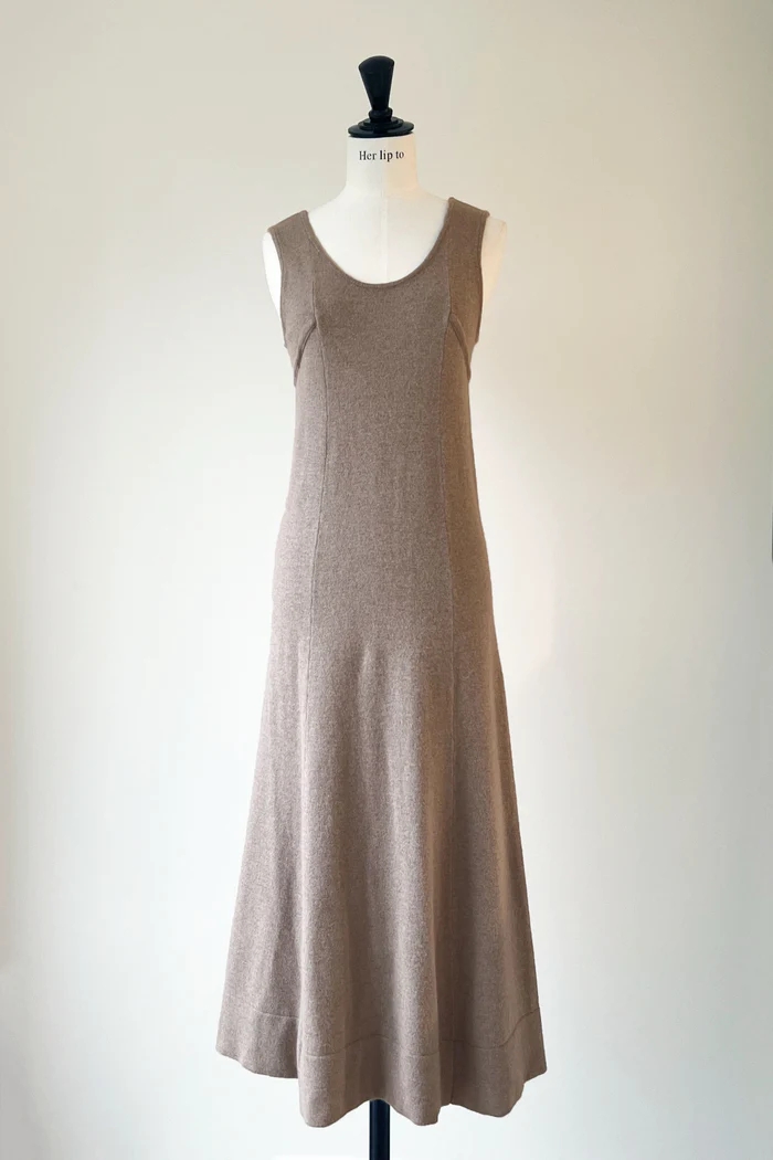 緩いフレアシルエットが優美で大人なニットワンピースに仕上がりました。