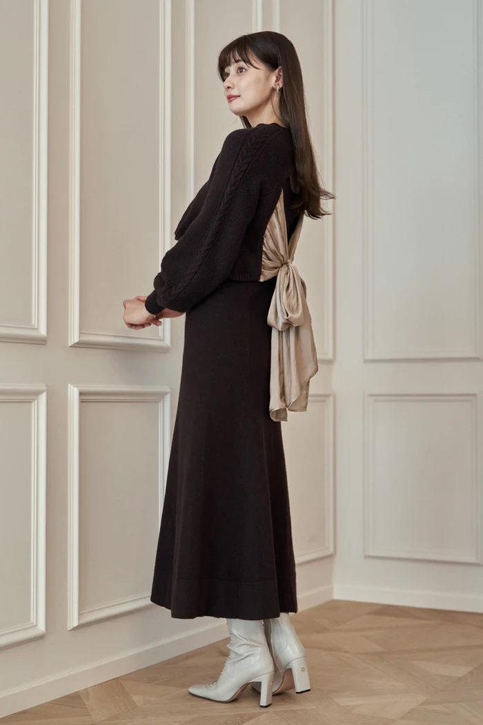 Back Ribbon Wool-Blend Knit Set