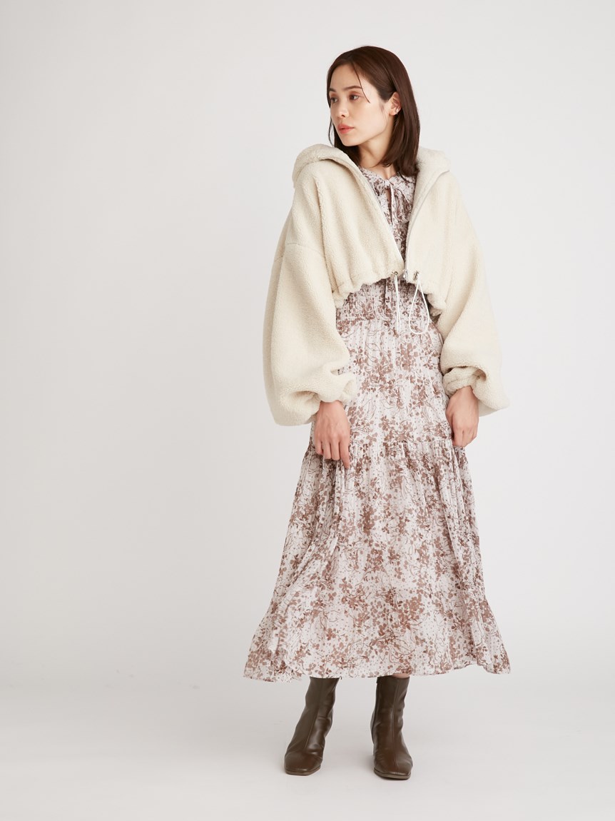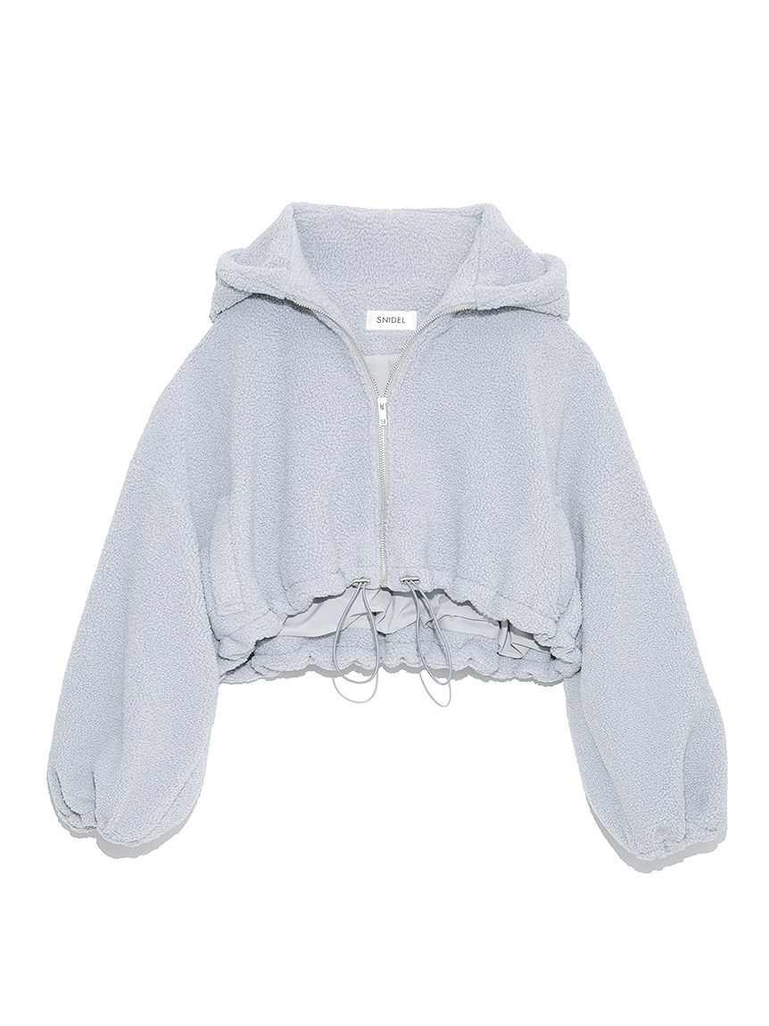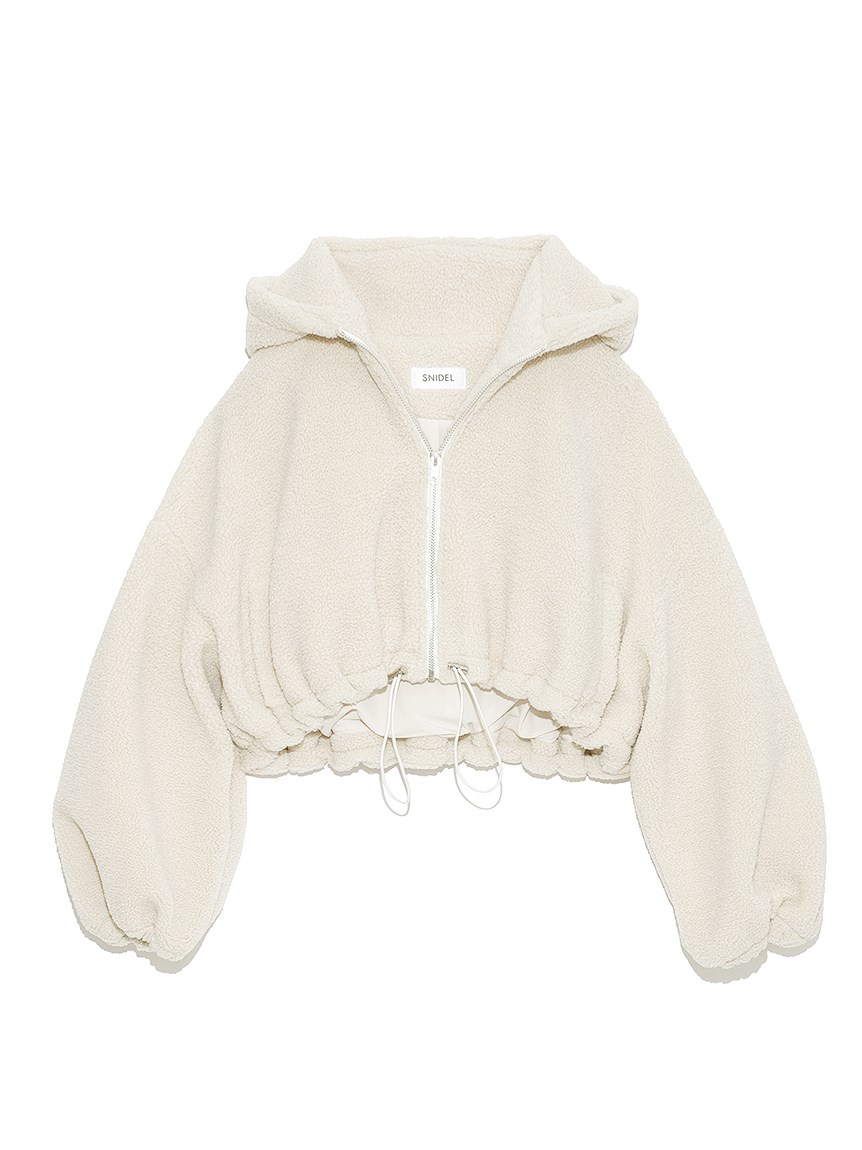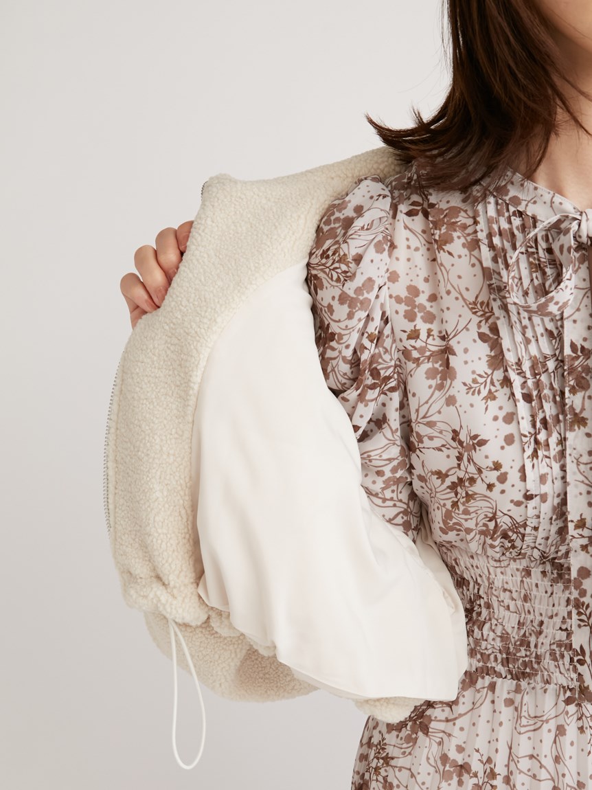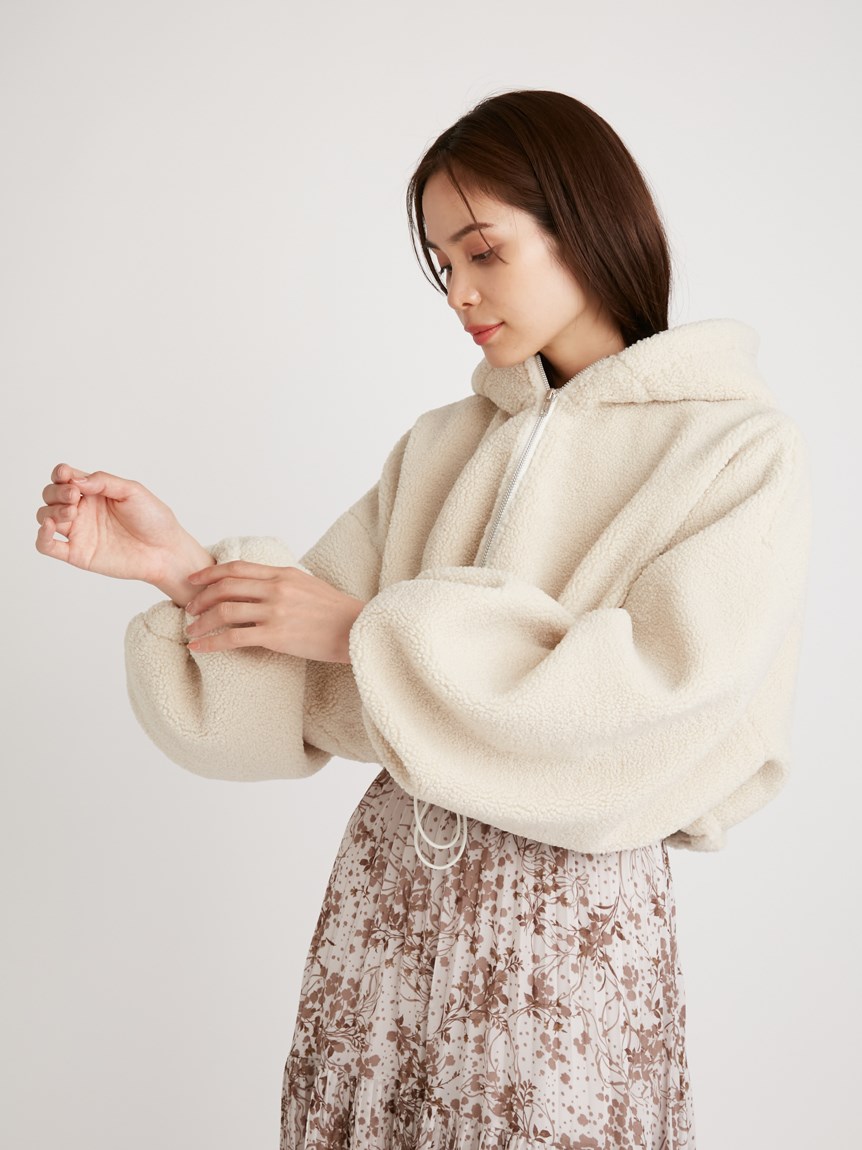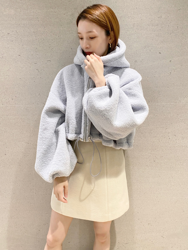モコモコとした風合いでキャッチーなボア素材を使用しました。優しい色合いのアイボリー、今年らしいくすみカラーのライトブルーの2色展開でお届けします。