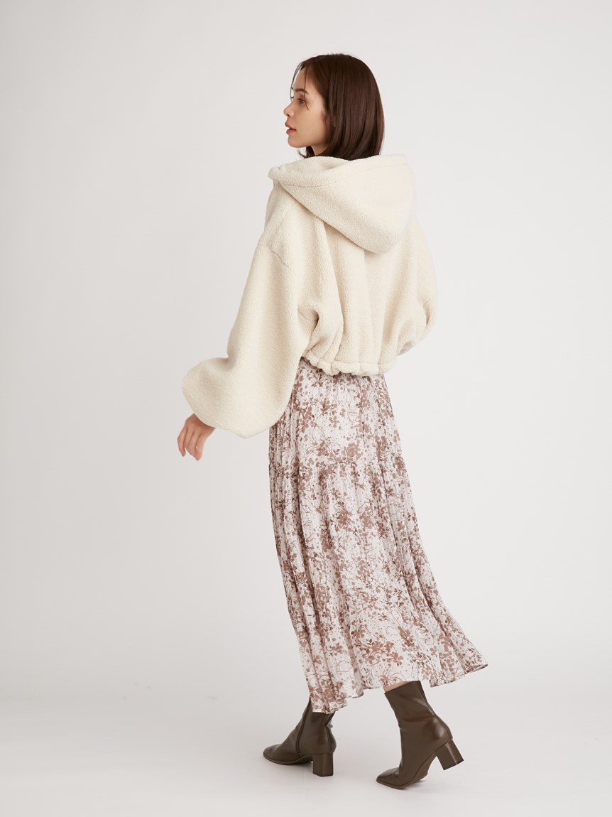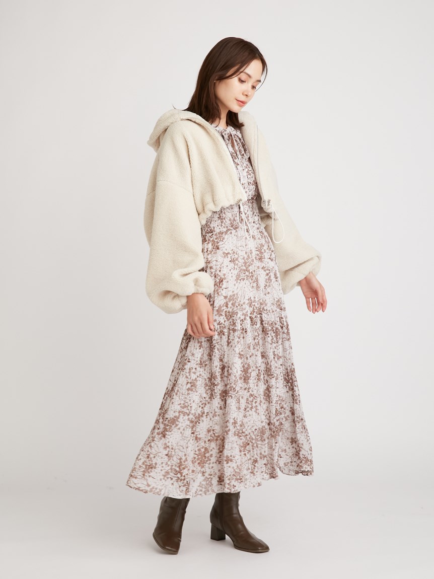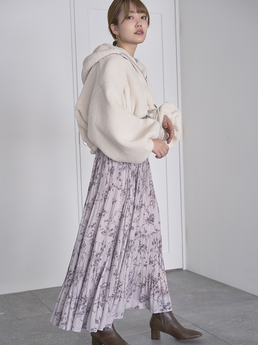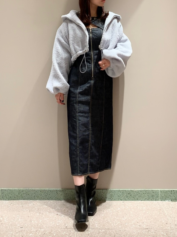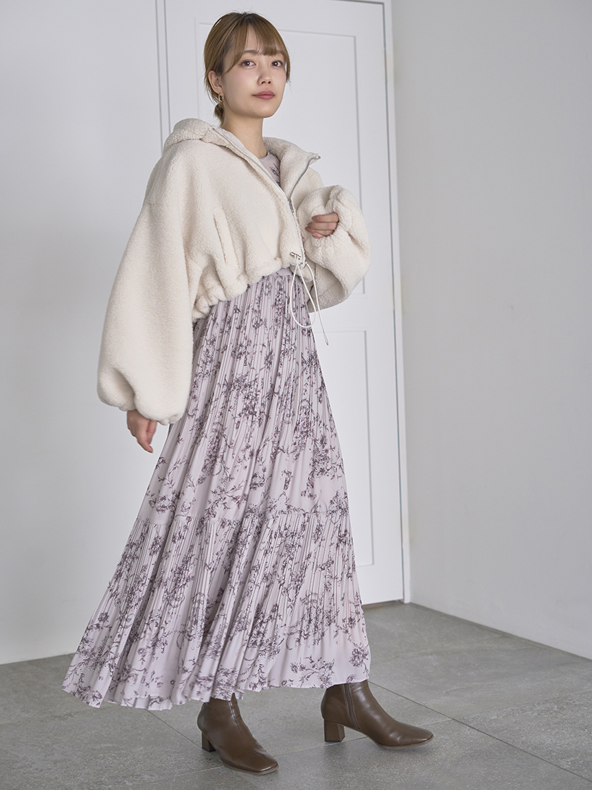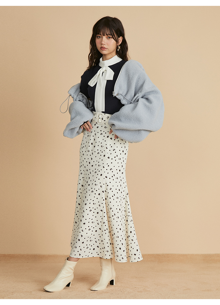 モコモコとした風合いでキャッチーなボア素材を使用しました。優しい色合いのアイボリー、今年らしいくすみカラーのライトブルーの2色展開でお届けします。