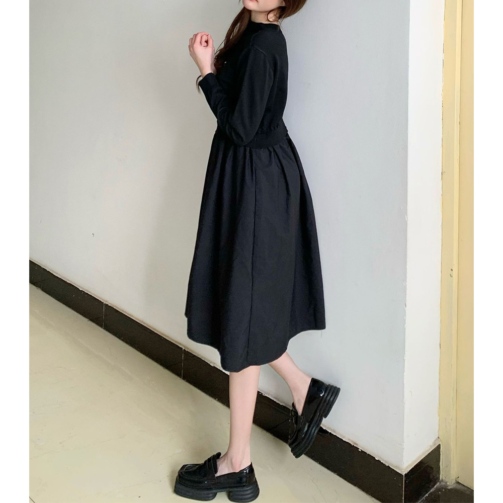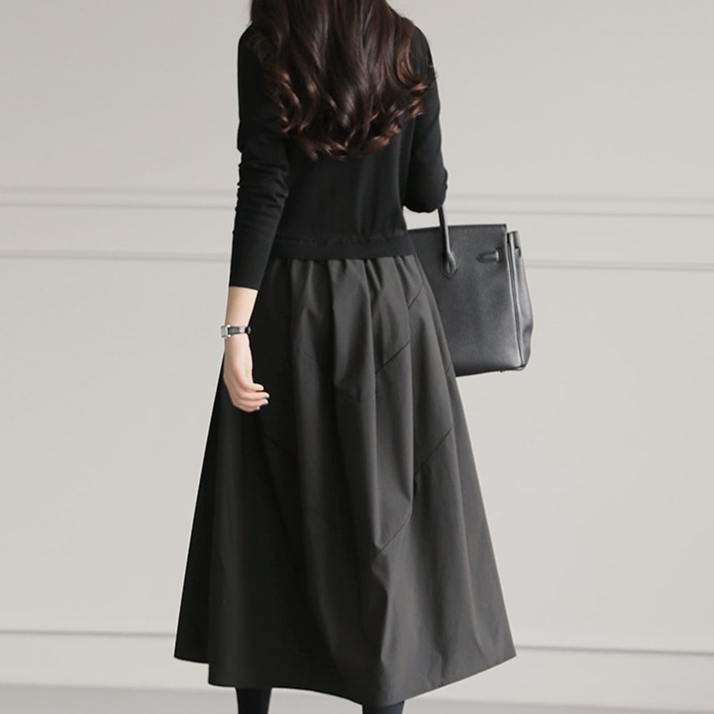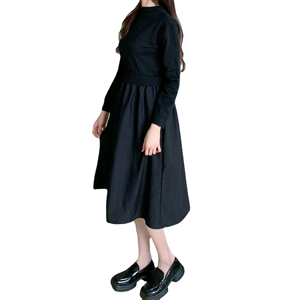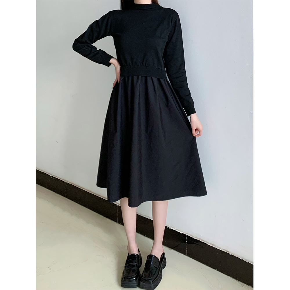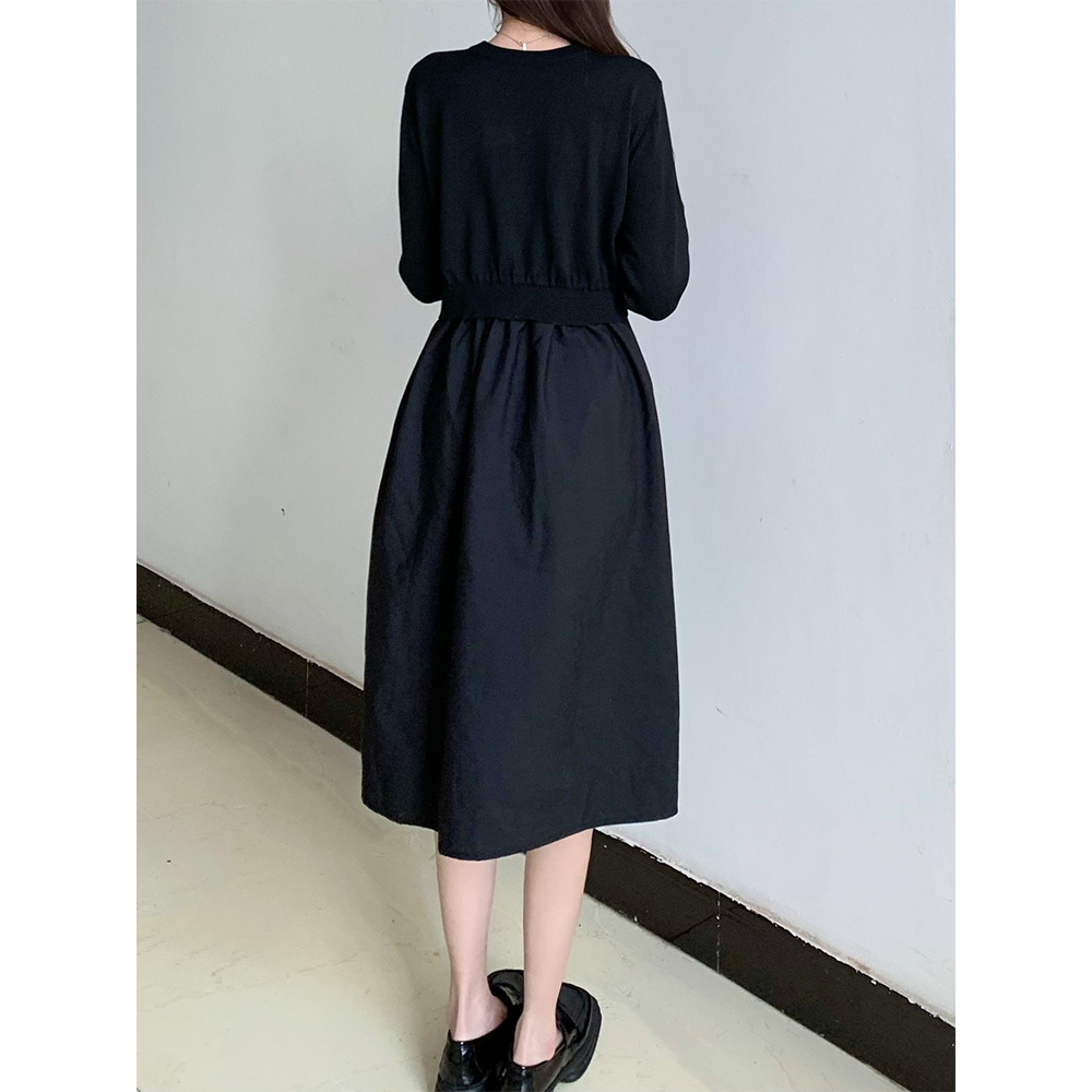 ツイード見えベスト布帛ドッキングワンピース