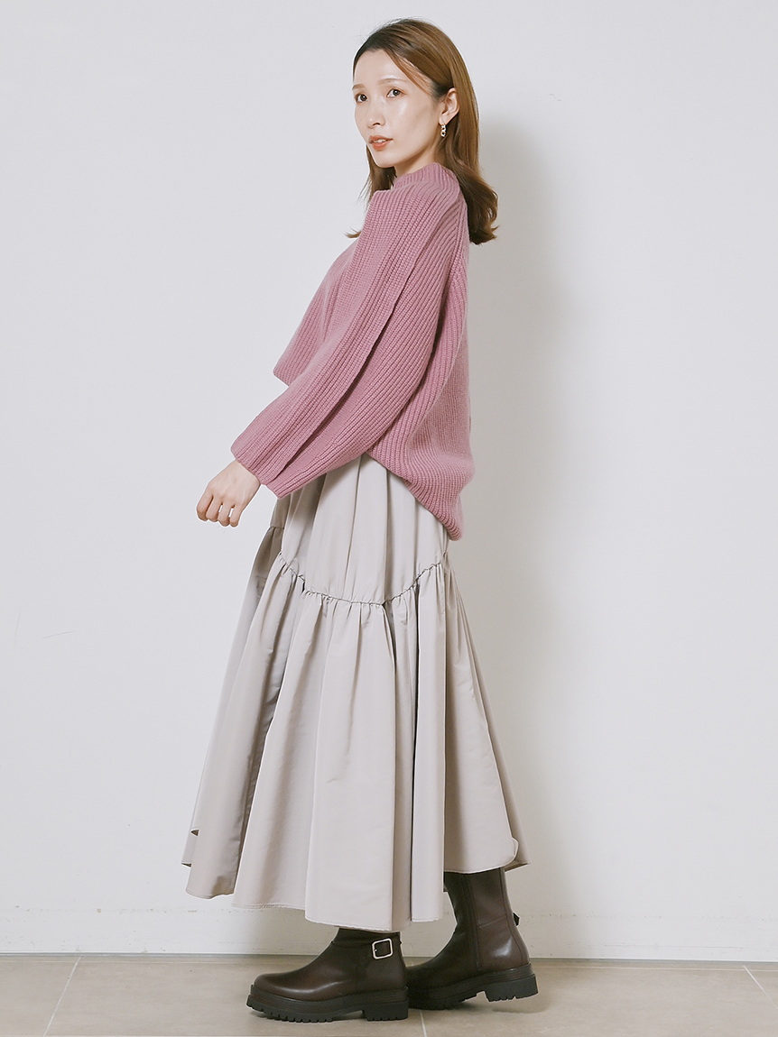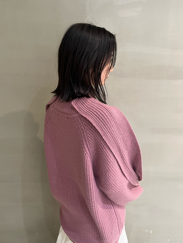 ブークレヤーンをブレンドした表情のあるニット素材を使用しました。着まわしやすいオフホワイト、ブラウンに、女性らしい色合いのピンクを加えた3色をご用意。