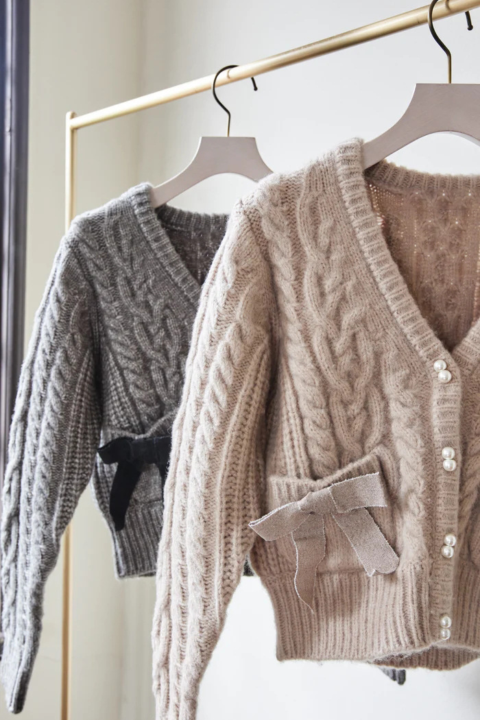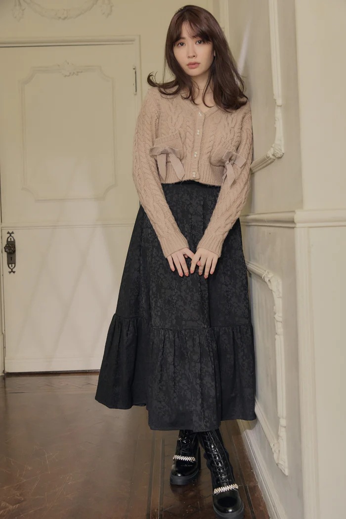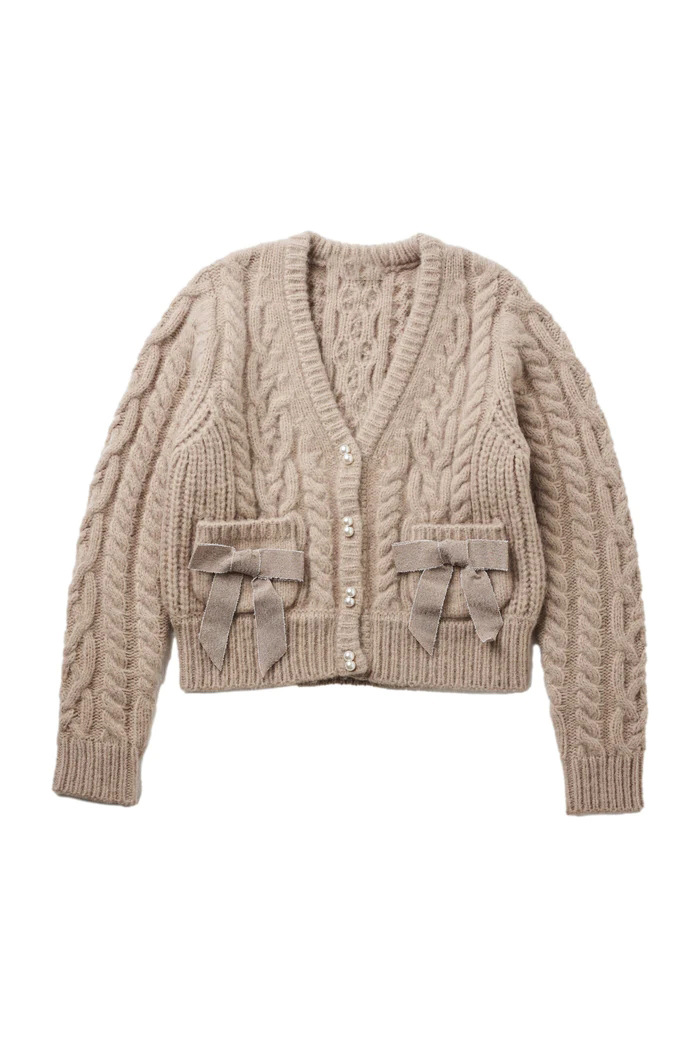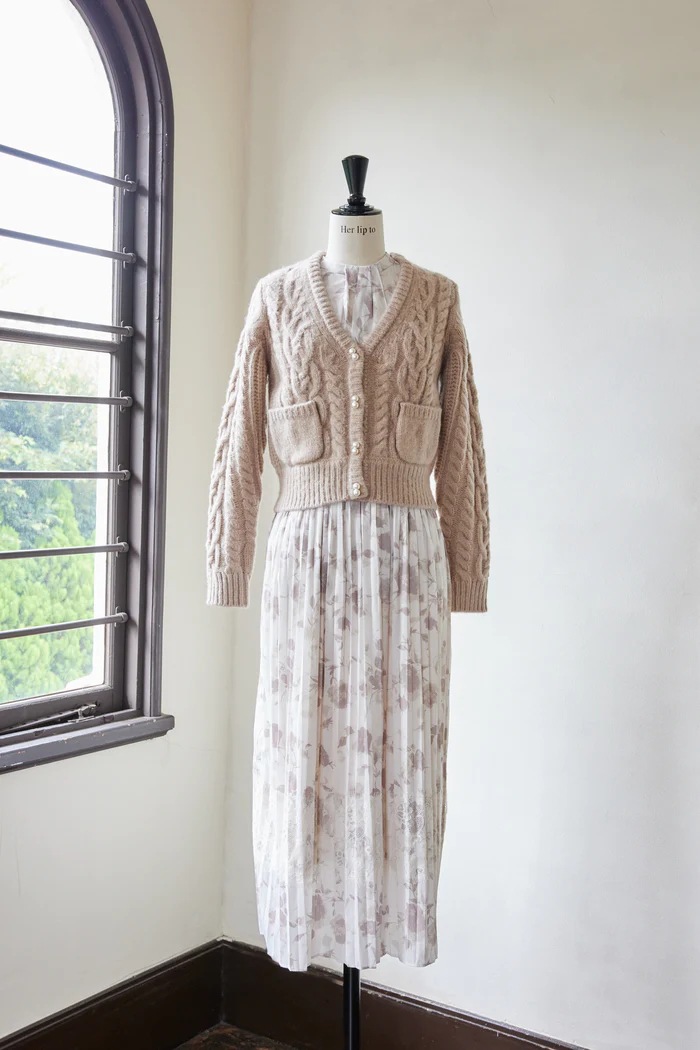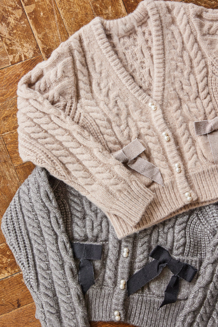 糸起毛の温かい風合いの素材でケーブル編にすることで、軽くて着やすくニットカーディガンながらにカジュアルになりすぎず上品な印象にしてくれます。