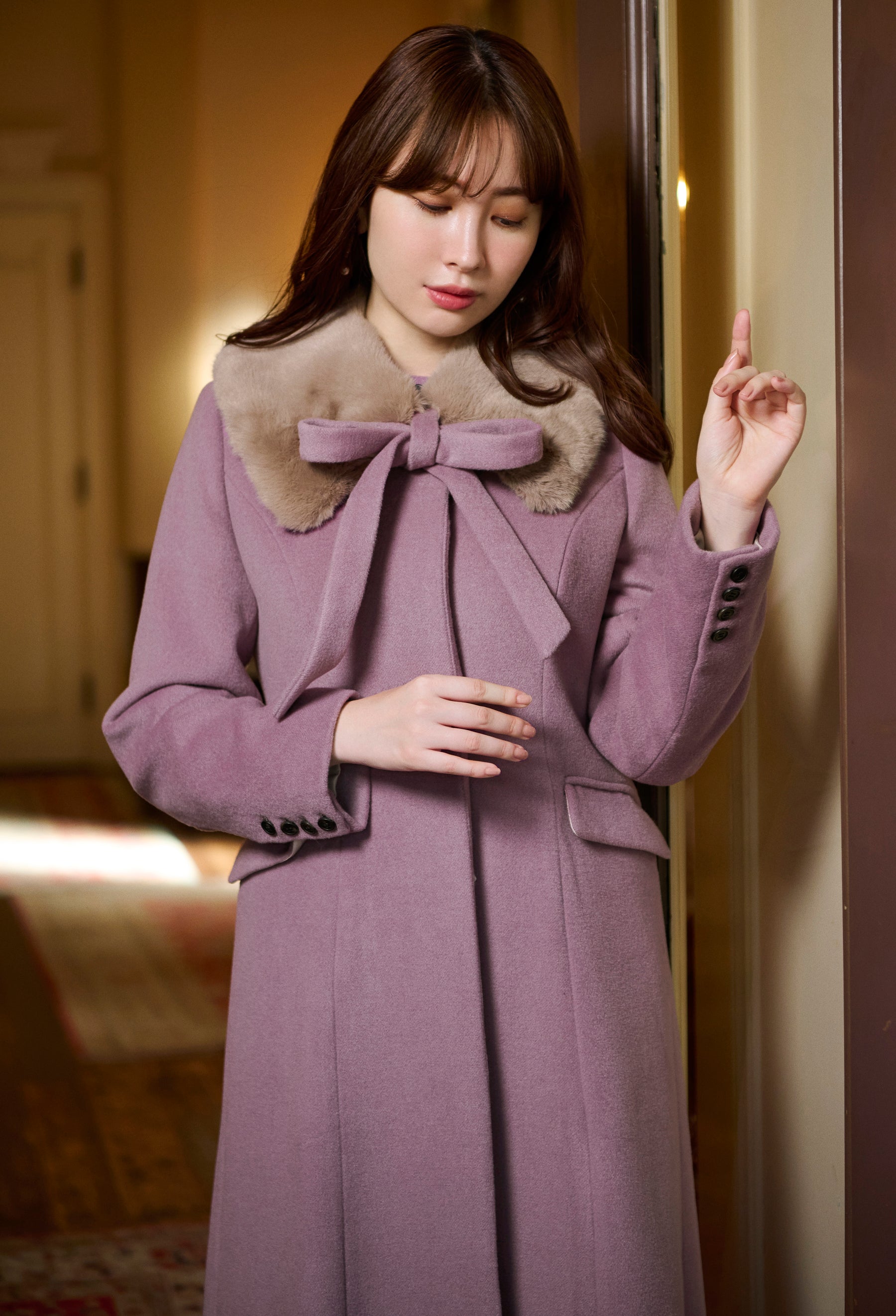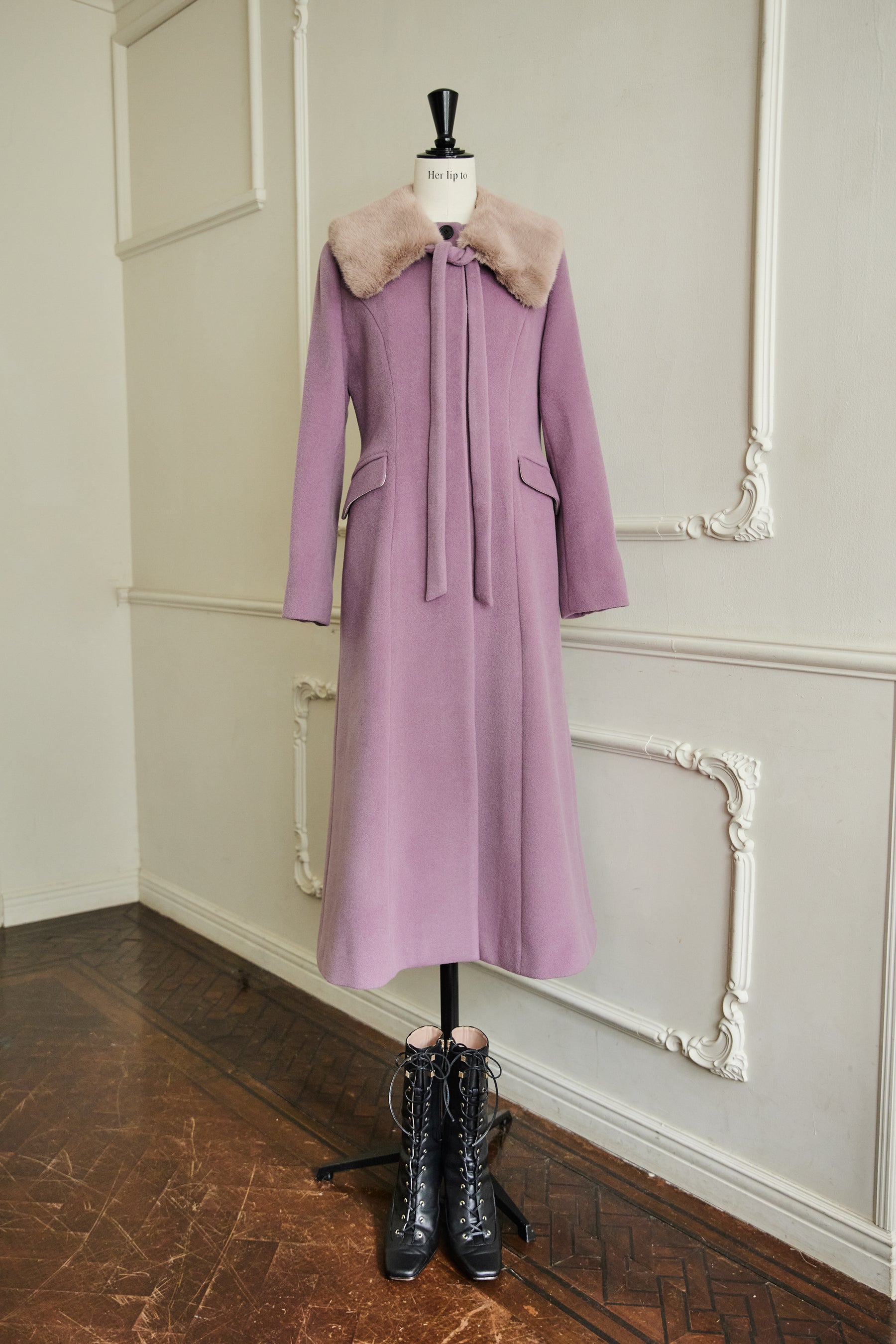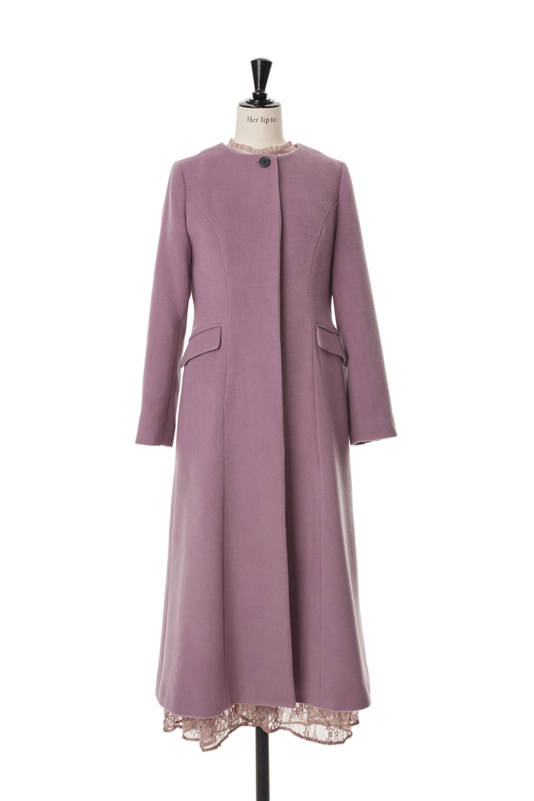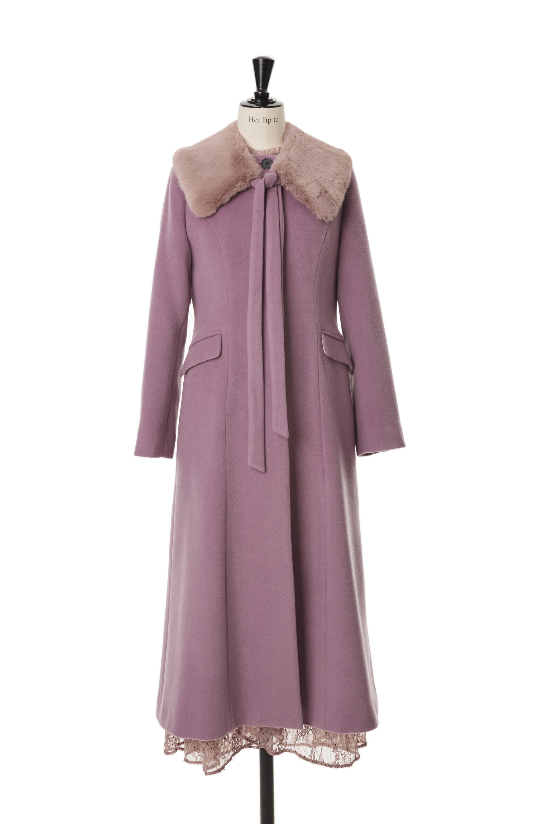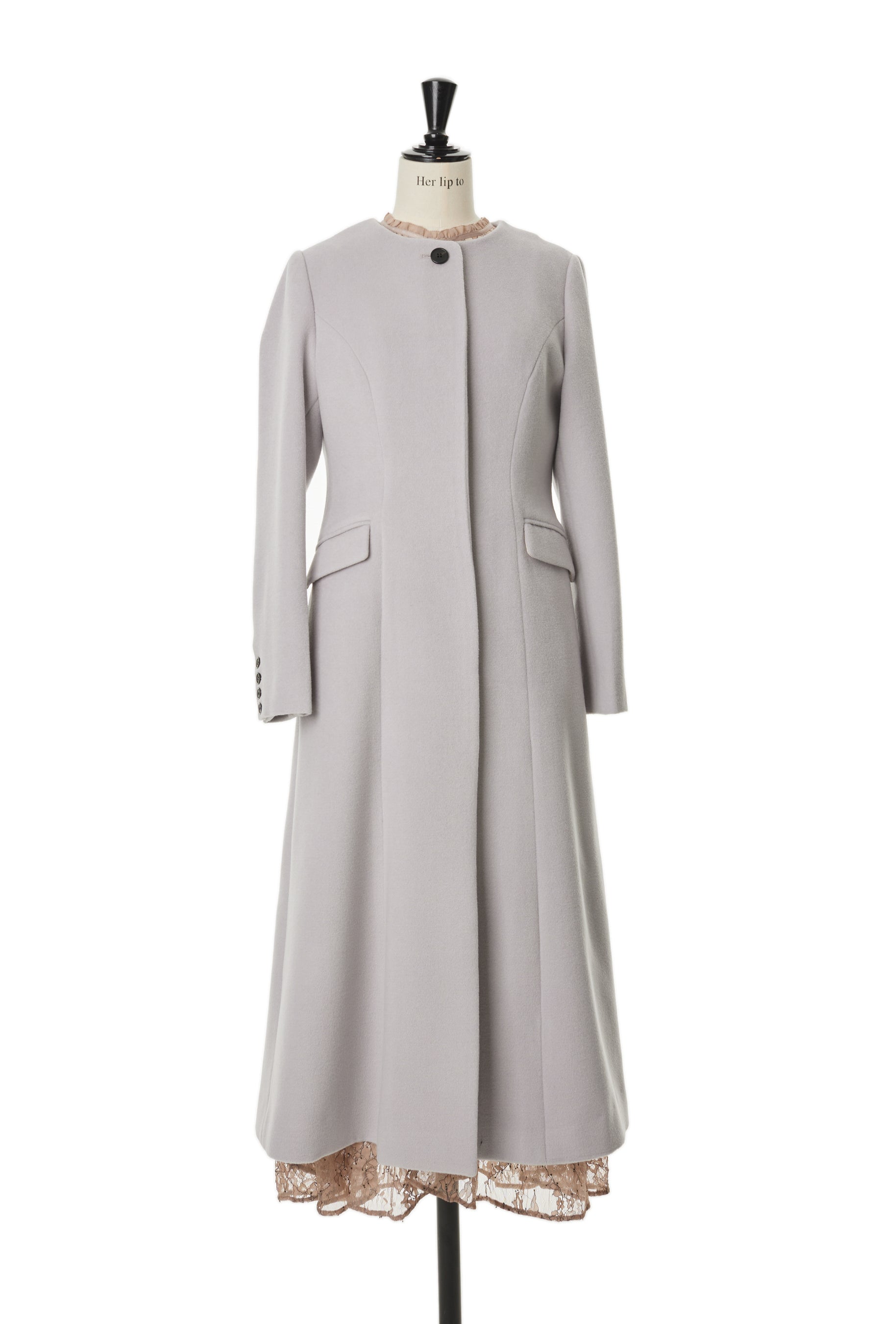 ノーカラーがとても使いやすい細身シルエットのティペット付き2wayロングコート。