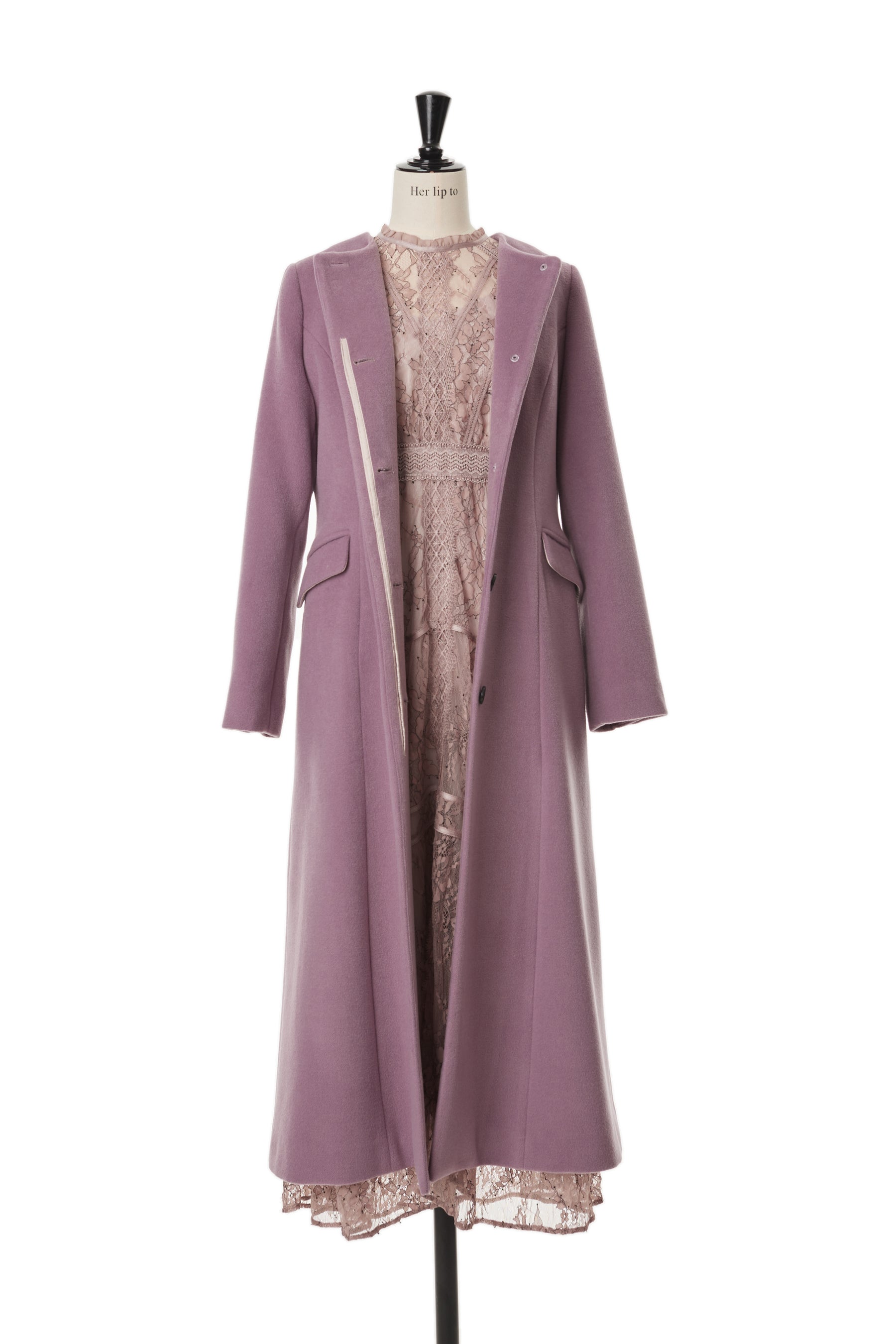 ノーカラースタイルだとリュクスな印象に、ティペットを付けることでガラッと雰囲気も変わり華やかに魅せてくれるので、幅広く使用いただける万能な一着です。