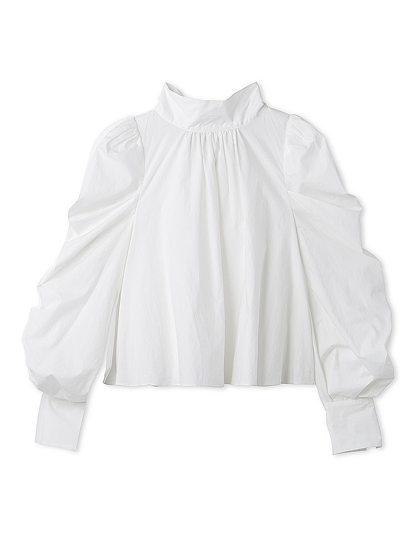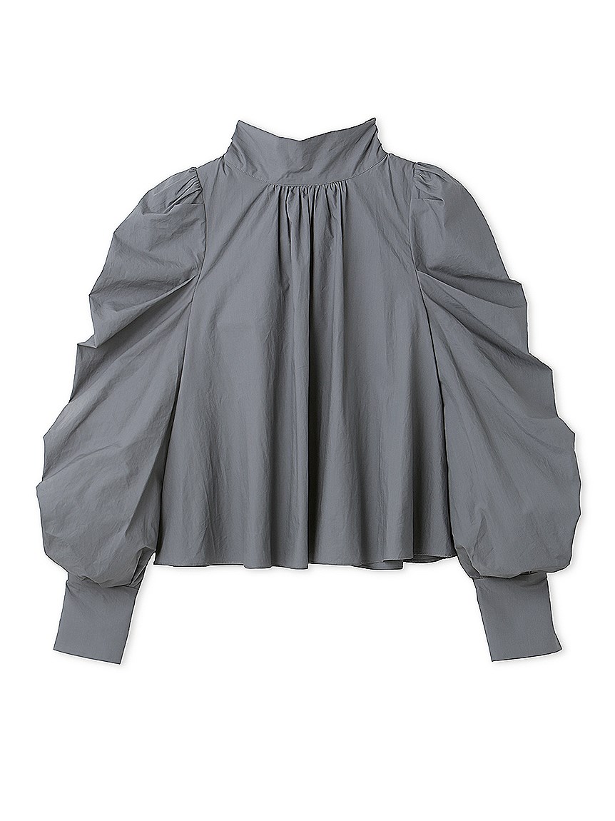 バックネックで結んだ大きなリボンが目を引く、クラシカルレディなブラウス。巧みなタックワークで形成されたボリュームスリーブが、華やかさとモード感をプラスしています。裾は微ショート丈に仕上げることで、ボトムスにインでもアウトでもバランス良く決まるよう設計。ジャンスカからパンツまで合わせるボトムを選ばないので幅広く活躍してくれます。
