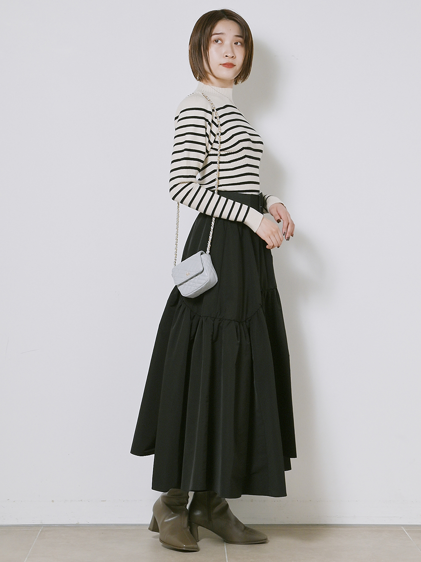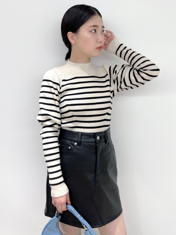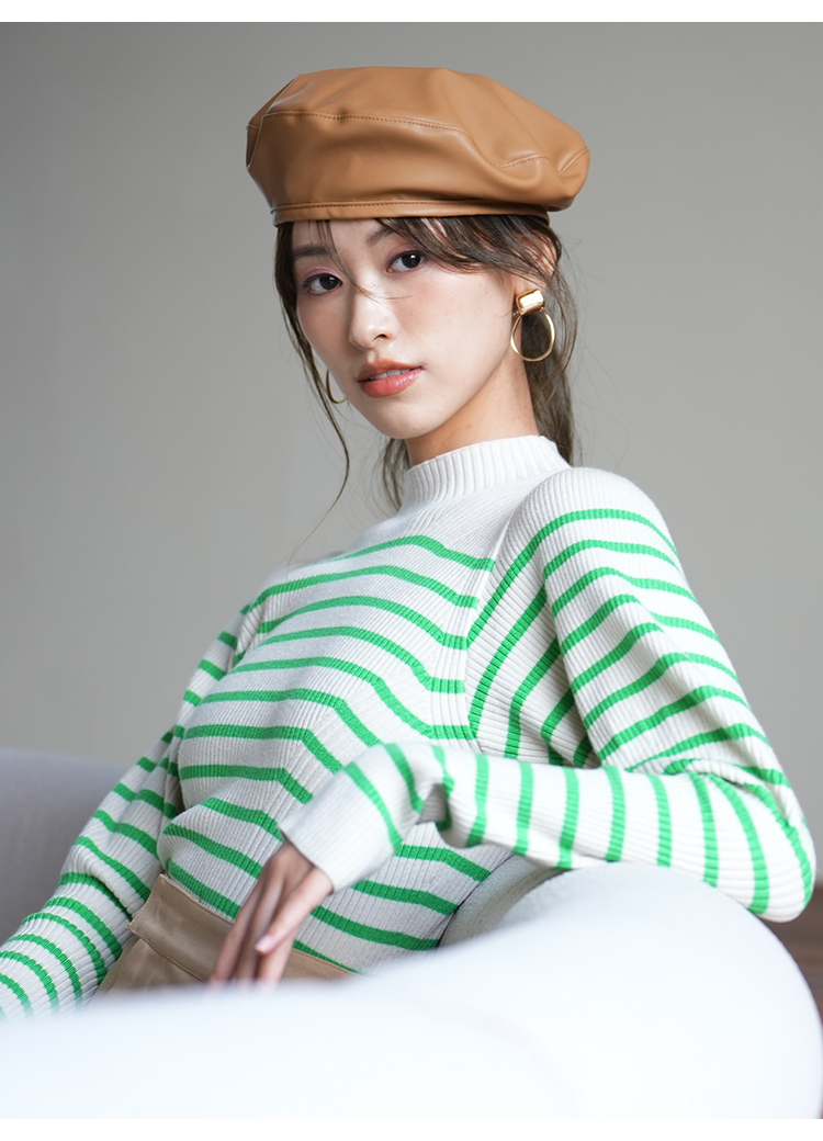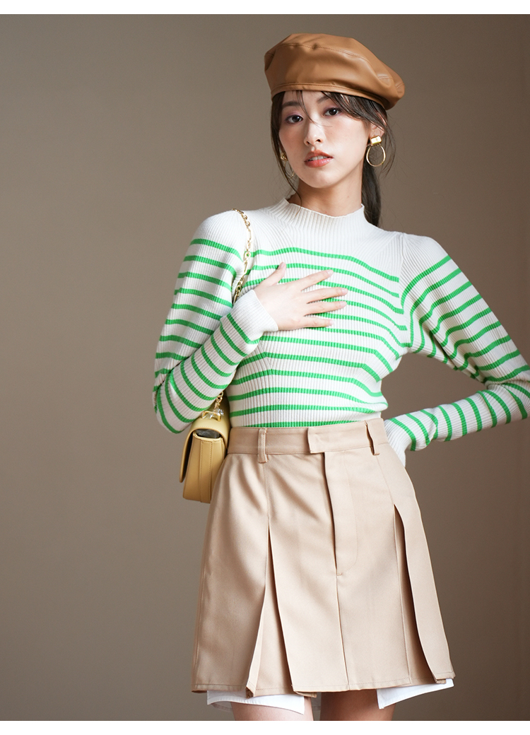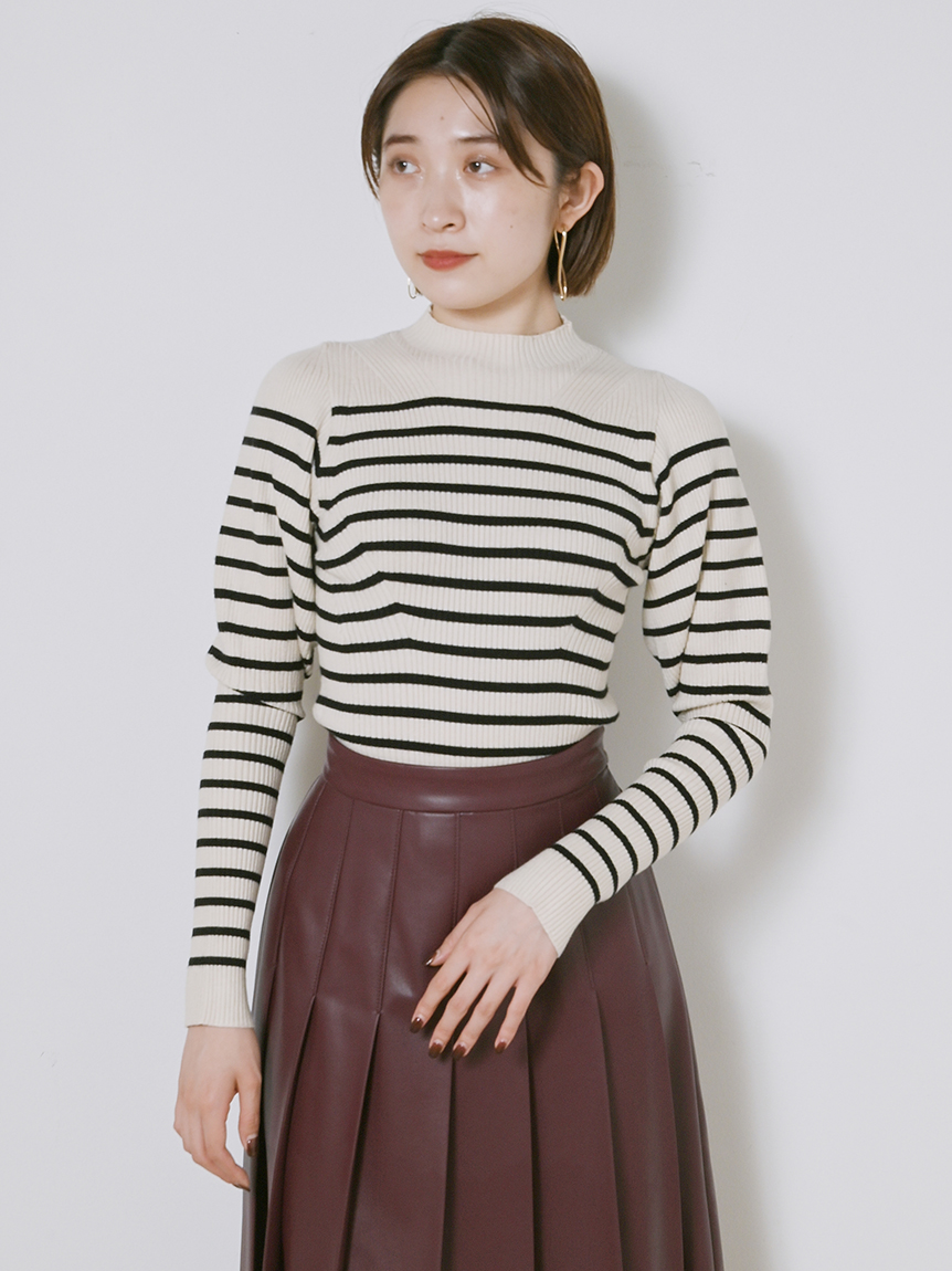 伸縮性のある柔らかなリブニットを使用しました。馴染みの良いアイボリー、ベーシックなブラック、ボーダー柄を浮かべたグリーン、秋冬らしいブラウン、トレンド感のあるライトブルー、大人カジュアルなボーダーの豊富なカラーバリエーションをご用意。