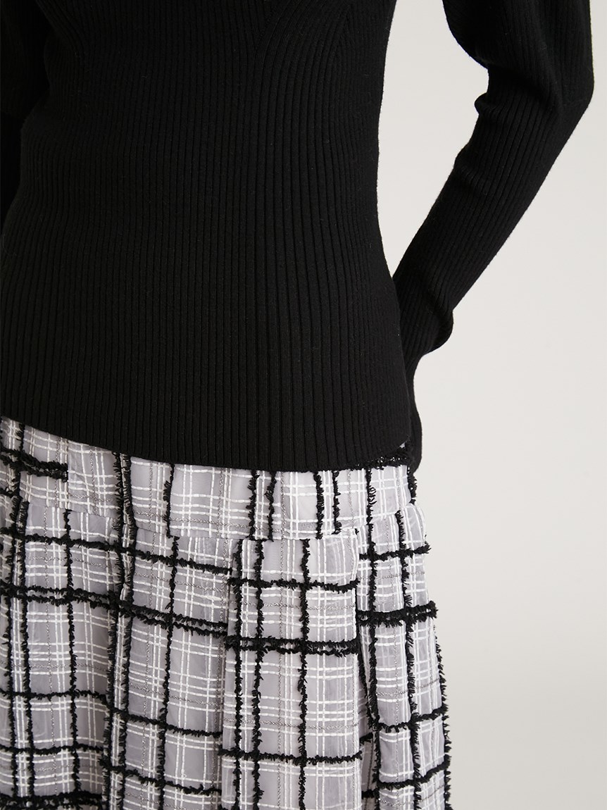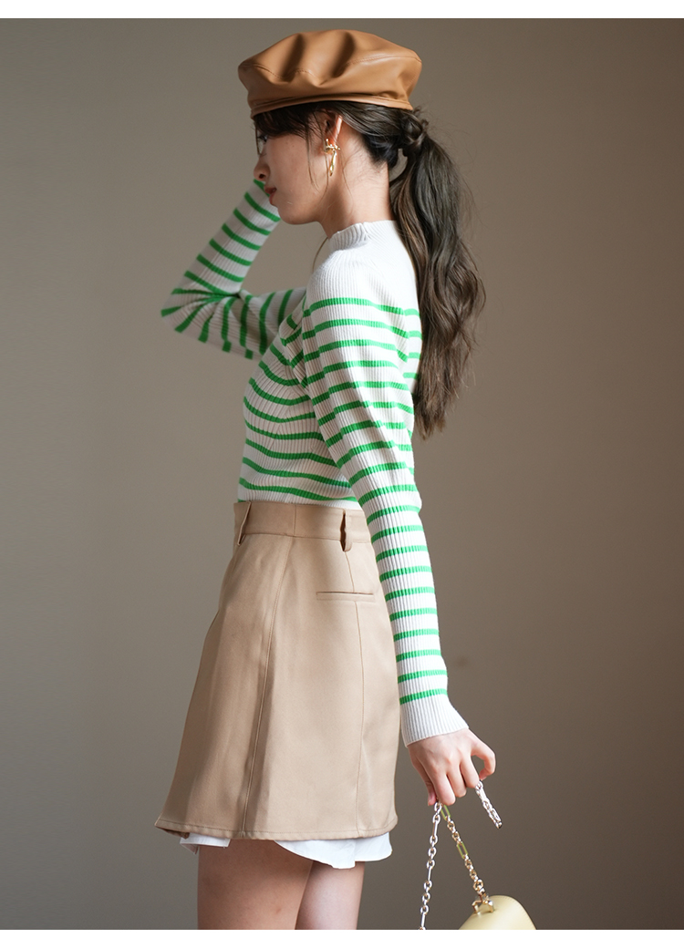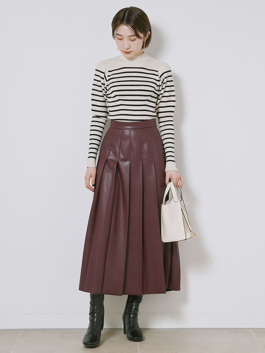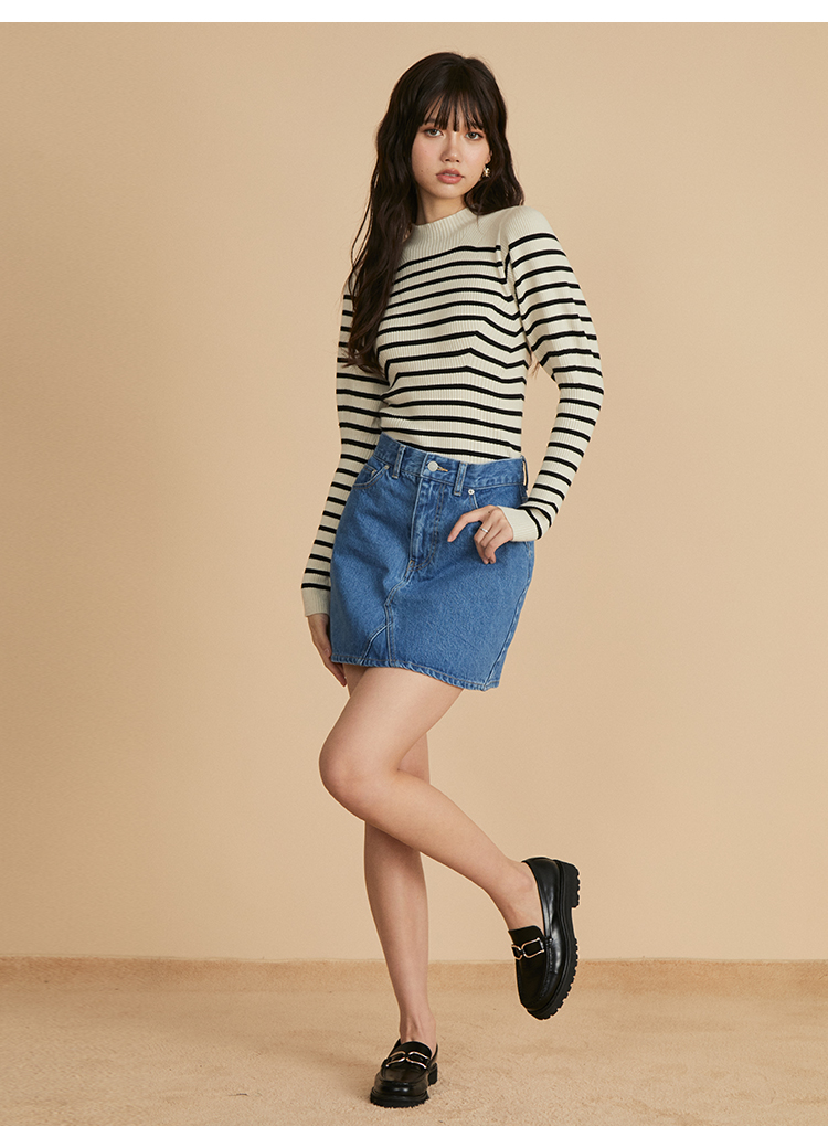 伸縮性のある柔らかなリブニットを使用しました。馴染みの良いアイボリー、ベーシックなブラック、ボーダー柄を浮かべたグリーン、秋冬らしいブラウン、トレンド感のあるライトブルー、大人カジュアルなボーダーの豊富なカラーバリエーションをご用意。
