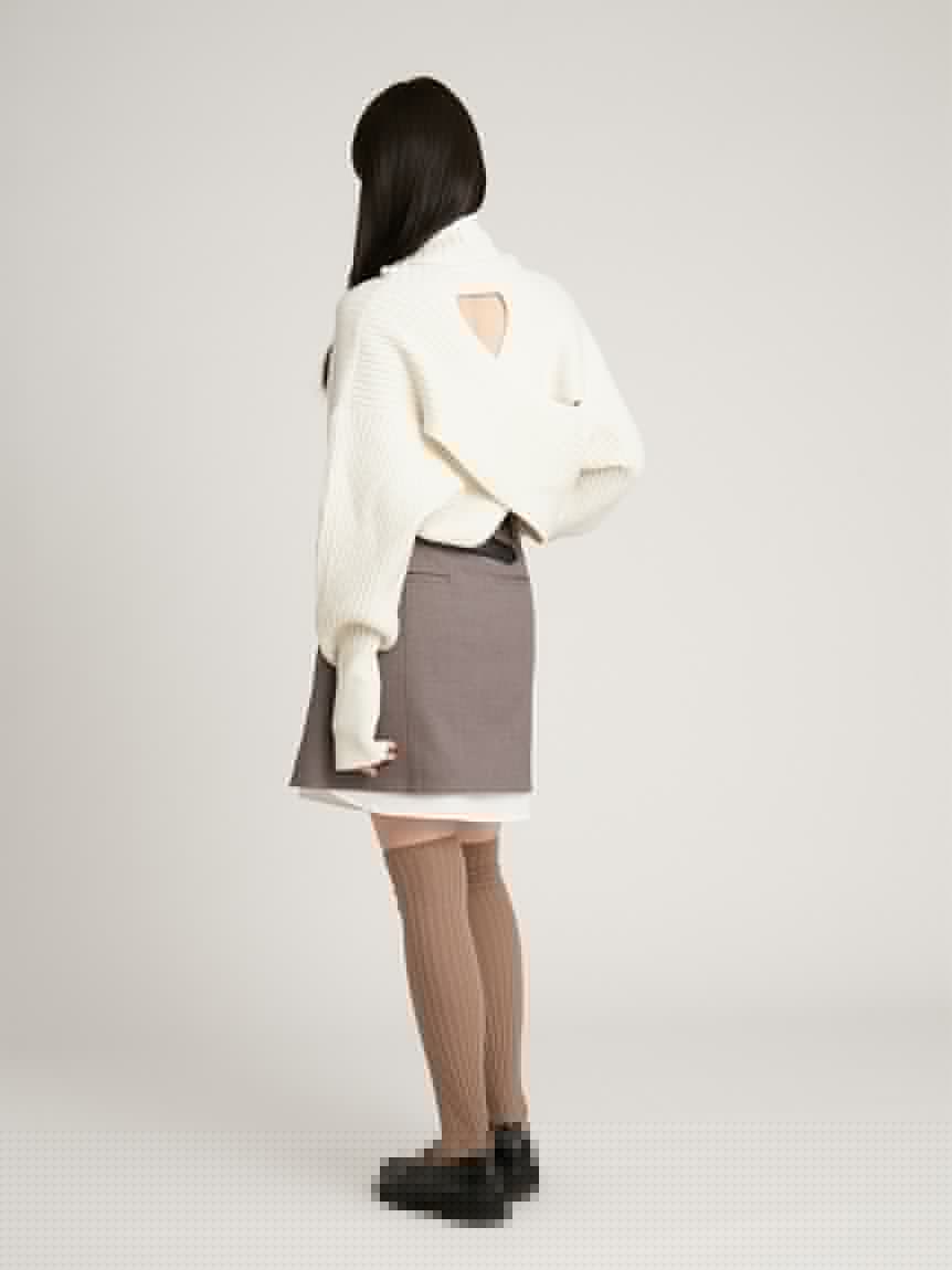 程よい厚みのある柔らかなリブ編みニットを使用しました。着まわしやすいアイボリーとグレーに、女性らしい色合いで遊び心のあるピンクを加えた3色展開でお届けします。