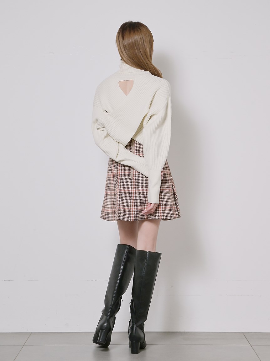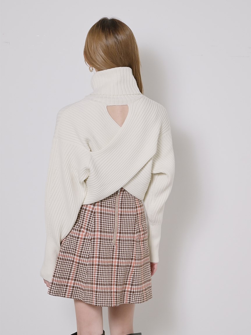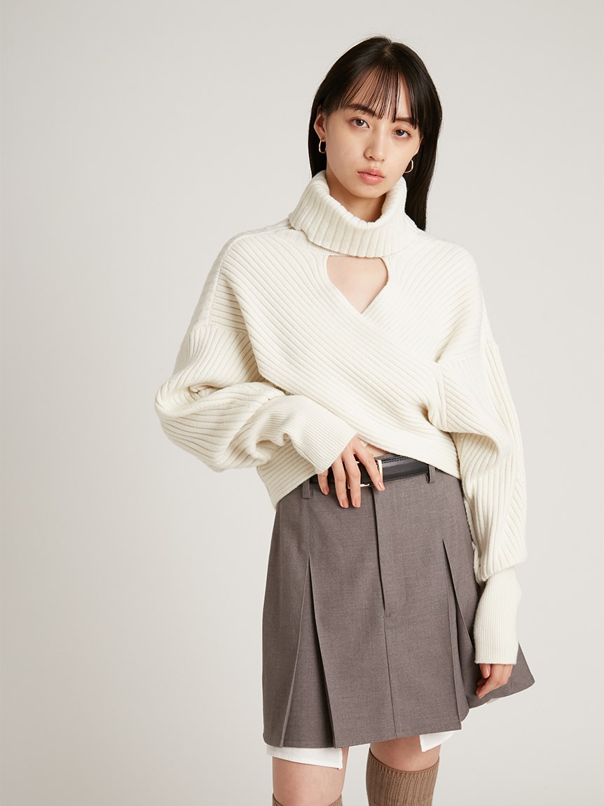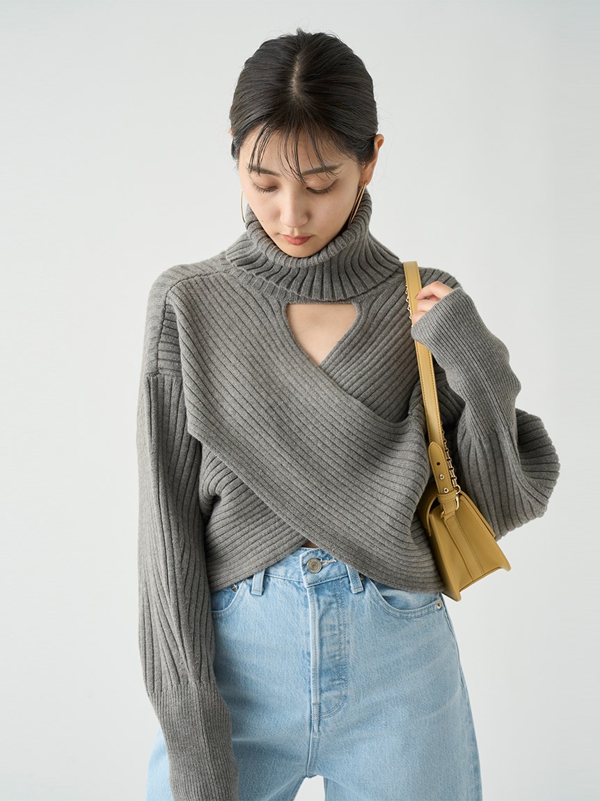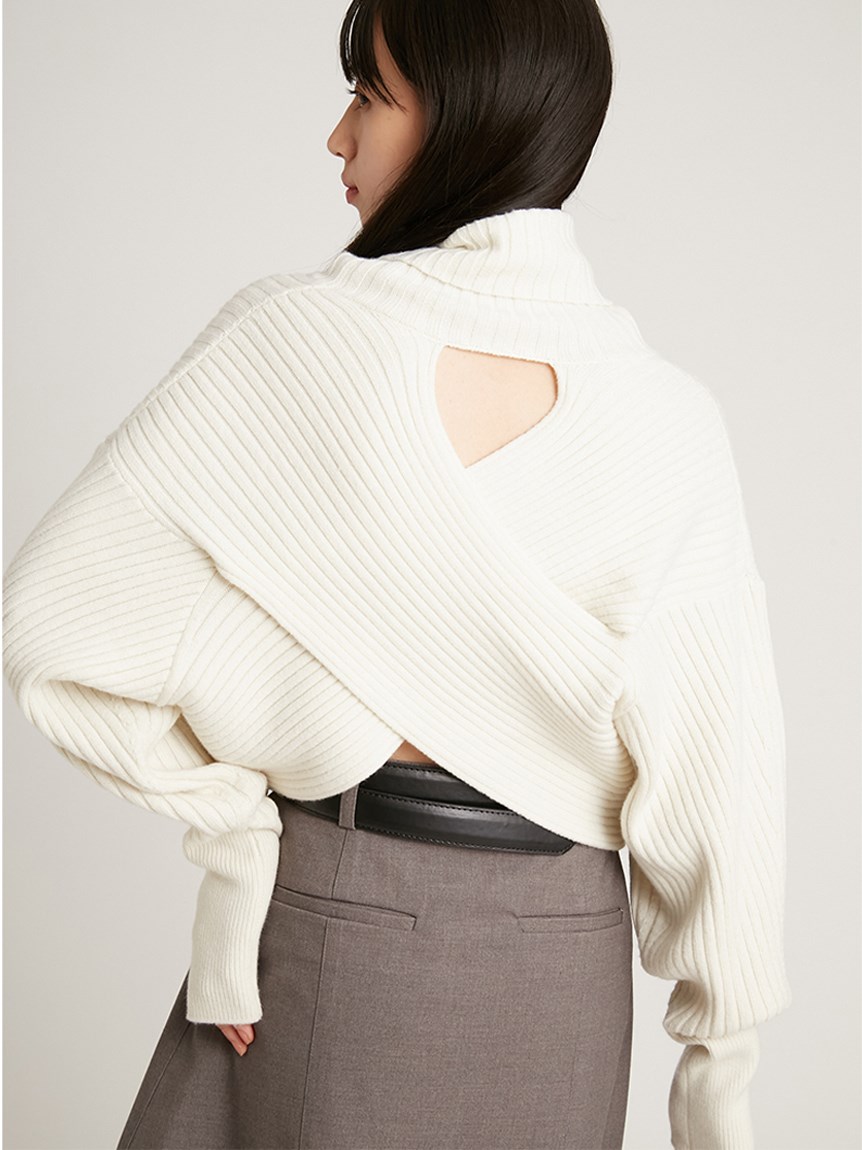 マイクロショート丈でトレンドライクに仕上げたニットトップス。大胆にスリットを入れたクロスデザインが女性らしさを存分に高めてくれます。前後逆にしても着られる2WAY仕様でスタイリングや気分に合わせてアレンジ可能。1枚で着るのはもちろん、今年らしいレイヤードスタイルも楽しめる万能なアイテムです。