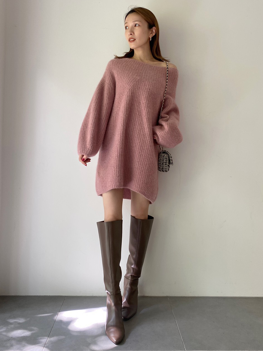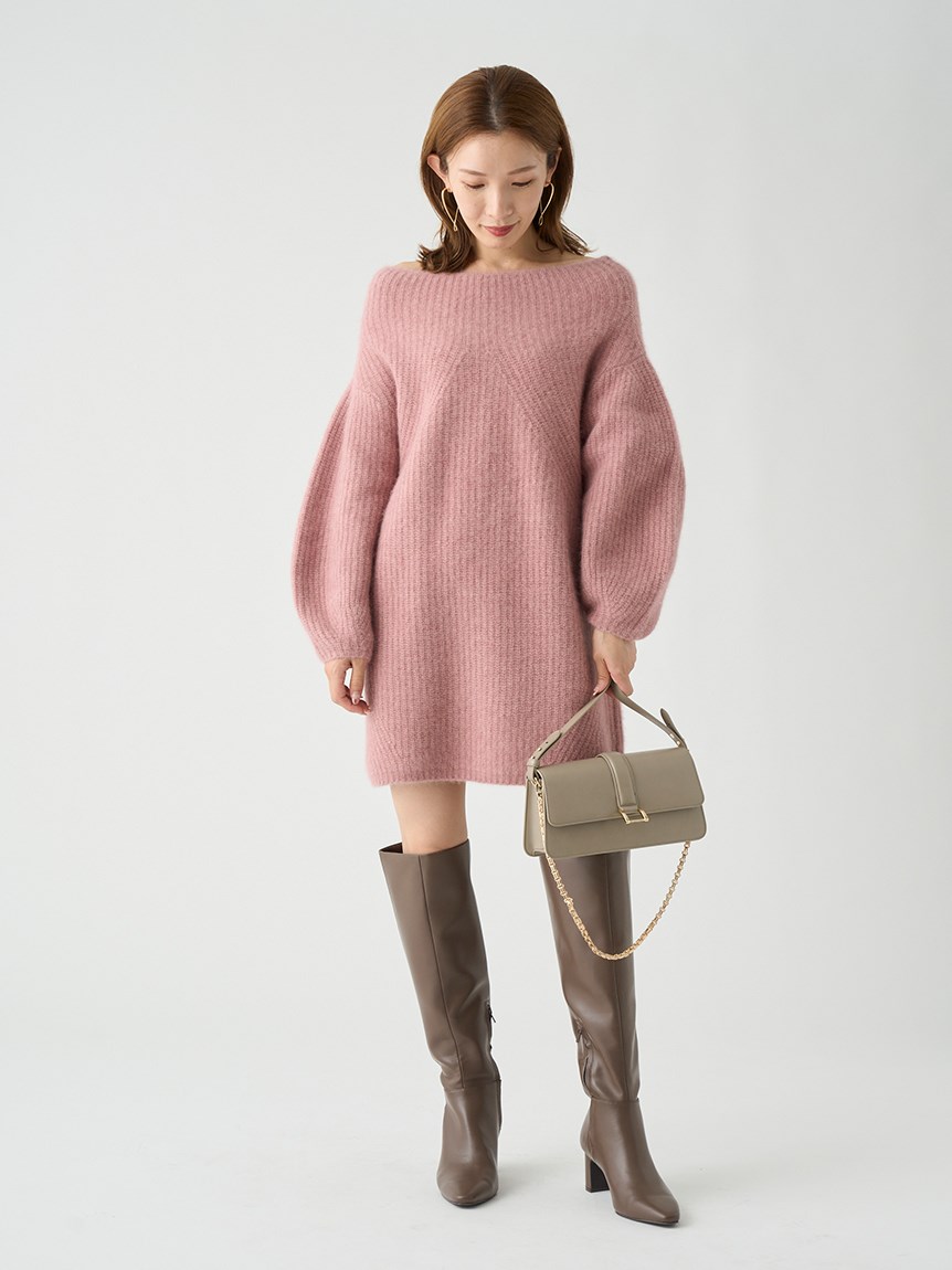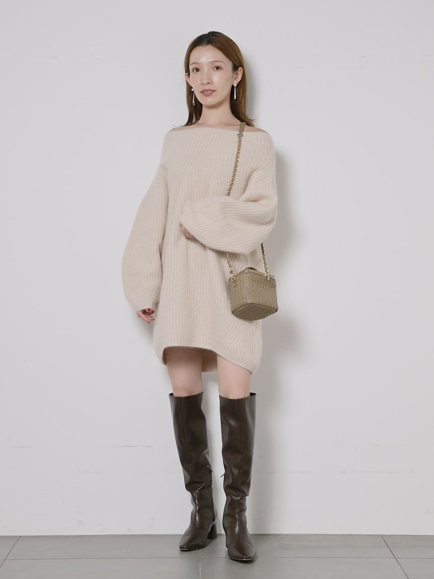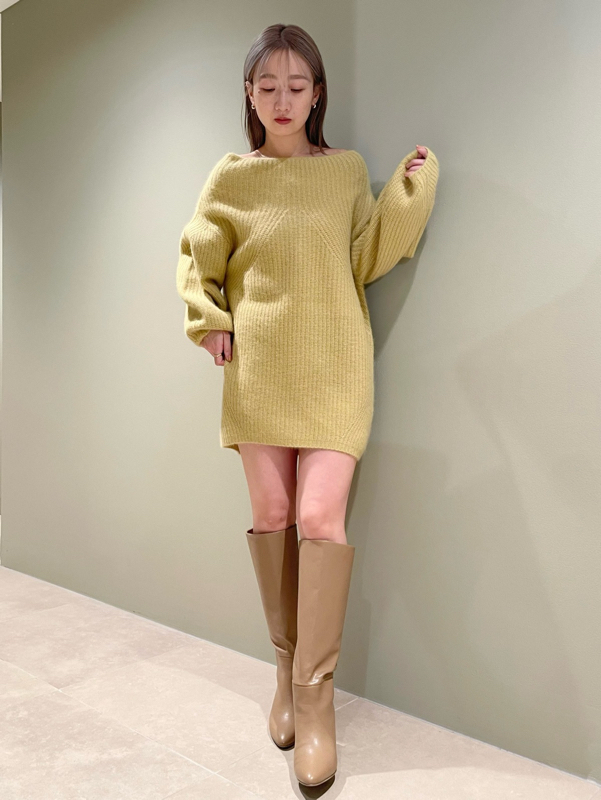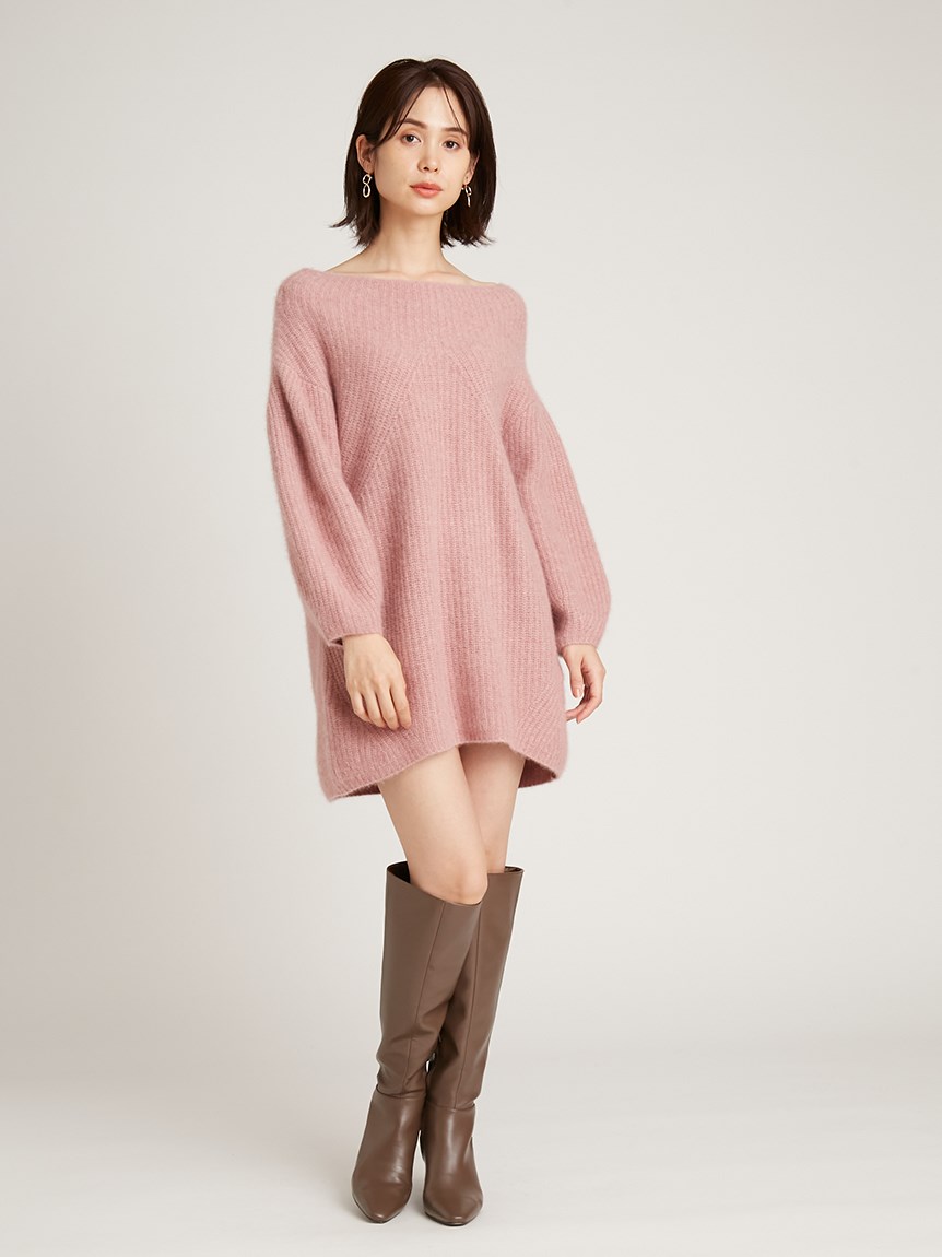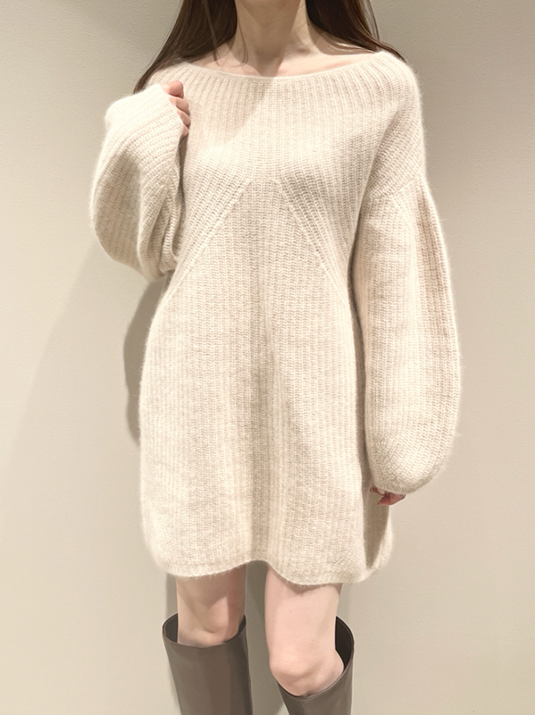抜け感のある大人の色香たっぷりでお届けする人気のミニニットワンピース。今季は柄の入り方を新しくデザインし直しアップデートしました。やや広めに開いたボートネックやドロップショルダーがこなれた雰囲気を纏い、ミニ丈ながら子供っぽくならないよう、洗練されたディテール使いにこだわっています。ネック部分はオフショルにもボートネックにもアレンジ可能。ロングブーツを合わせたスタイリングや、パンツを合わせたトップスとしての着用もおすすめです。