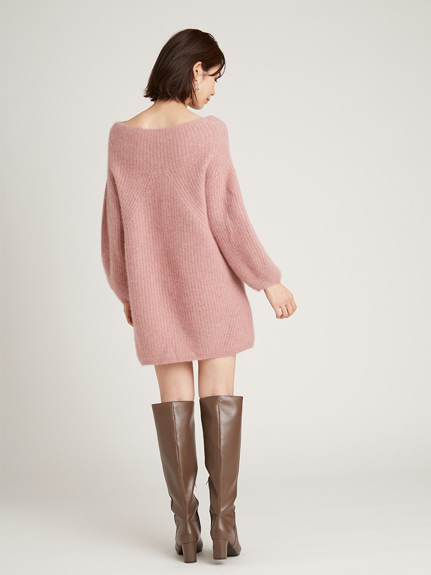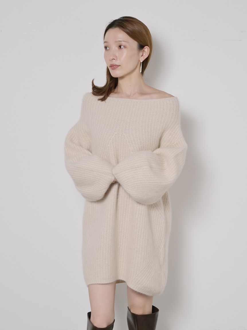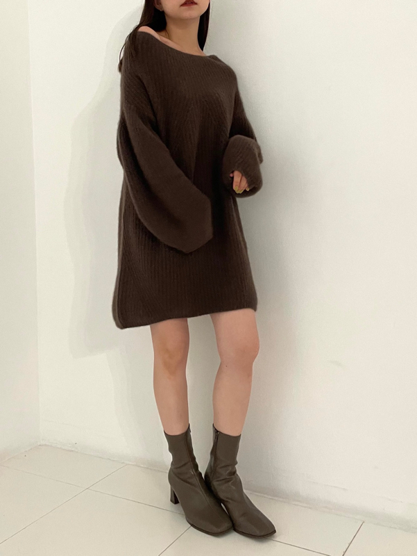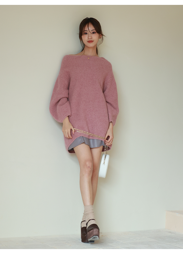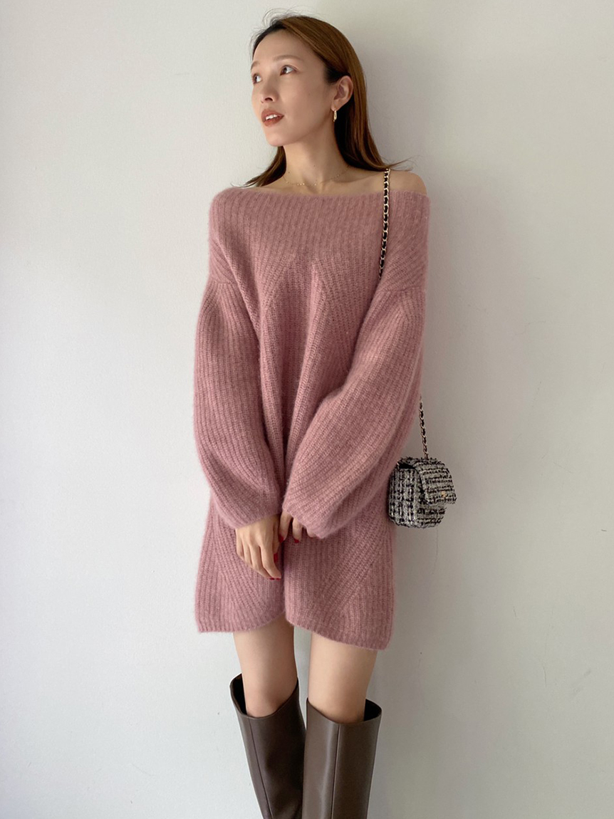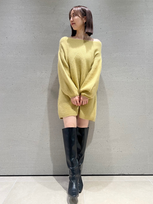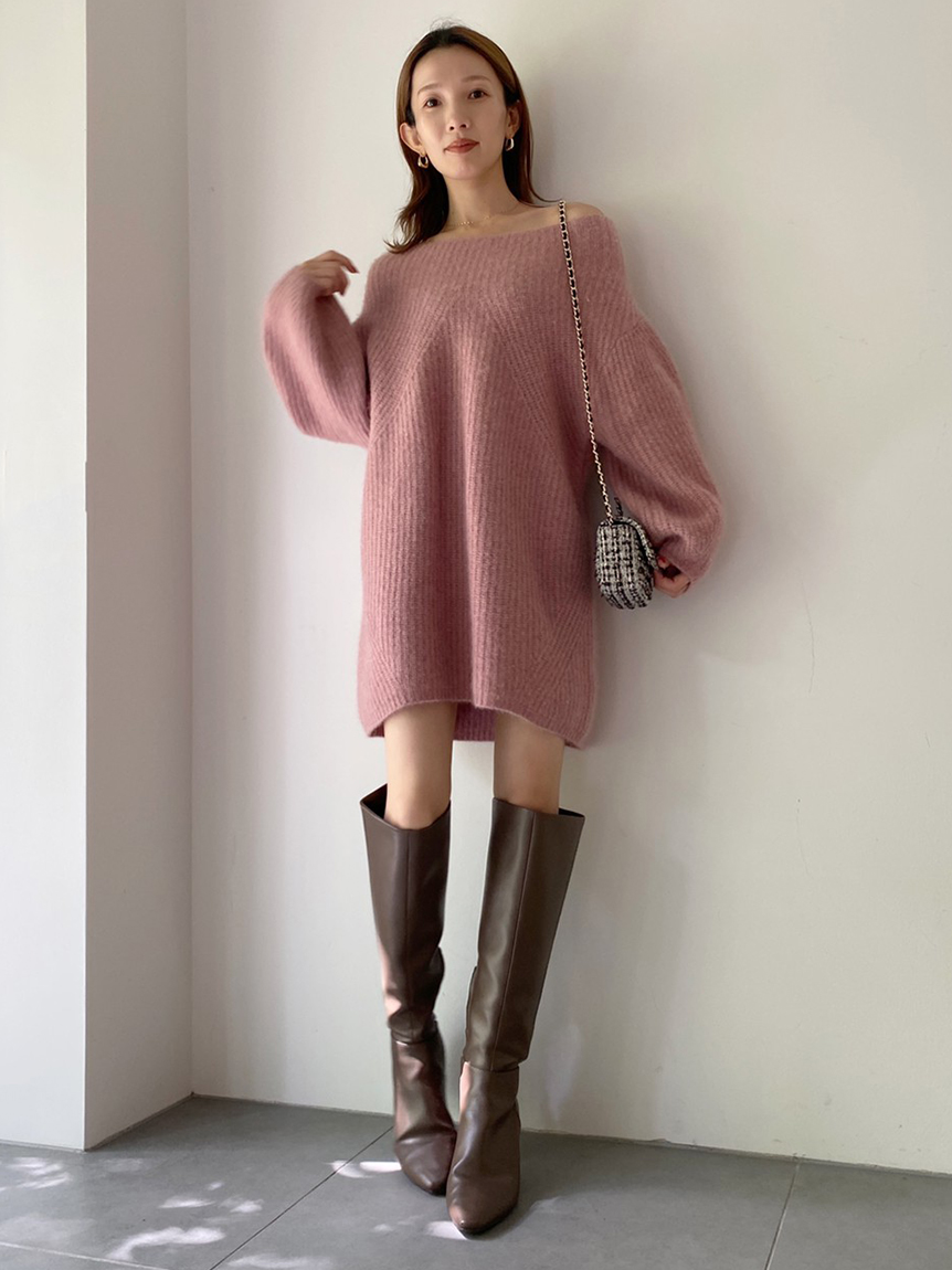 抜け感のある大人の色香たっぷりでお届けする人気のミニニットワンピース。今季は柄の入り方を新しくデザインし直しアップデートしました。やや広めに開いたボートネックやドロップショルダーがこなれた雰囲気を纏い、ミニ丈ながら子供っぽくならないよう、洗練されたディテール使いにこだわっています。ネック部分はオフショルにもボートネックにもアレンジ可能。ロングブーツを合わせたスタイリングや、パンツを合わせたトップスとしての着用もおすすめです。