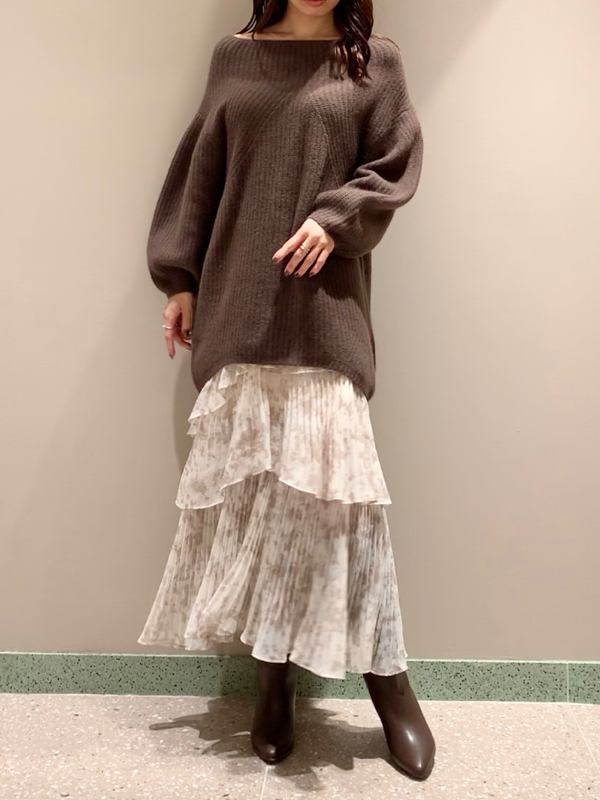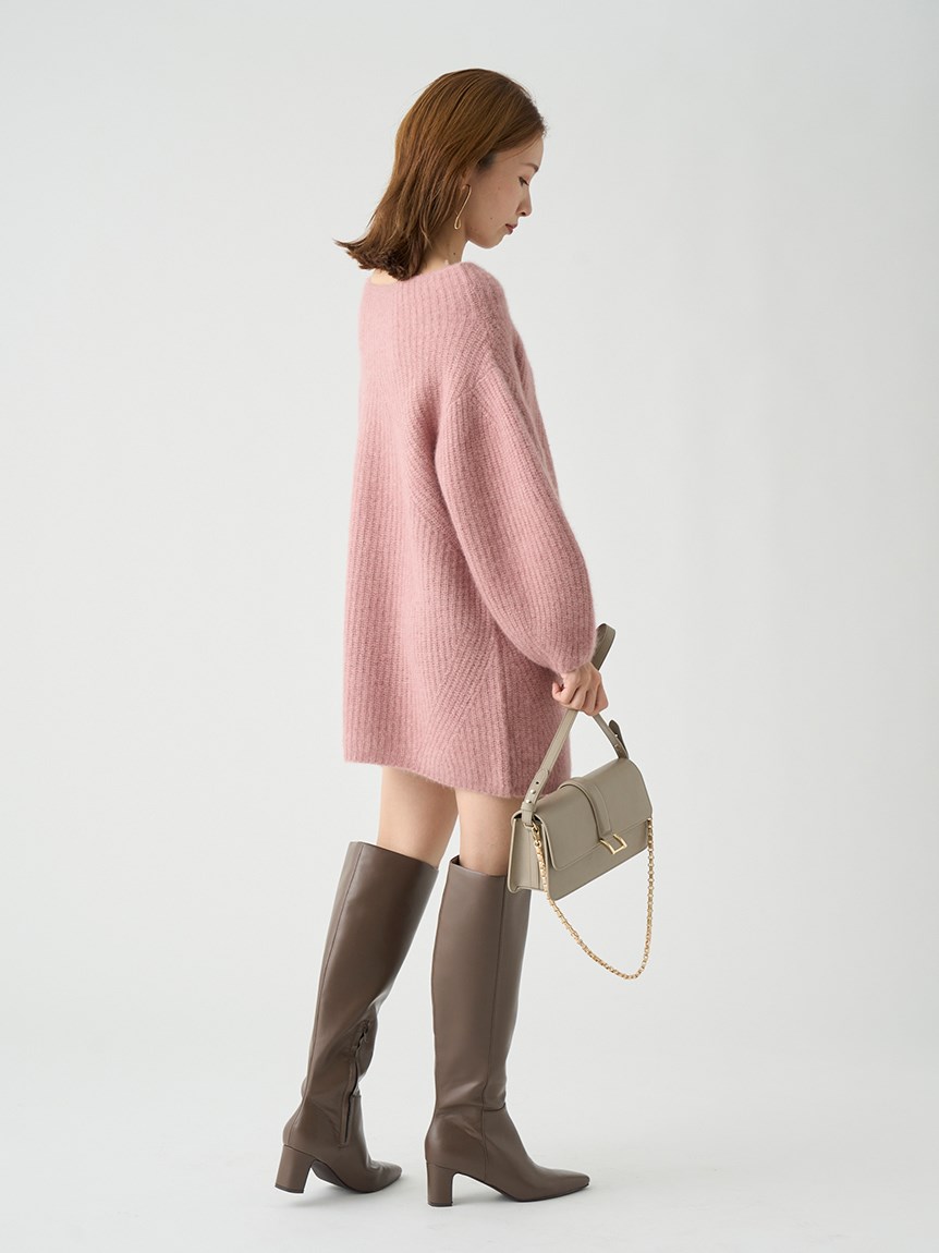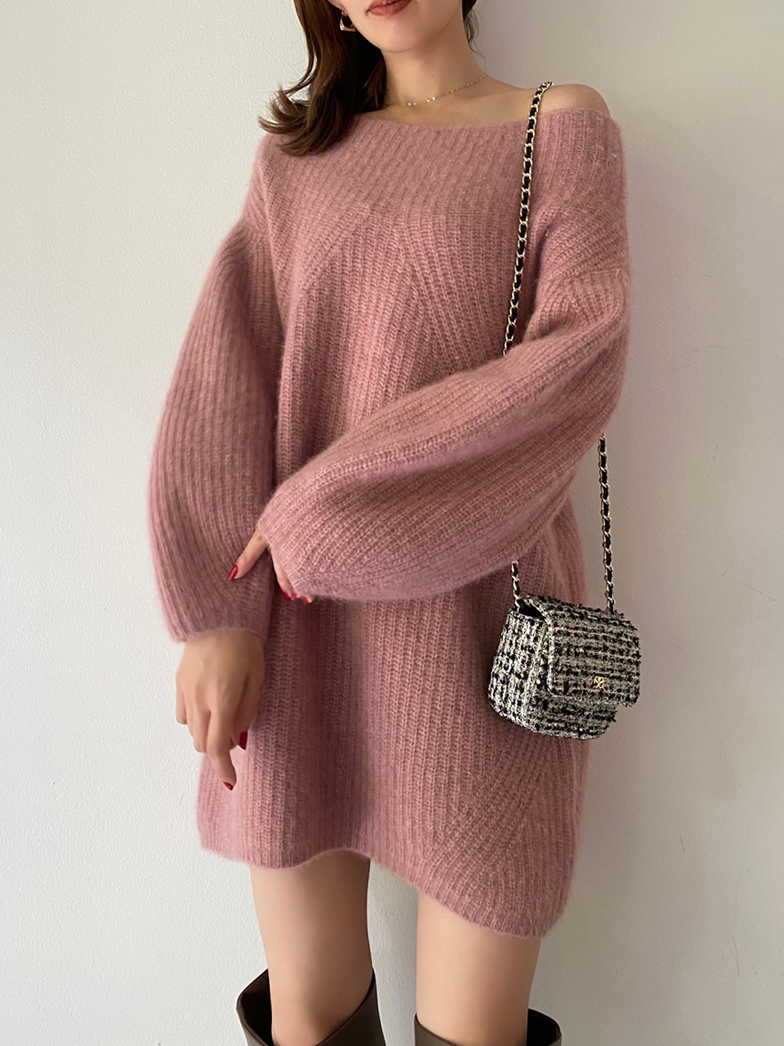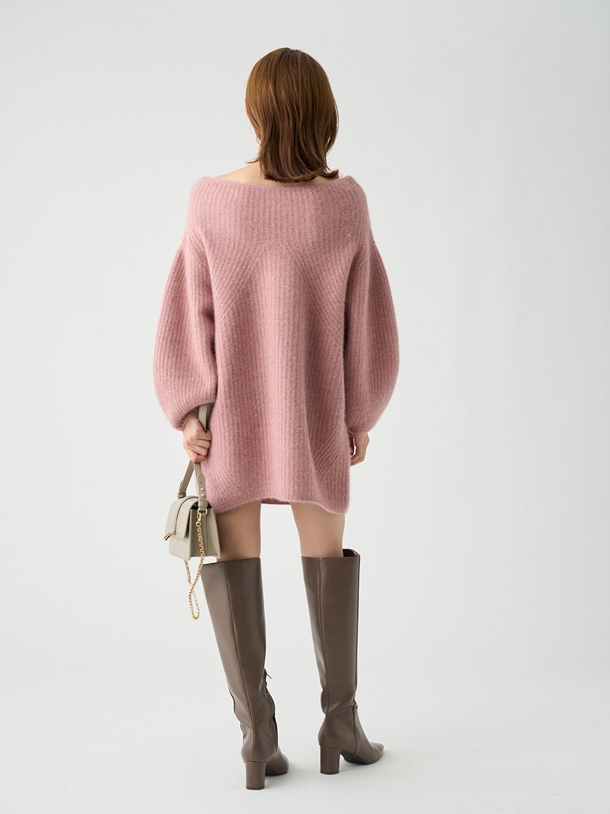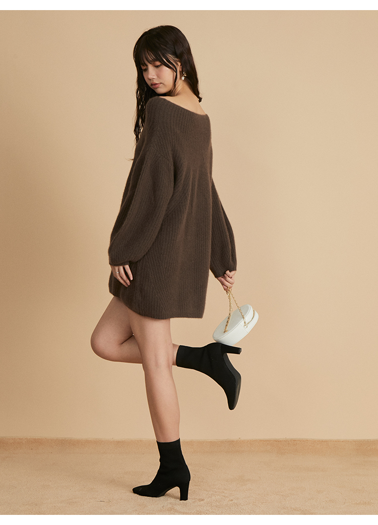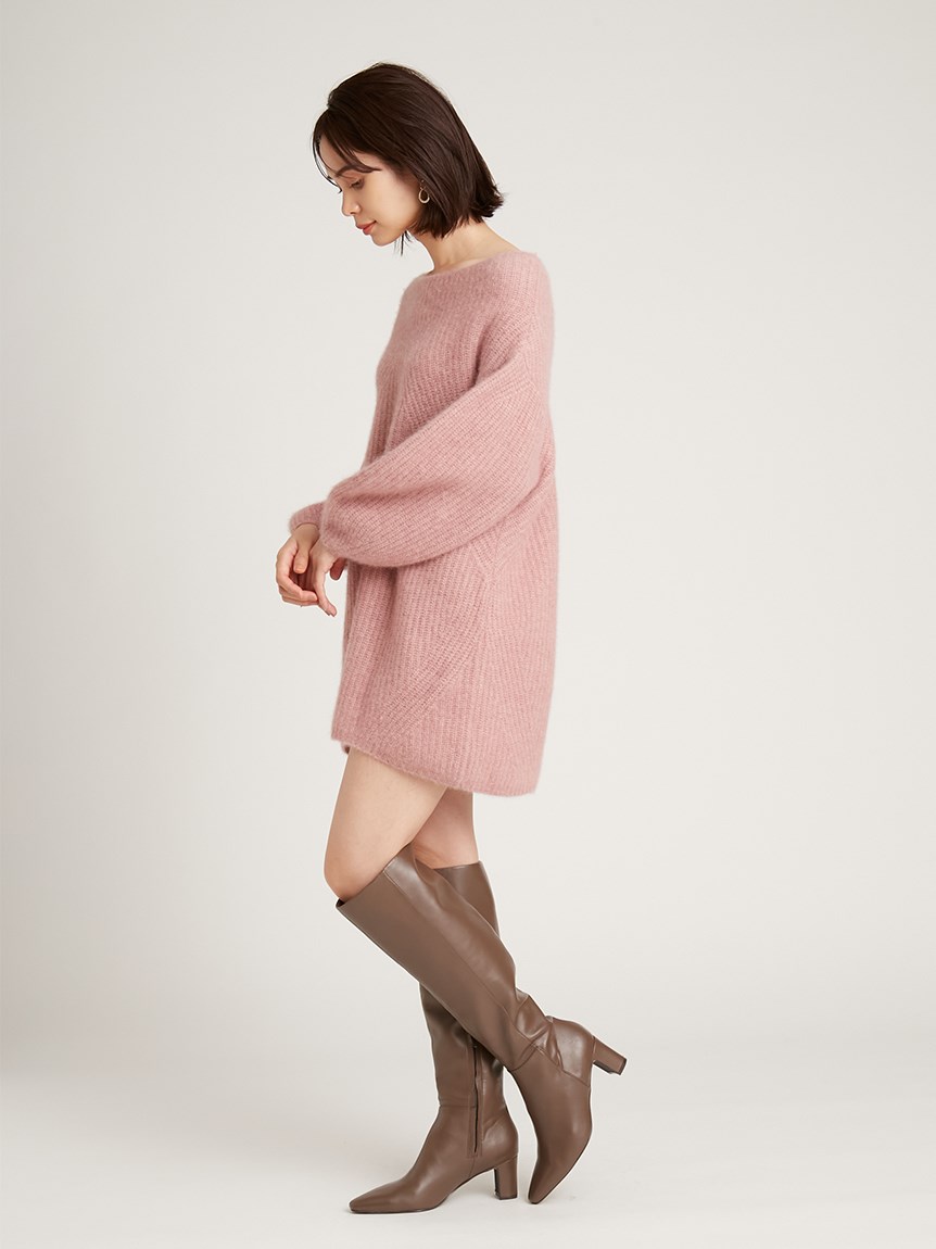 抜け感のある大人の色香たっぷりでお届けする人気のミニニットワンピース。今季は柄の入り方を新しくデザインし直しアップデートしました。やや広めに開いたボートネックやドロップショルダーがこなれた雰囲気を纏い、ミニ丈ながら子供っぽくならないよう、洗練されたディテール使いにこだわっています。ネック部分はオフショルにもボートネックにもアレンジ可能。ロングブーツを合わせたスタイリングや、パンツを合わせたトップスとしての着用もおすすめです。