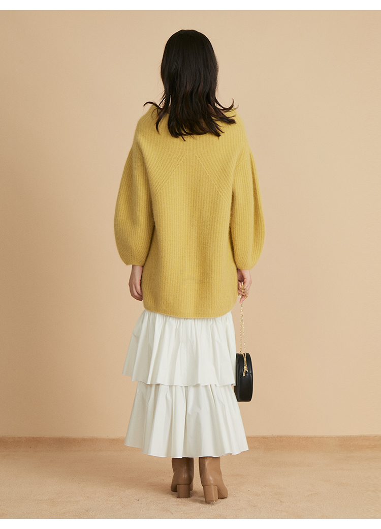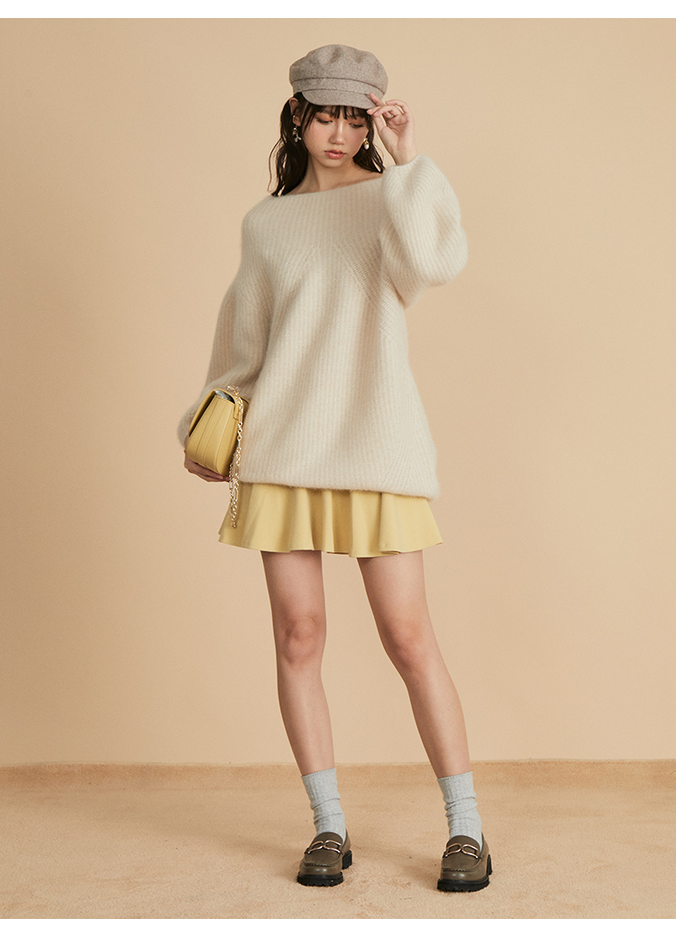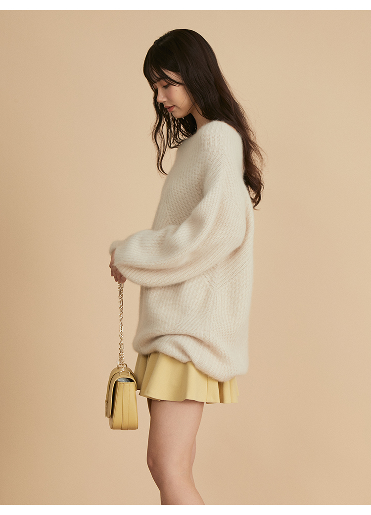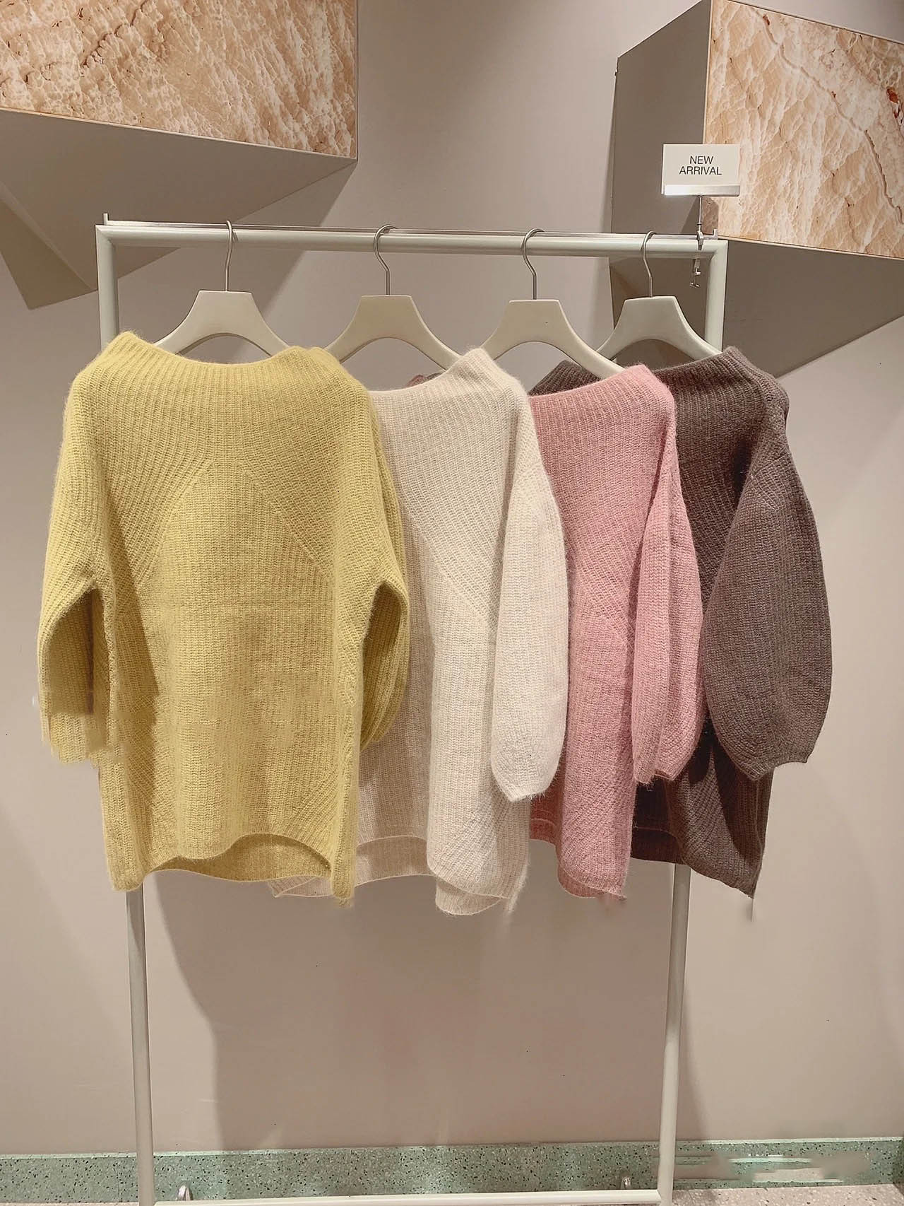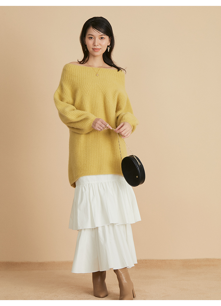 ふわふわで暖かいラクーン混のニットを使用しました。ニュアンスのある色合いで着回しやすいアイボリー、ピンク、ブラウンの3色に加え、トレンドライクなイエローが仲間入りです。