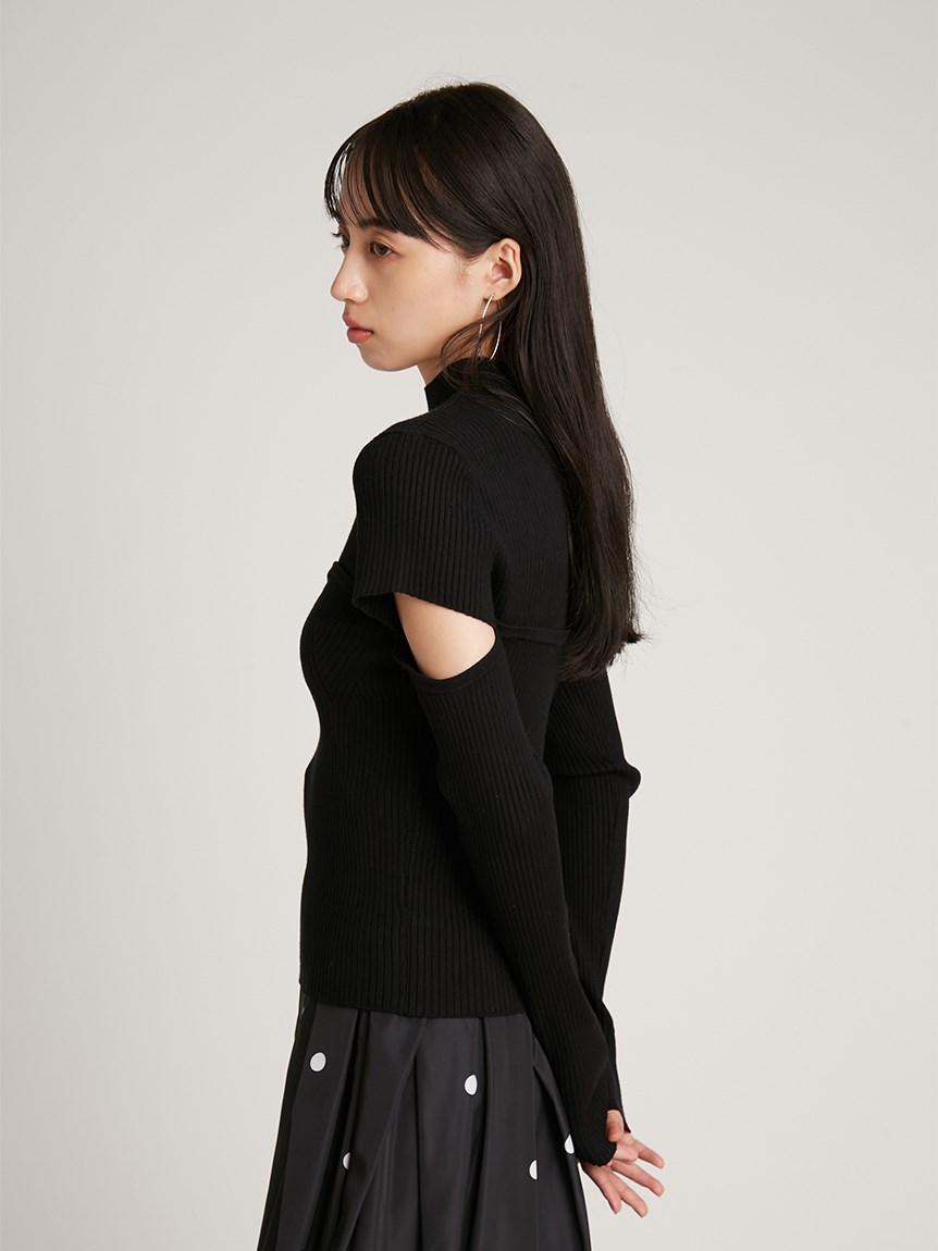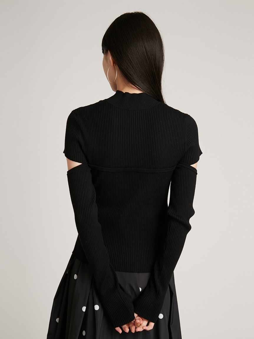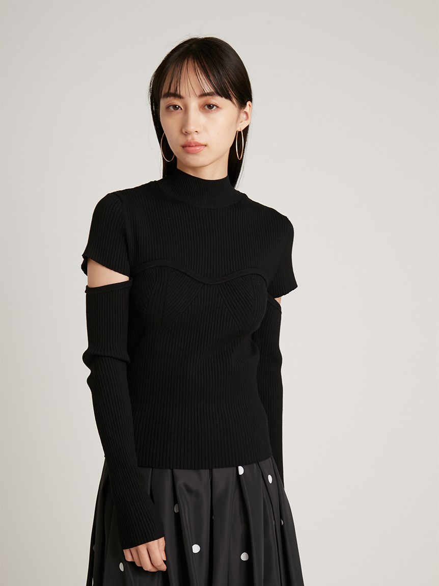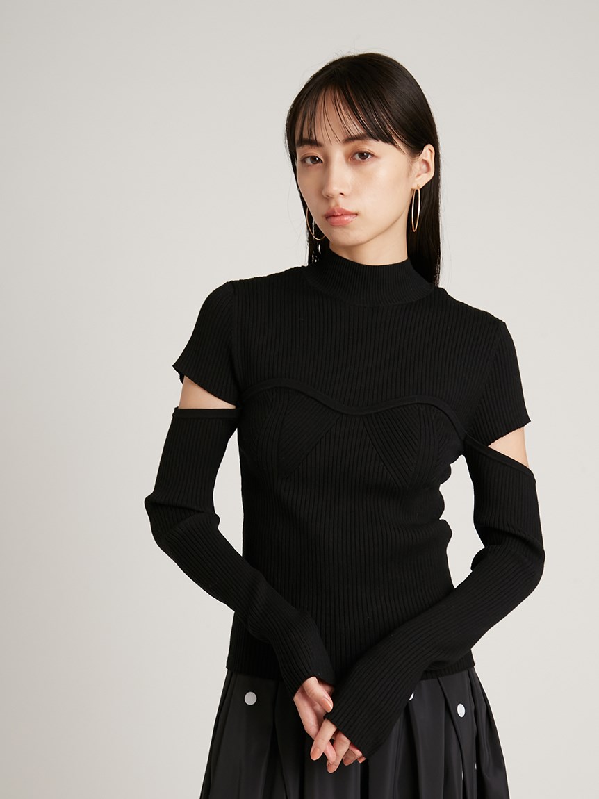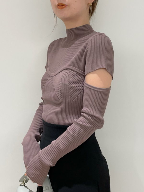 ボディラインを美しく見せるタイトシルエットのニットプルオーバー。袖に施された大胆なスリットでヘルシーな肌見せができ、抜け感を演出しました。ビスチェをレイヤードしたような編み地のデザインが、女性らしさを際立たせます。合わせるボトムを選ばないので、幅広いコーディネートに重宝します。