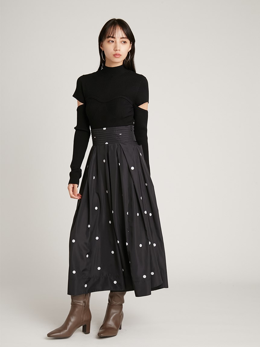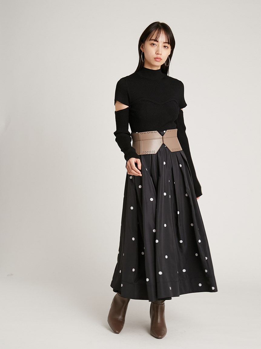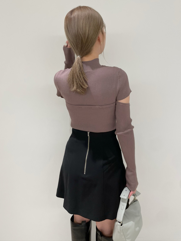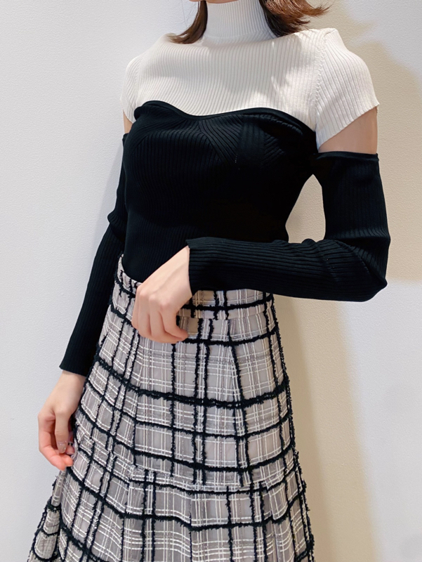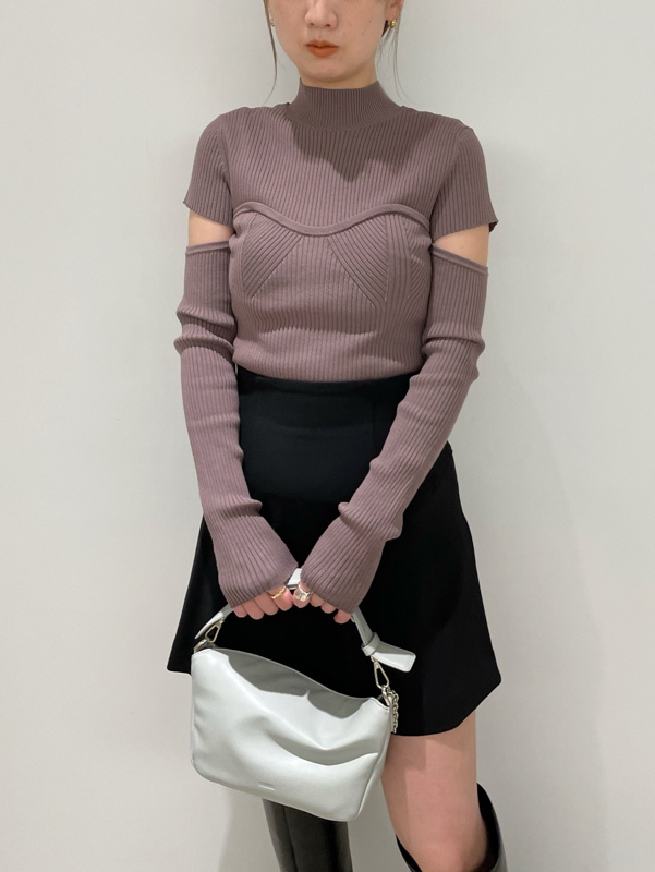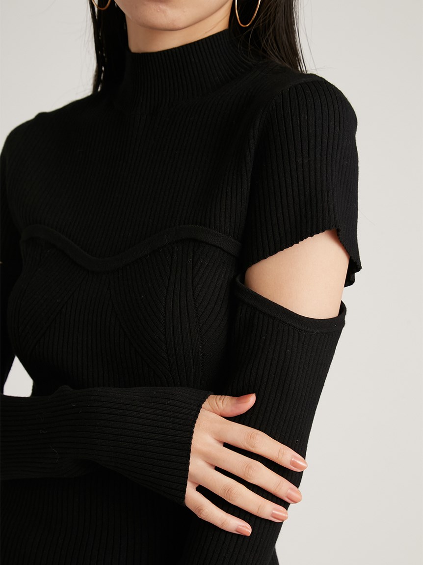 ボディラインを美しく見せるタイトシルエットのニットプルオーバー。袖に施された大胆なスリットでヘルシーな肌見せができ、抜け感を演出しました。ビスチェをレイヤードしたような編み地のデザインが、女性らしさを際立たせます。合わせるボトムを選ばないので、幅広いコーディネートに重宝します。