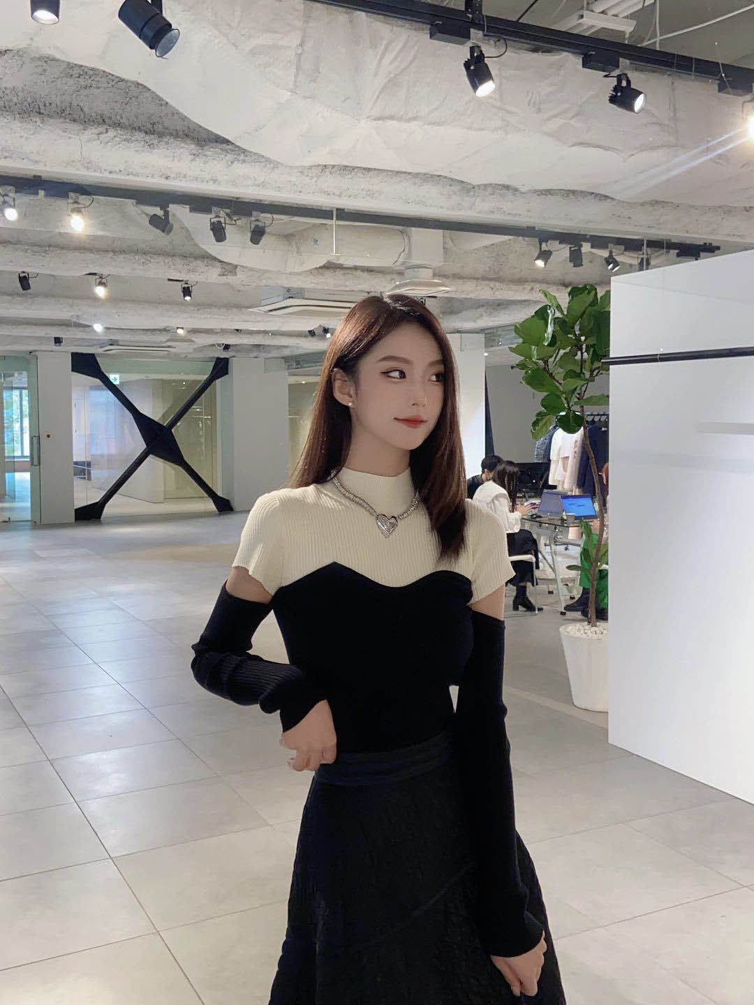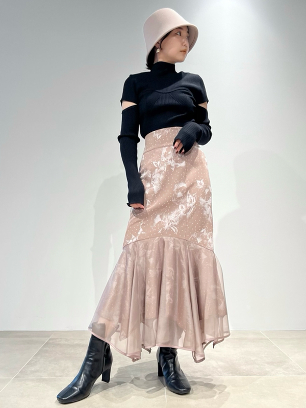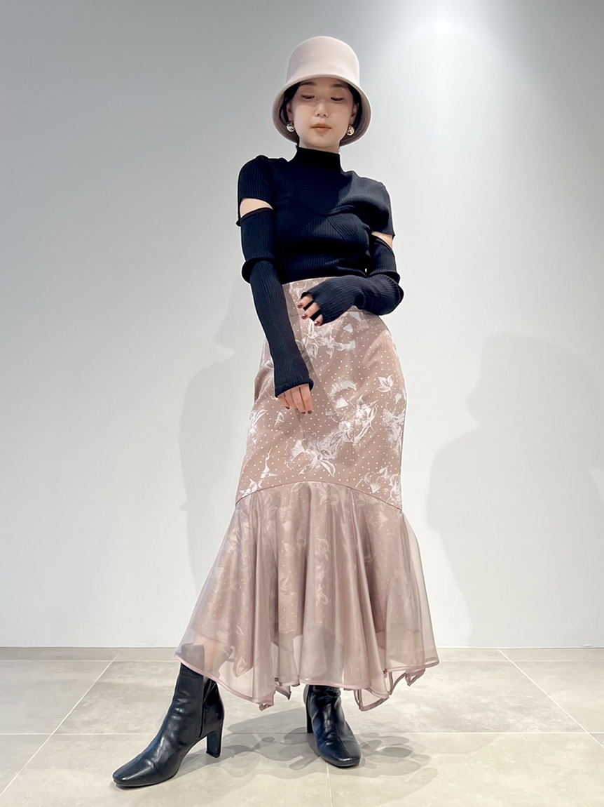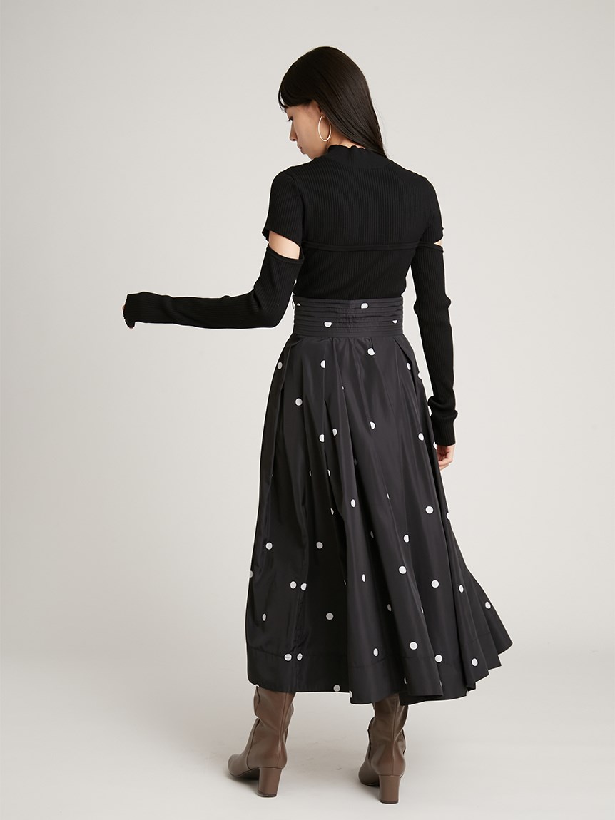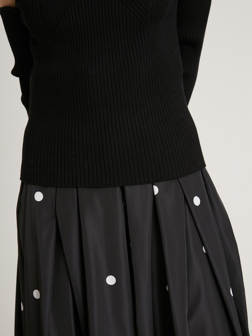 ボディラインを美しく見せるタイトシルエットのニットプルオーバー。袖に施された大胆なスリットでヘルシーな肌見せができ、抜け感を演出しました。ビスチェをレイヤードしたような編み地のデザインが、女性らしさを際立たせます。合わせるボトムを選ばないので、幅広いコーディネートに重宝します。