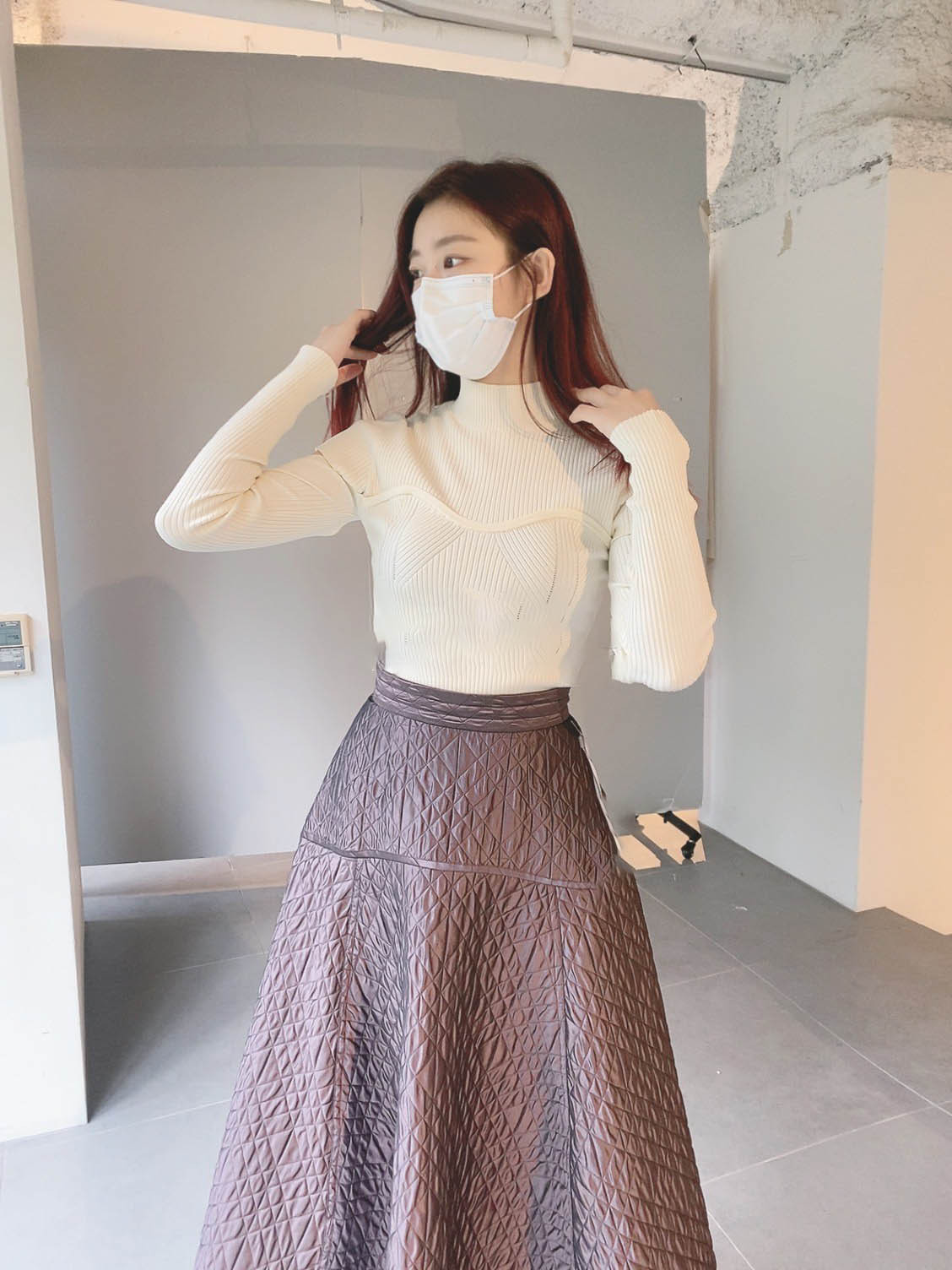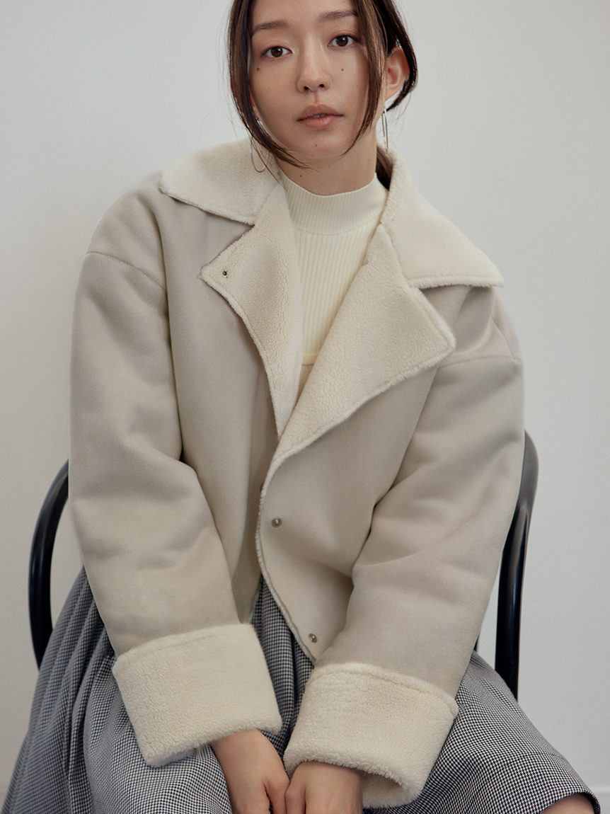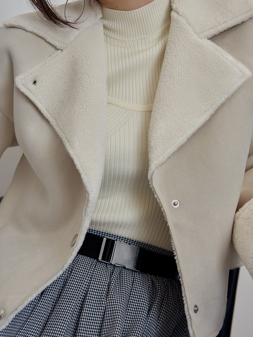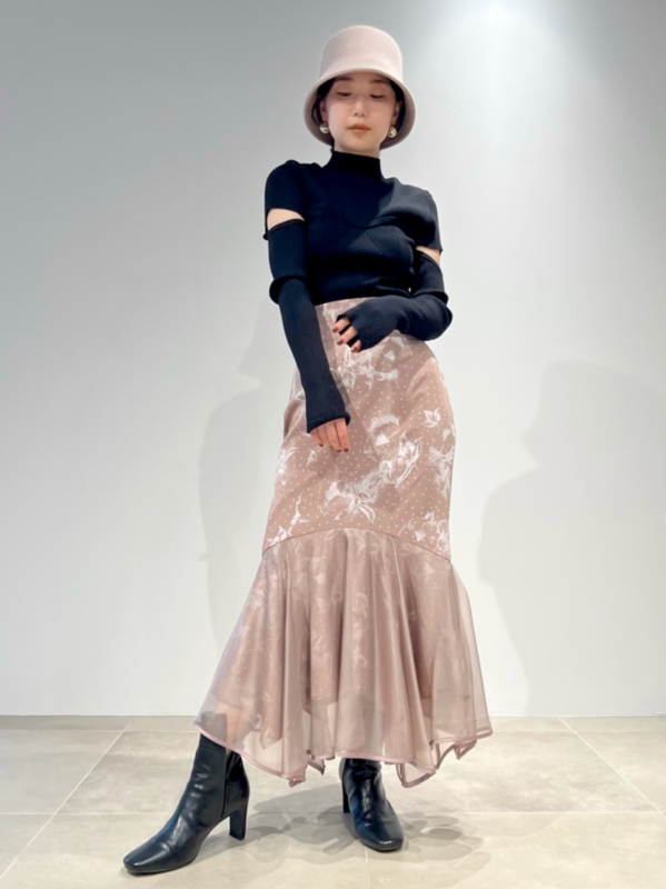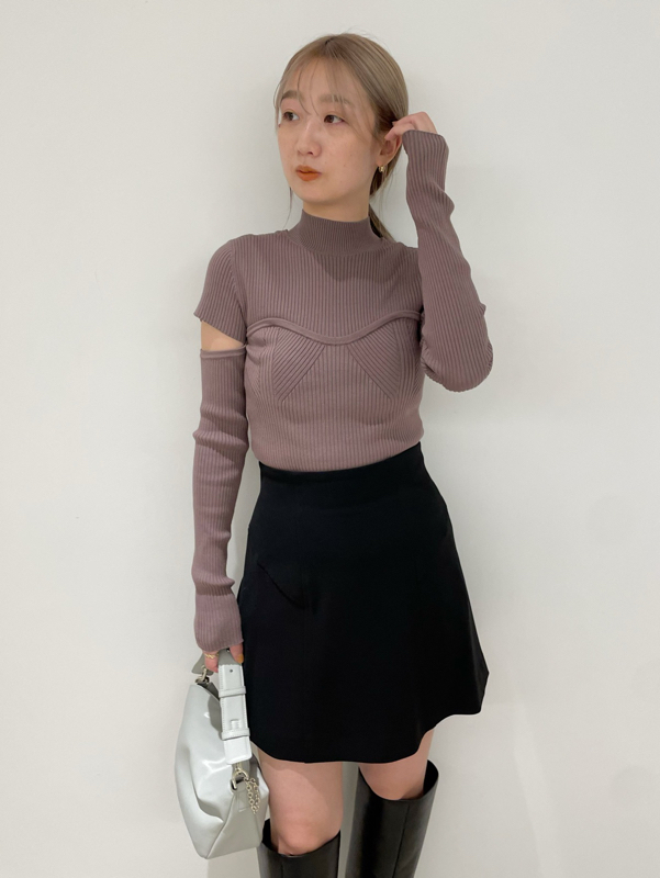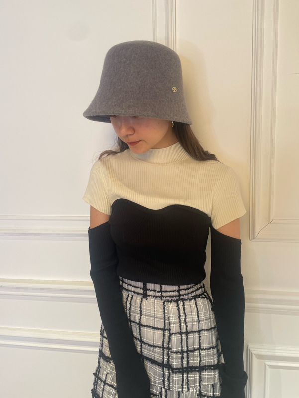 エコレーヨンを用いたサステナブルなニット素材を使用しました。シックで合わせやすいアイボリーとブラック、ラベンダーに加え、配色でモードに仕上げたミックスをご用意。