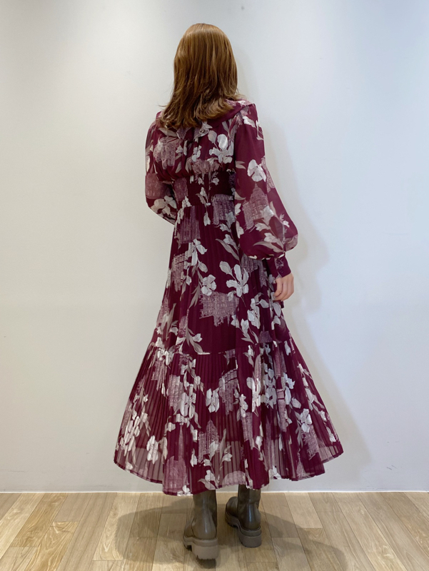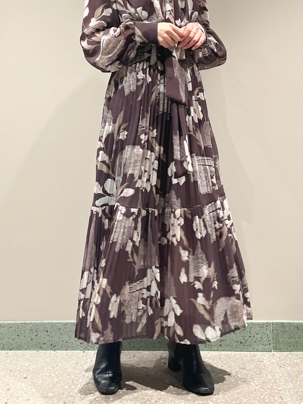 柔らかな落ち感のあるシフォン生地を使用。淡く優しい色調のライトグレー、シックで大人っぽい色合いのワイン、シーズンムード高まるダークブラウンの3色をご用意しました。