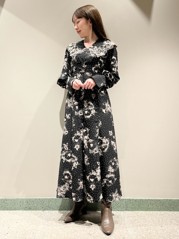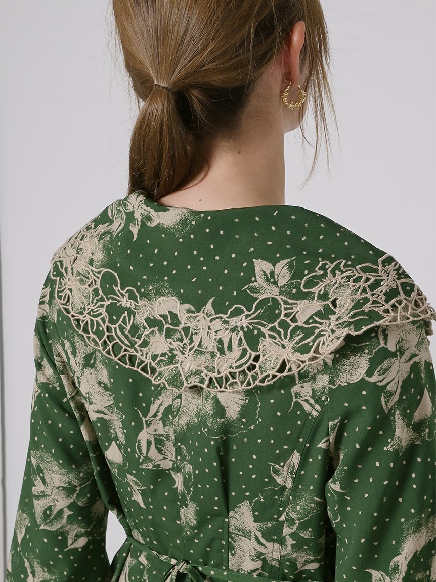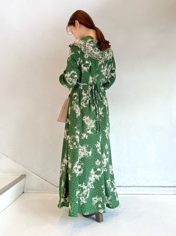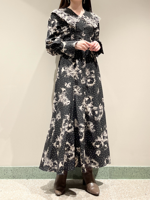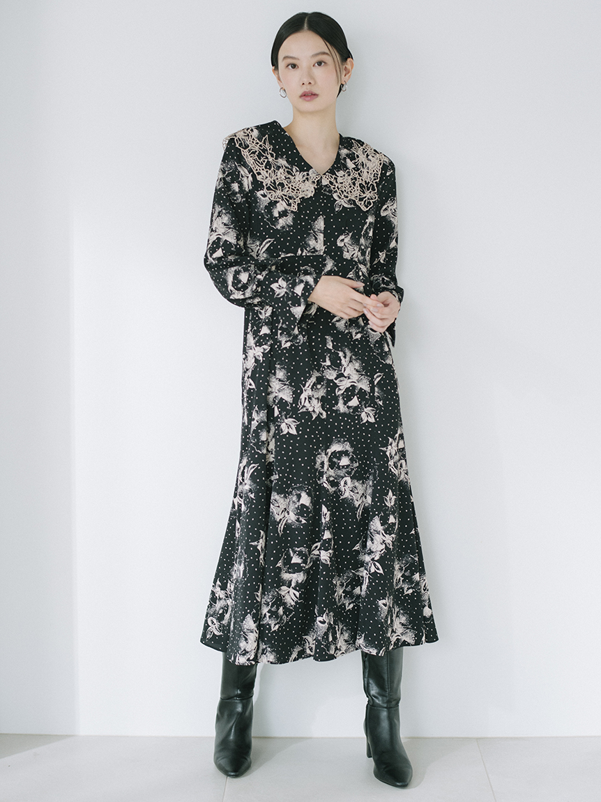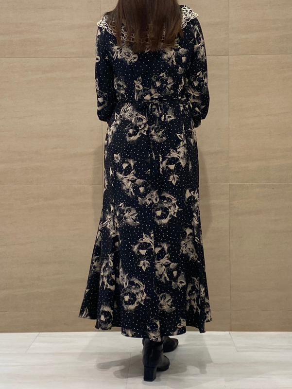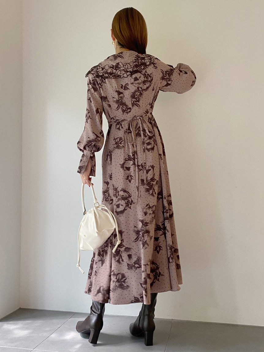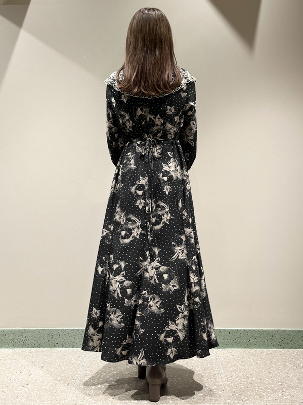 大花とドットを組み合わせたオリジナルのプリントが広がる、1枚でも華やかな主役級ワンピース。トレンドのビッグカラーには細かやな刺繍を施し、どこまでも女性らしく仕上げています。巧みなダーツや切り替えでウエストラインに美しく沿うよう仕立てられたメリハリのあるシルエット。バックウエストではリボンをキュッと結び、後ろ姿まで愛らしく演出しています。