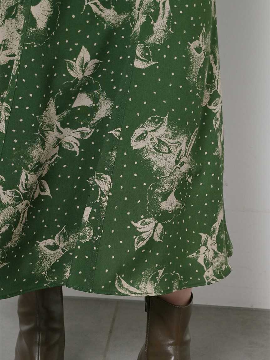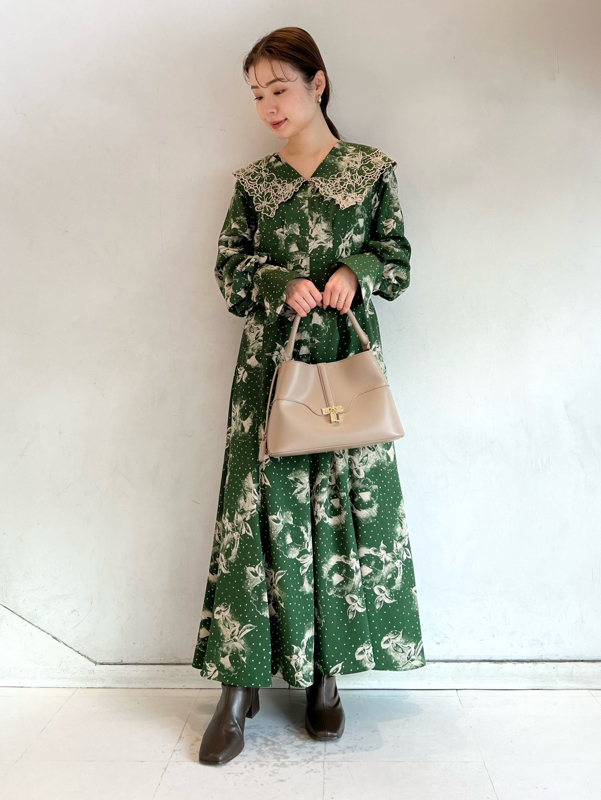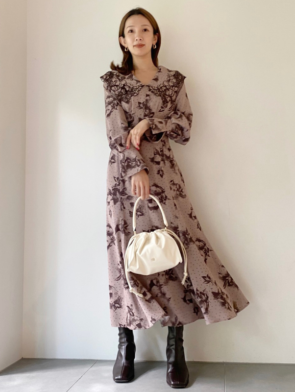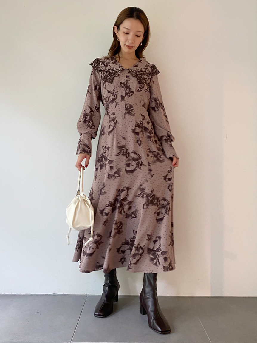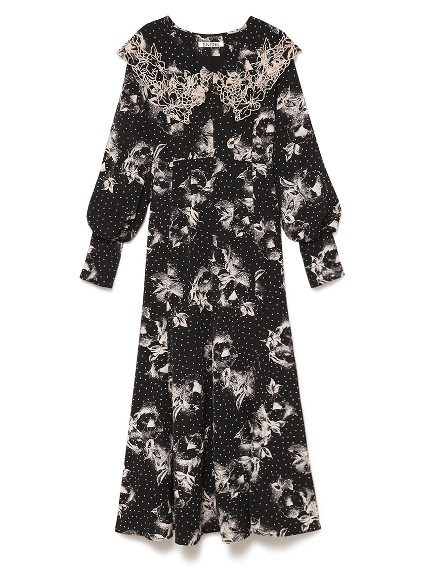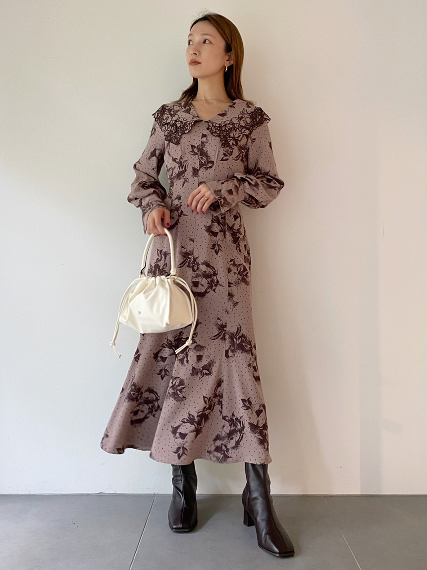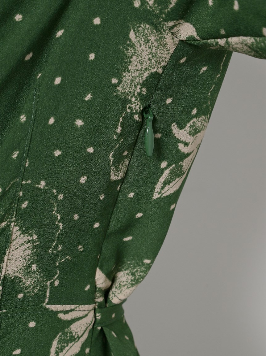 大花とドットを組み合わせたオリジナルのプリントが広がる、1枚でも華やかな主役級ワンピース。トレンドのビッグカラーには細かやな刺繍を施し、どこまでも女性らしく仕上げています。巧みなダーツや切り替えでウエストラインに美しく沿うよう仕立てられたメリハリのあるシルエット。バックウエストではリボンをキュッと結び、後ろ姿まで愛らしく演出しています。