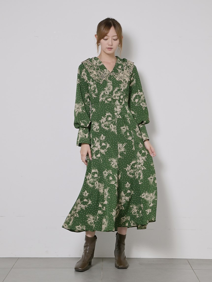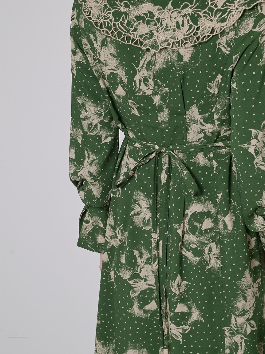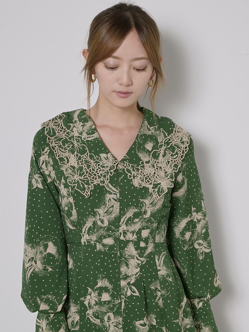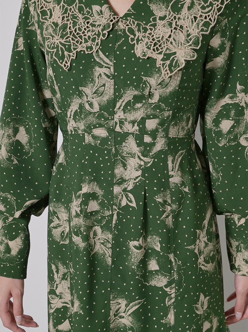 ビッグエンブロイダリーカラープリントワンピース