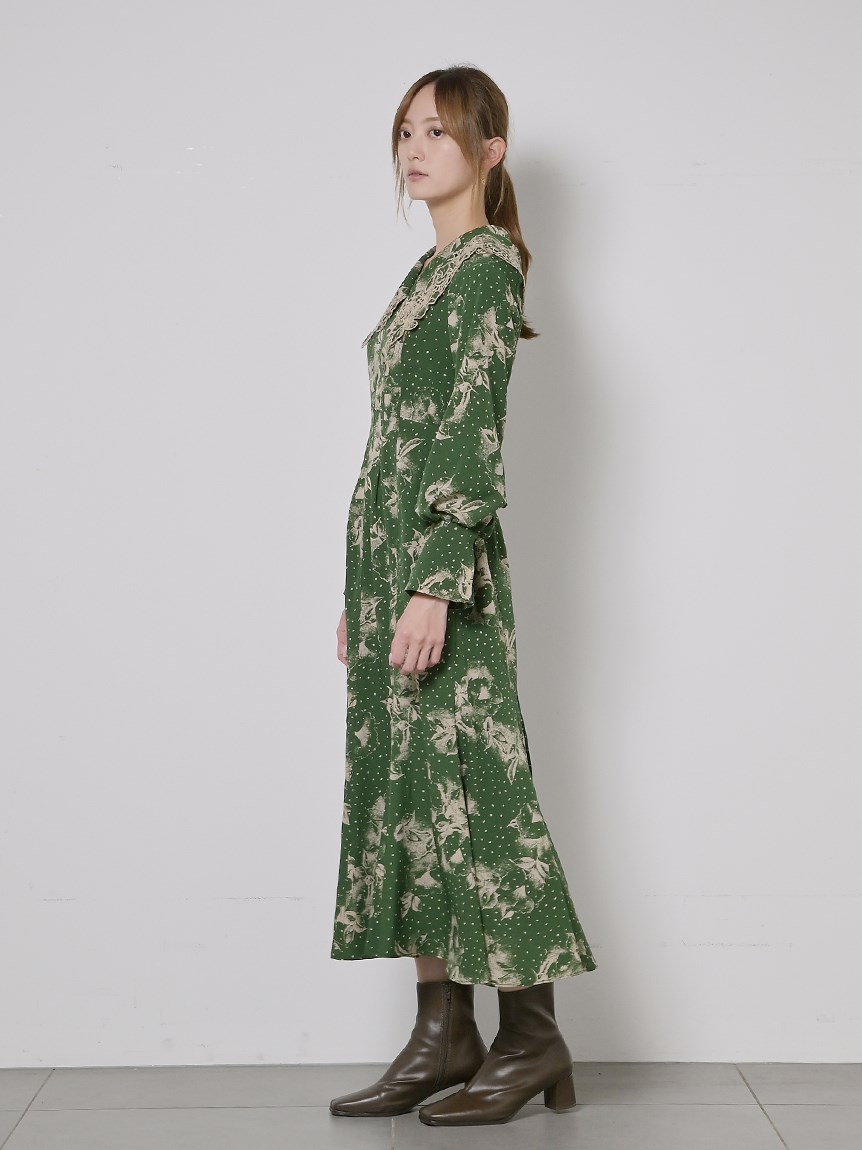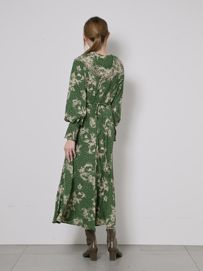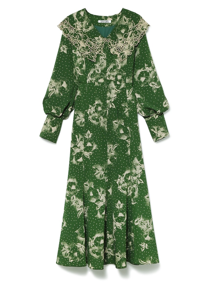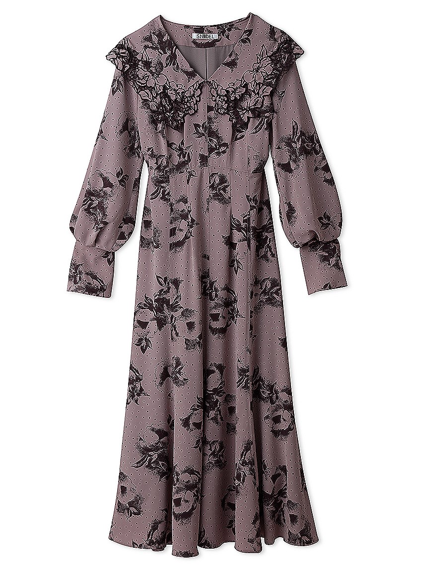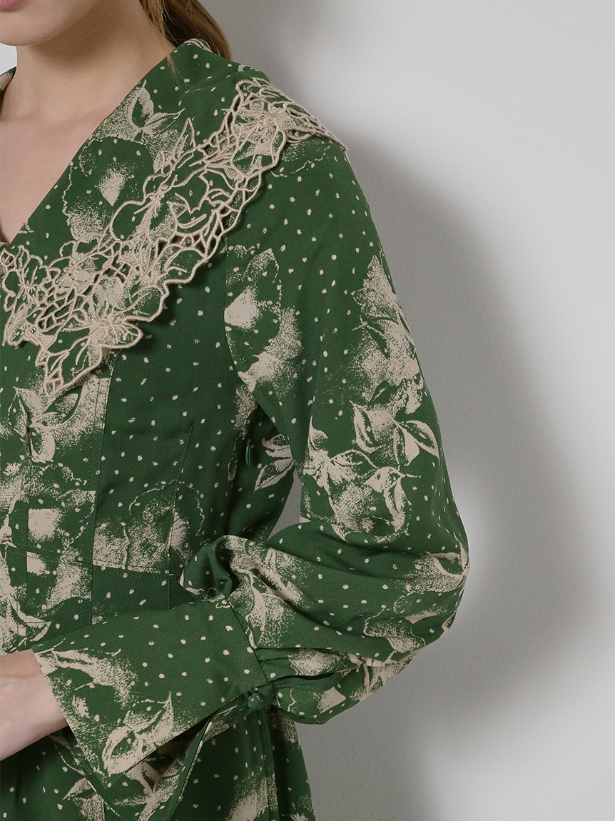 ビッグエンブロイダリーカラープリントワンピース
