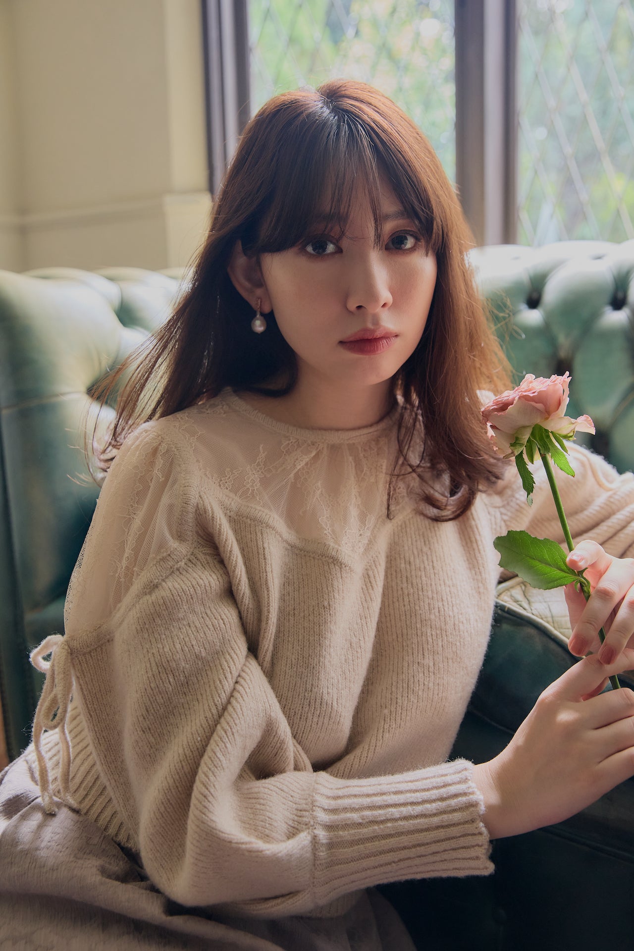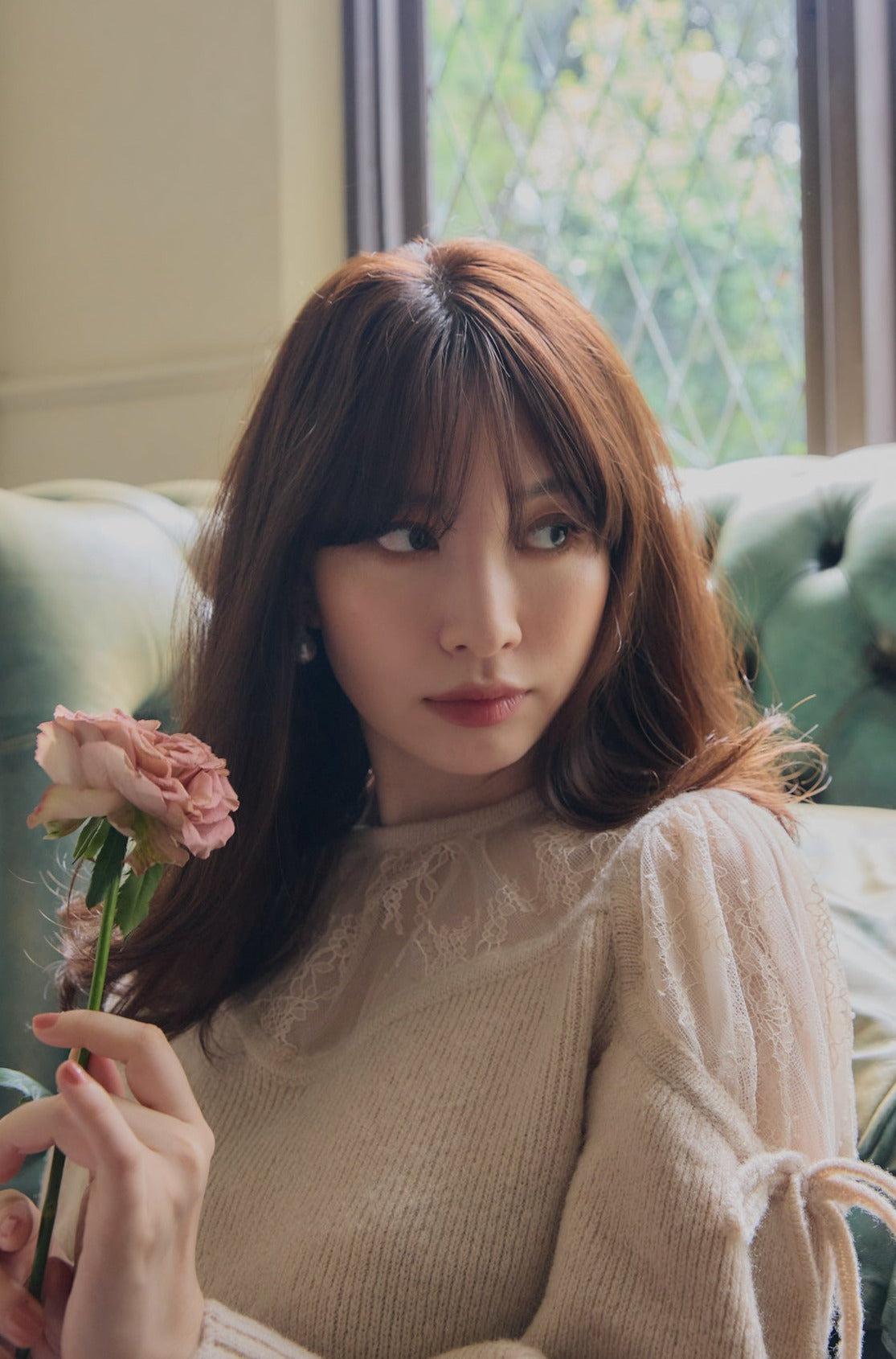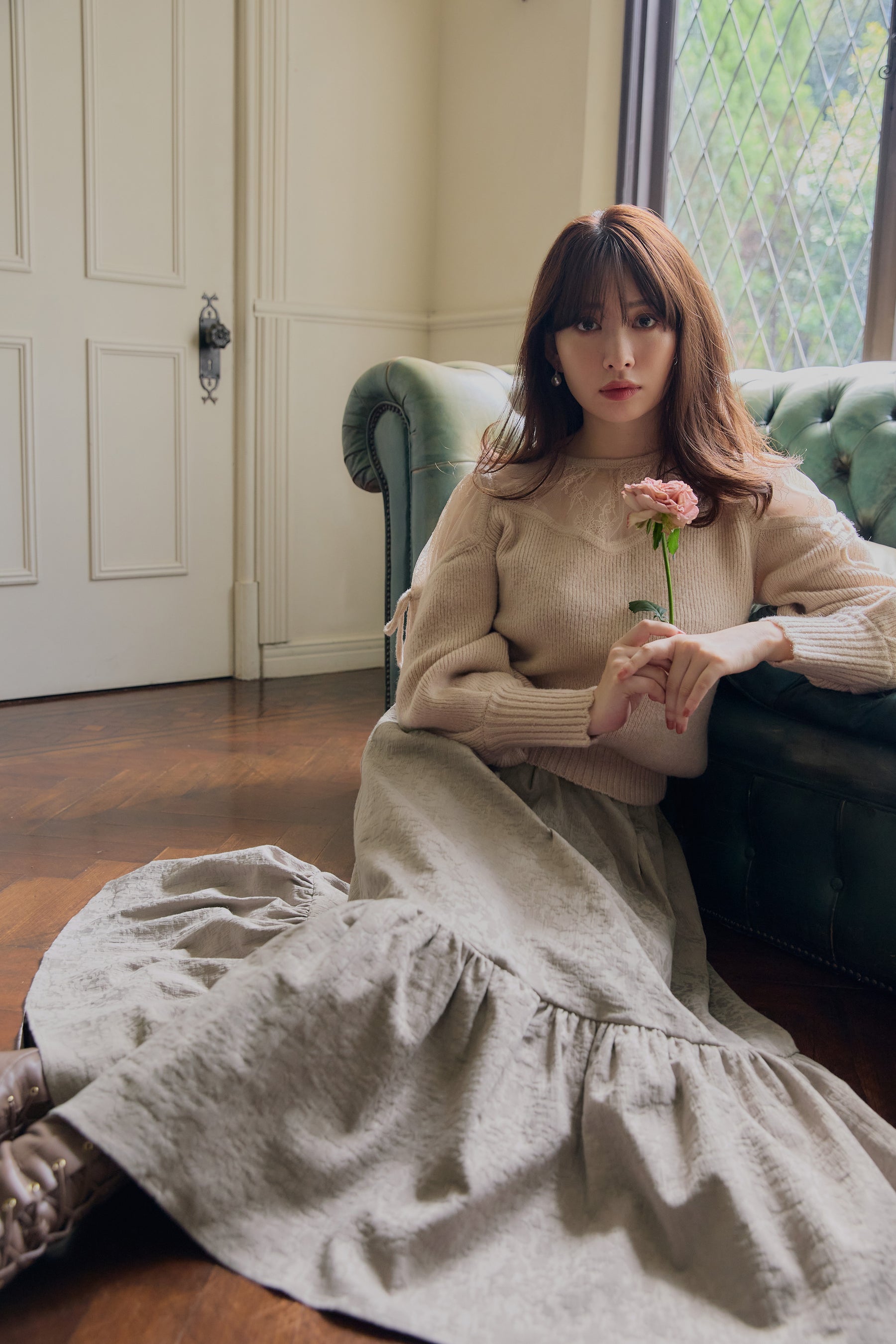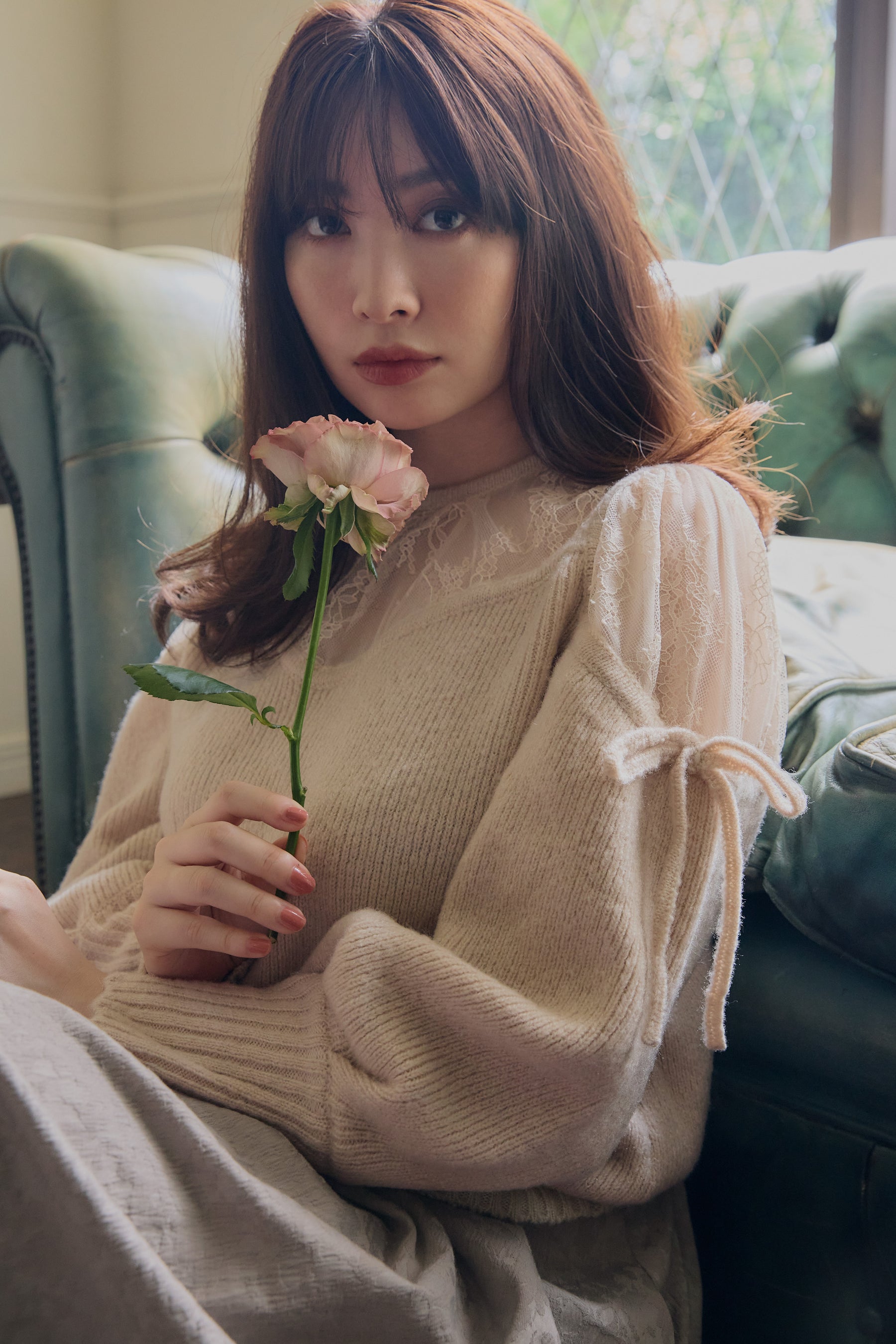 ヨークと肩部分をレース使いにすることにより、程よい肌見せが女性らしく、秋冬の気分を高めてくれます。