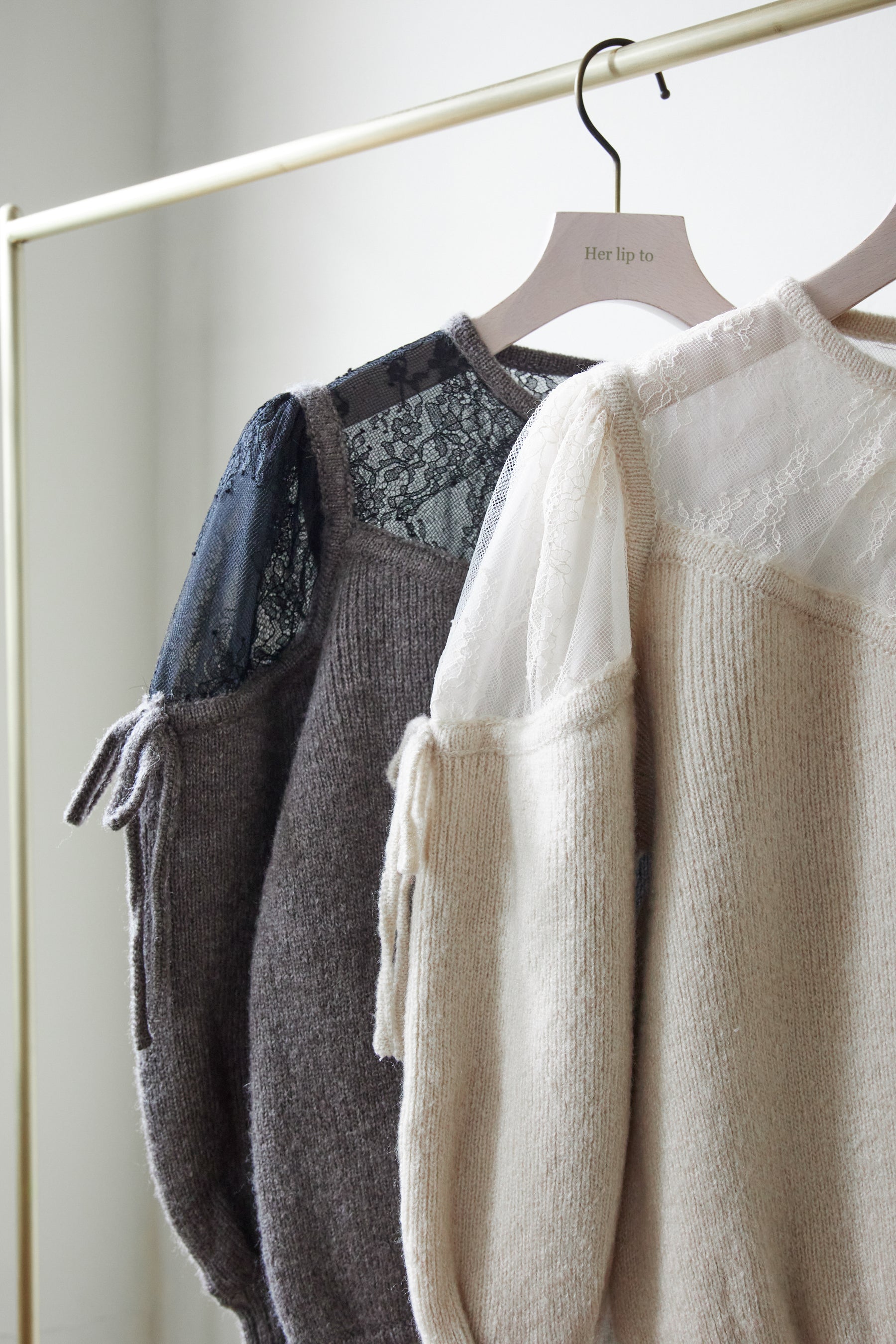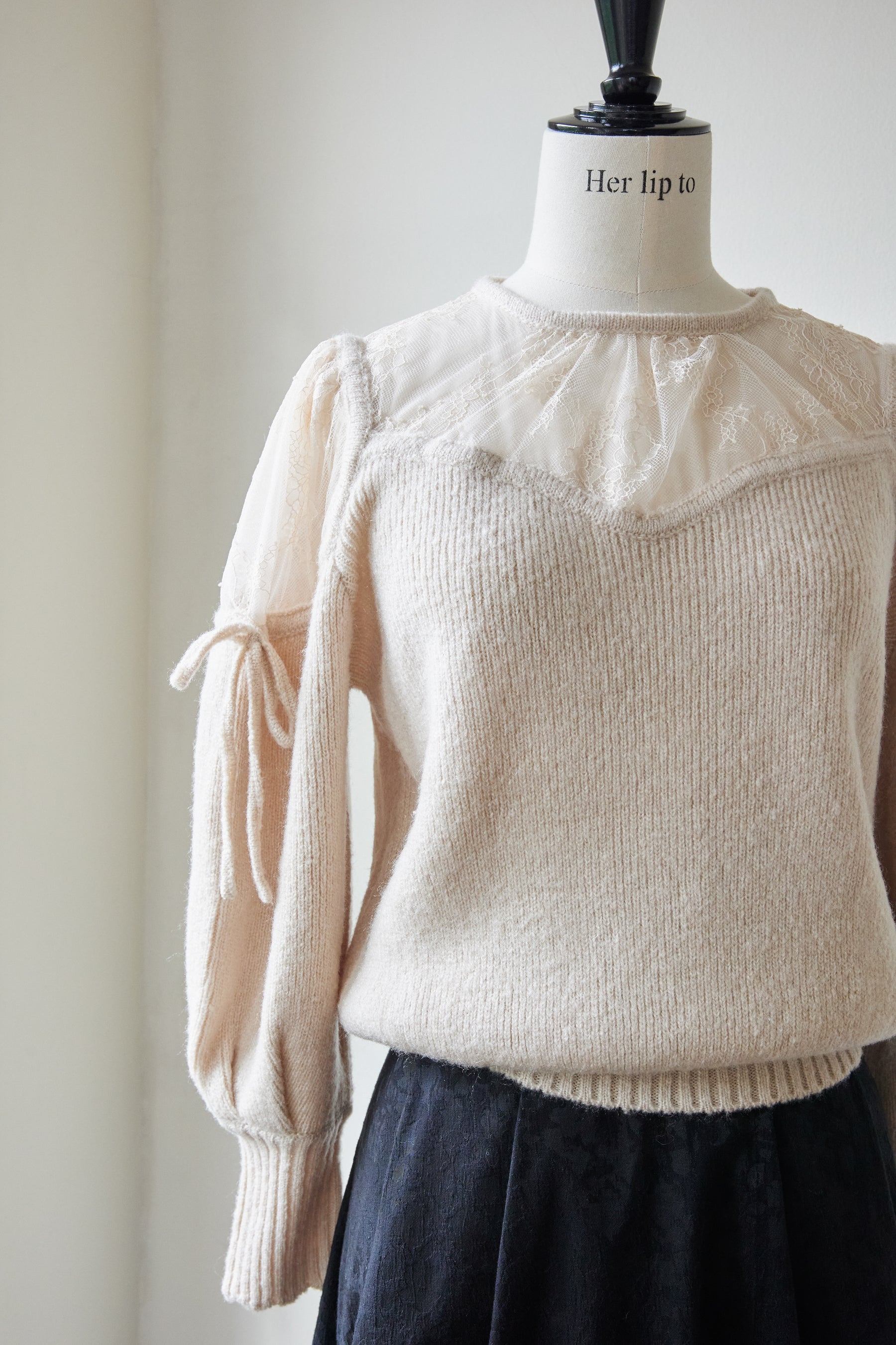 繊細なレースを使用した異素材ミックスが印象的なニットプルオーバー。