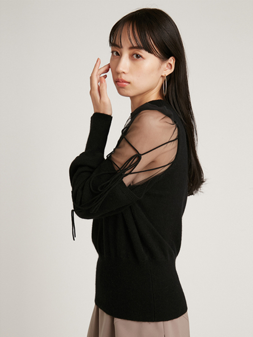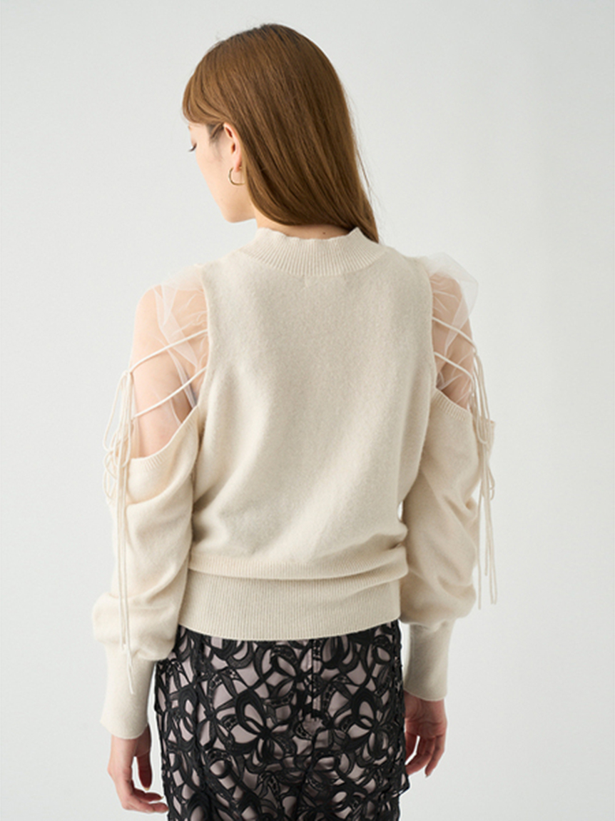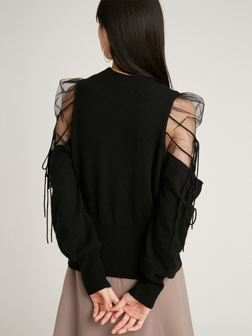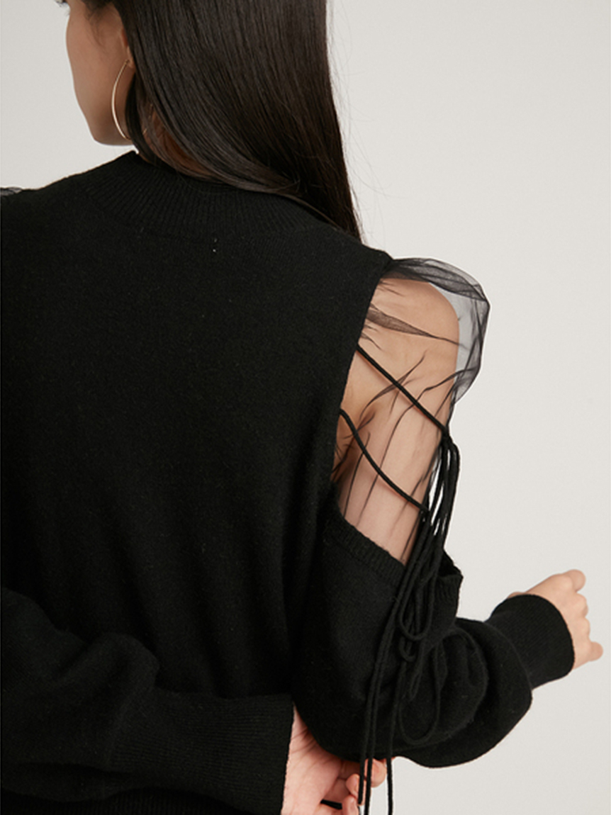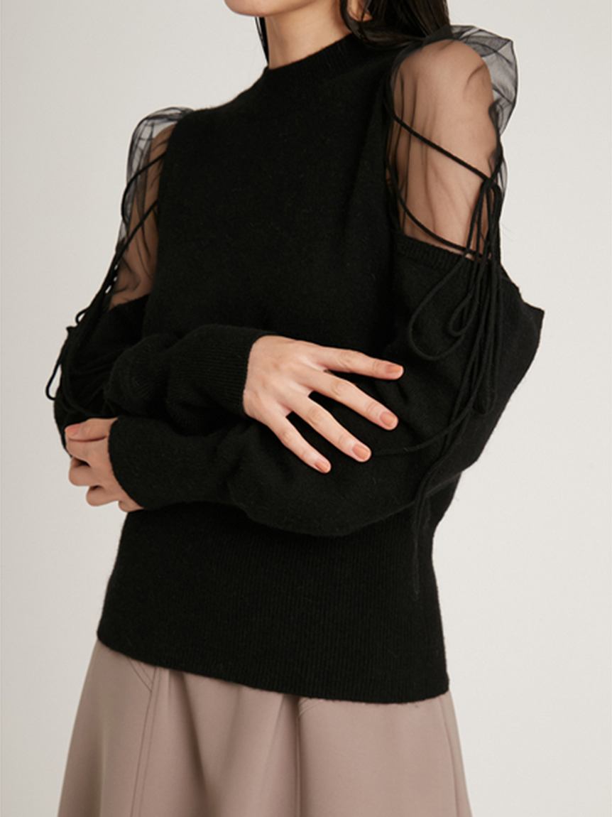 Sustainableシースルーショルダーニットプルオーバー