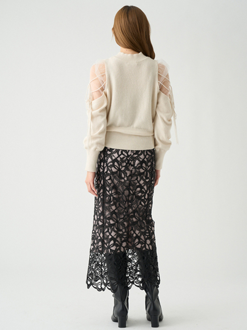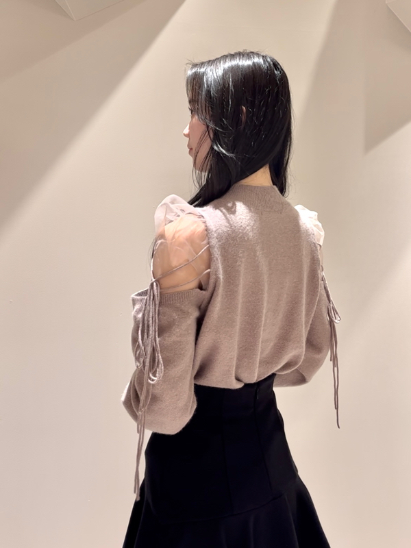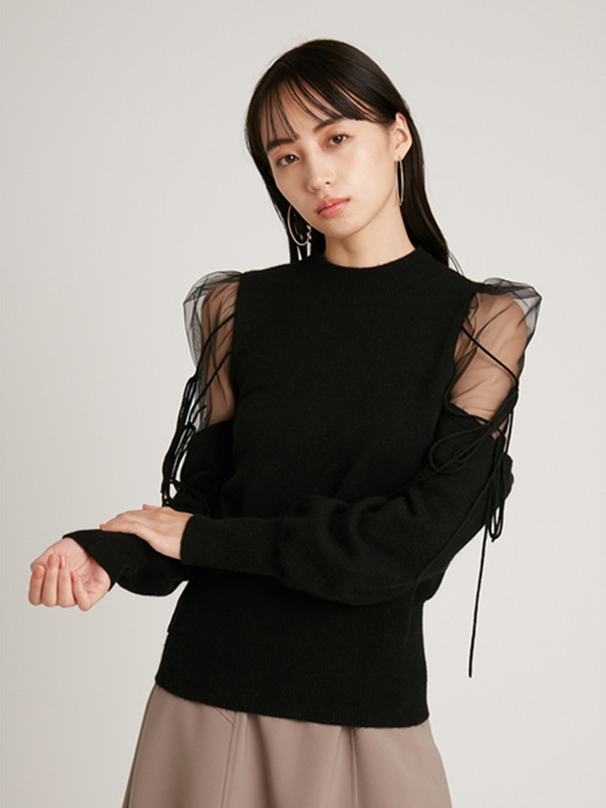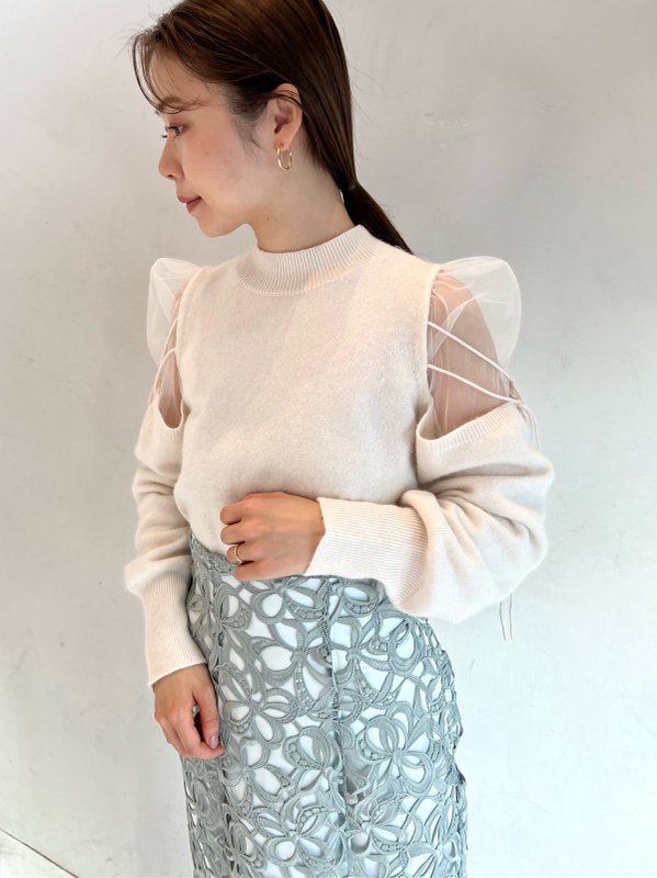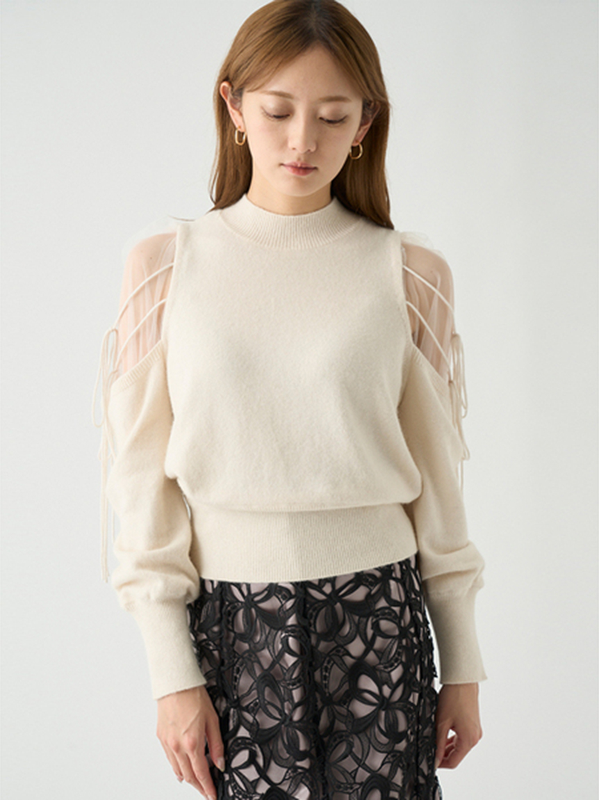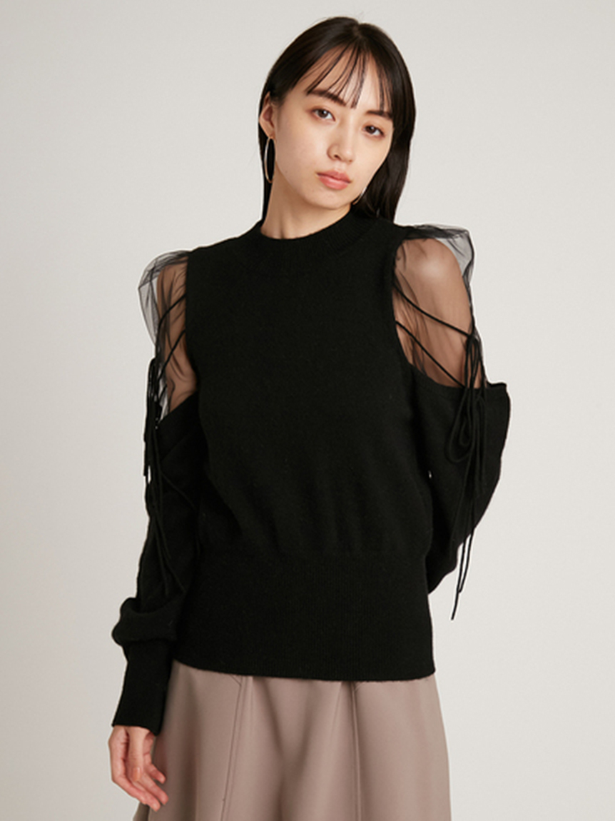 Sustainableシースルーショルダーニットプルオーバー