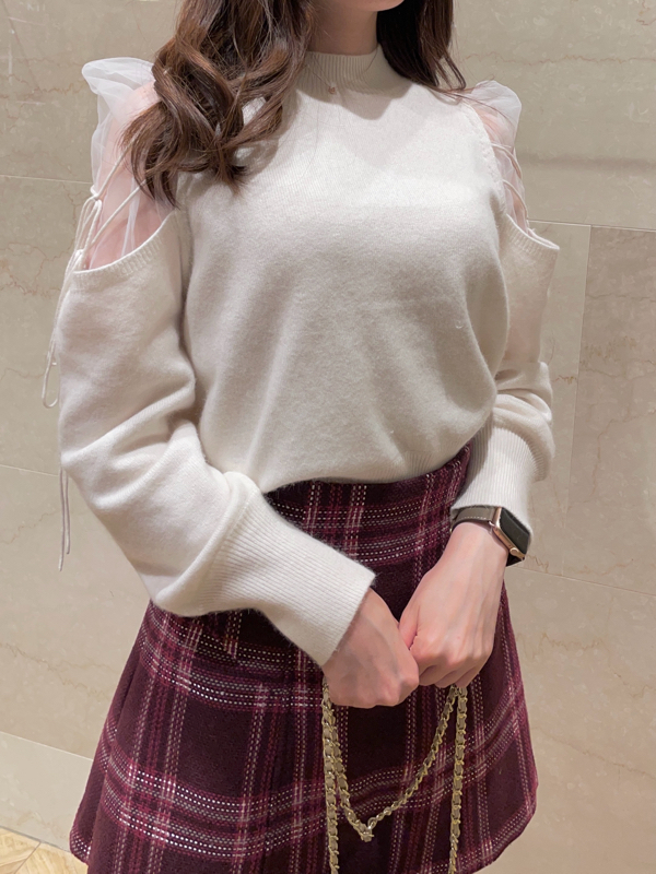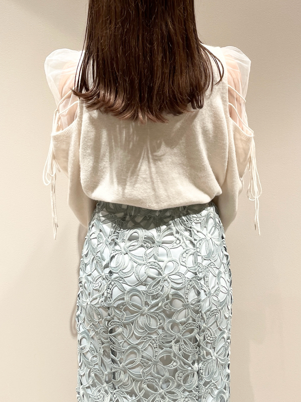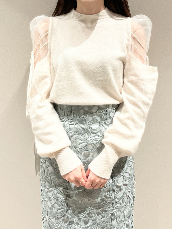 人気のシースルーショルダーニットが今季も登場。大人の色香を漂わせるセンシュアルな肌見せと華奢な2段リボンがフェミニンムードをぐっと高めてくれます。重くなりがちなニットに軽やかさがプラスされ、こなれ感のある印象に。シンプルに仕上げた身頃はジャストシルエットで、様々なボトムとバランス良く合わせられます。