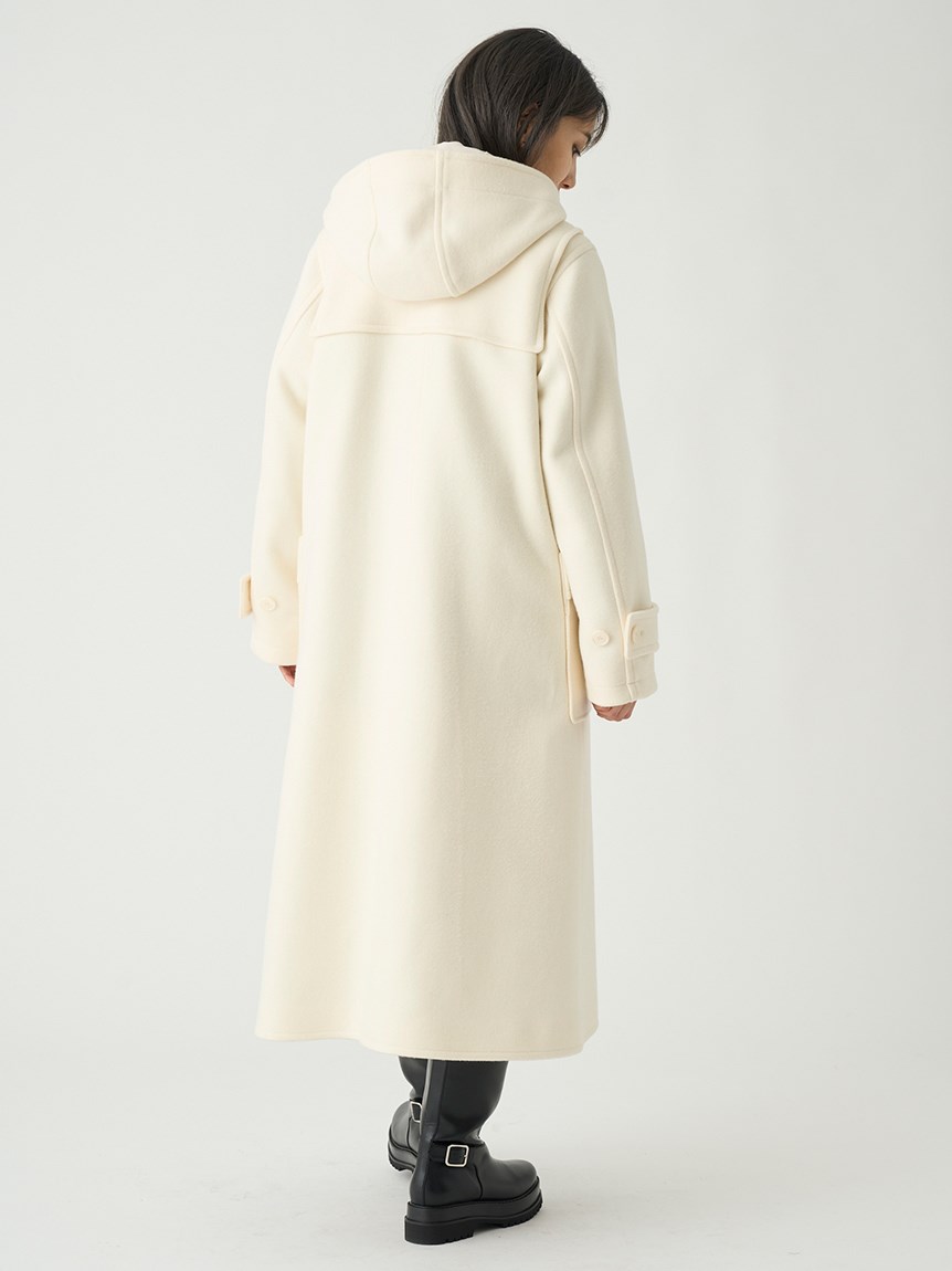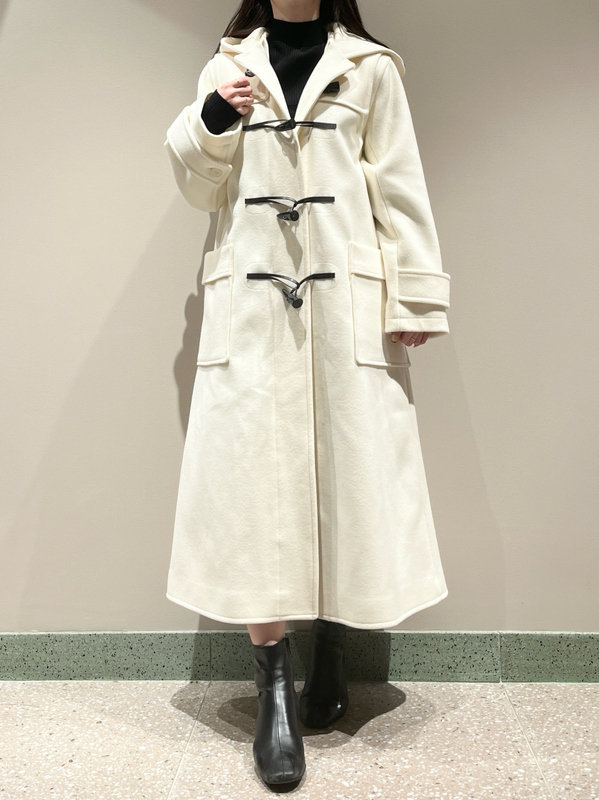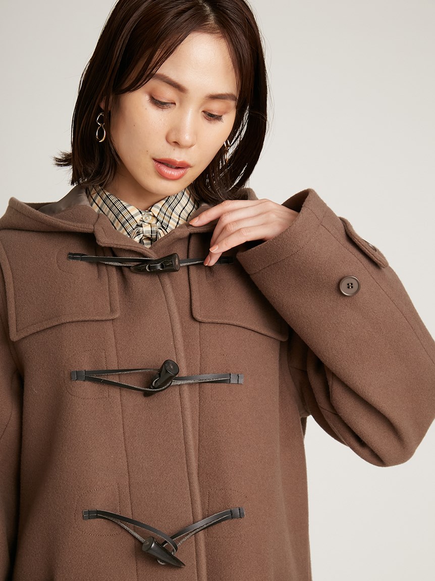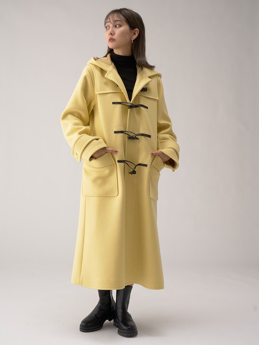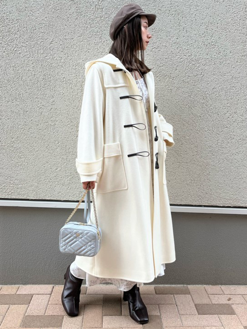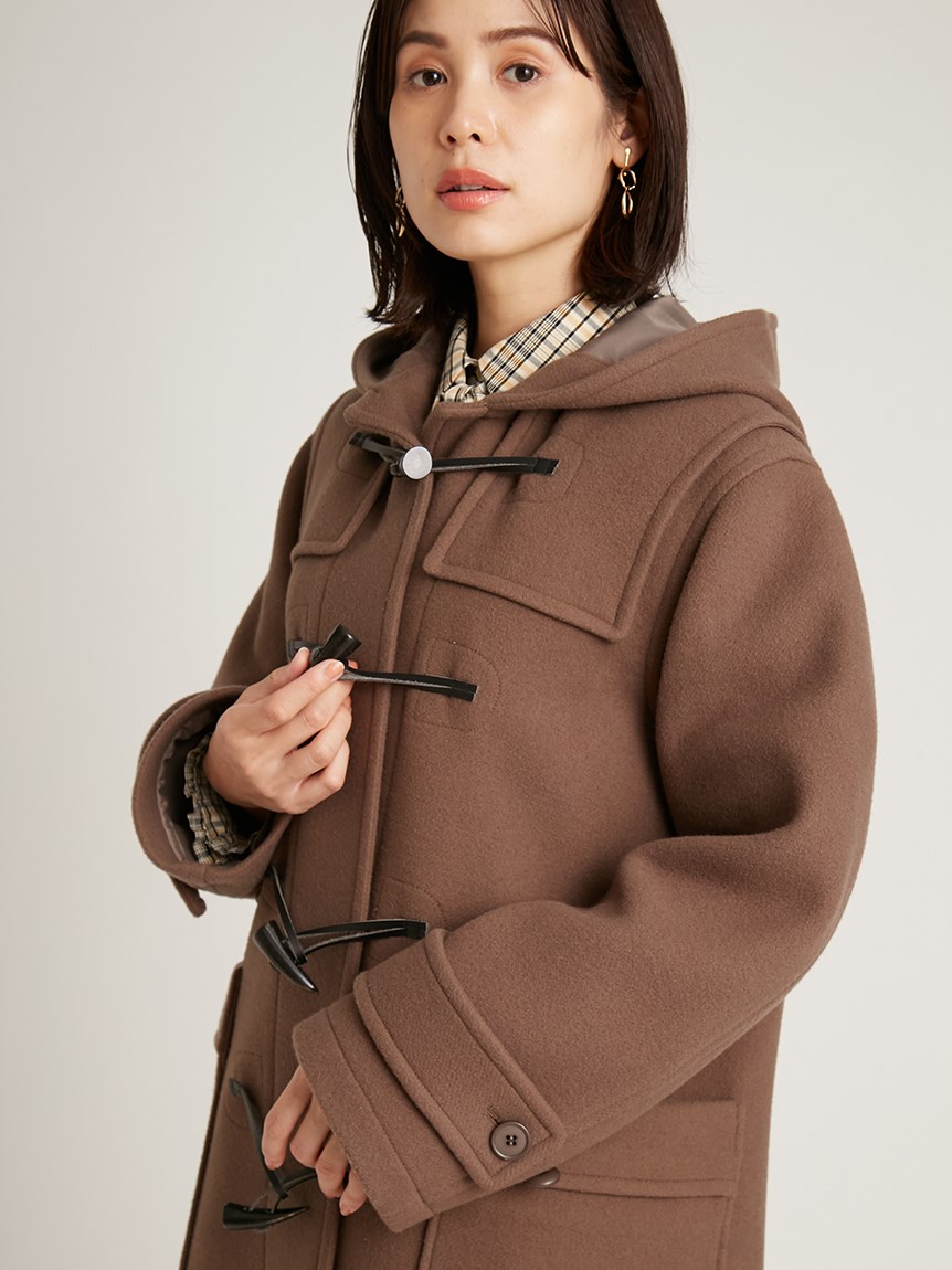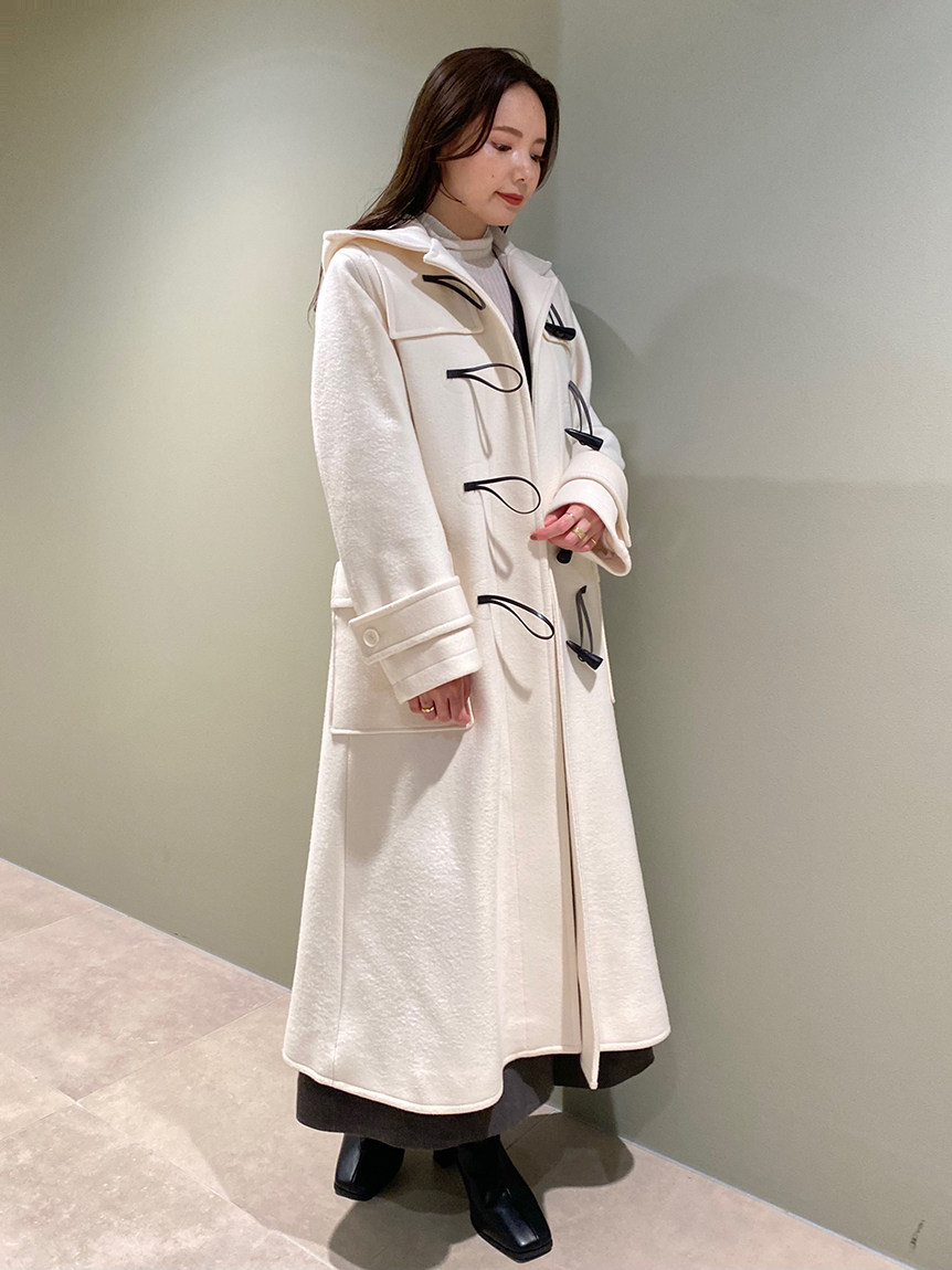 【こだわりのシルエットで女性らしく仕上げたロングダッフルコート】