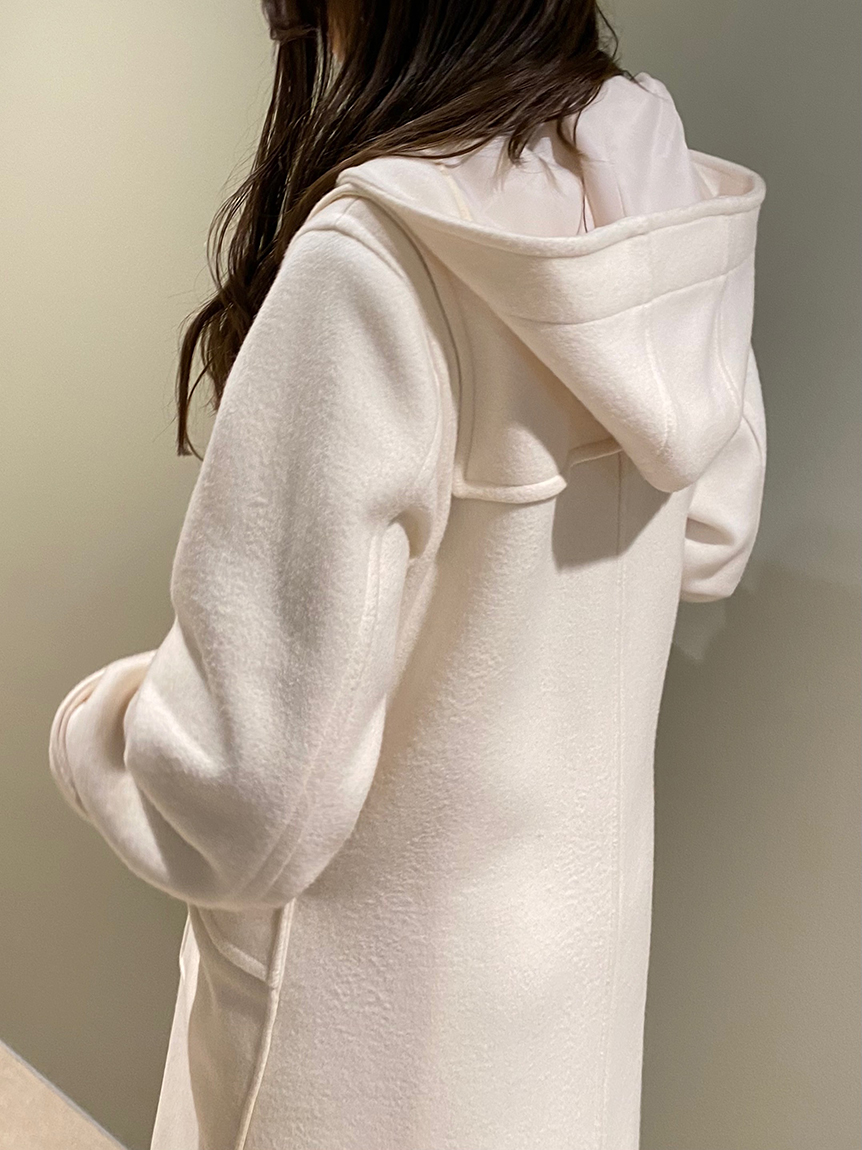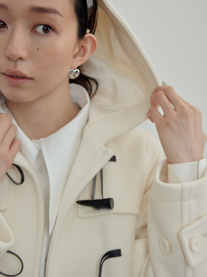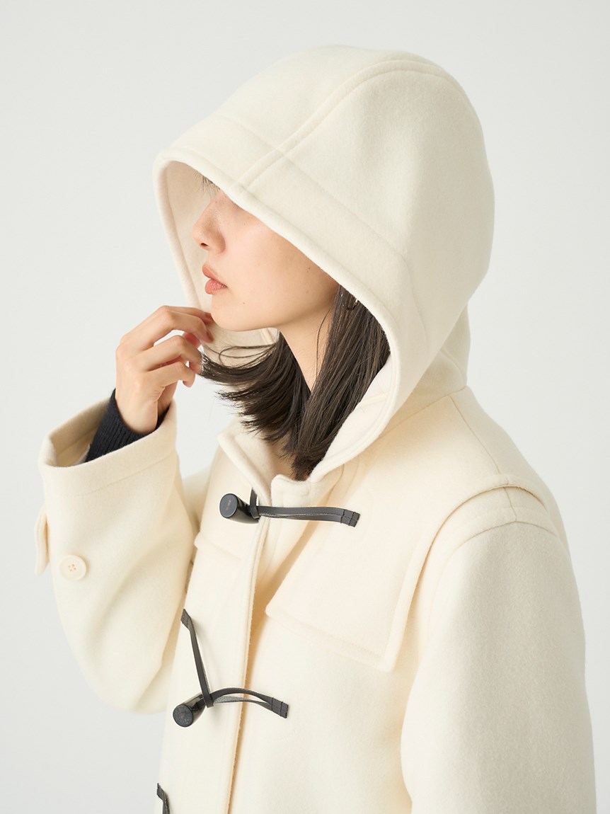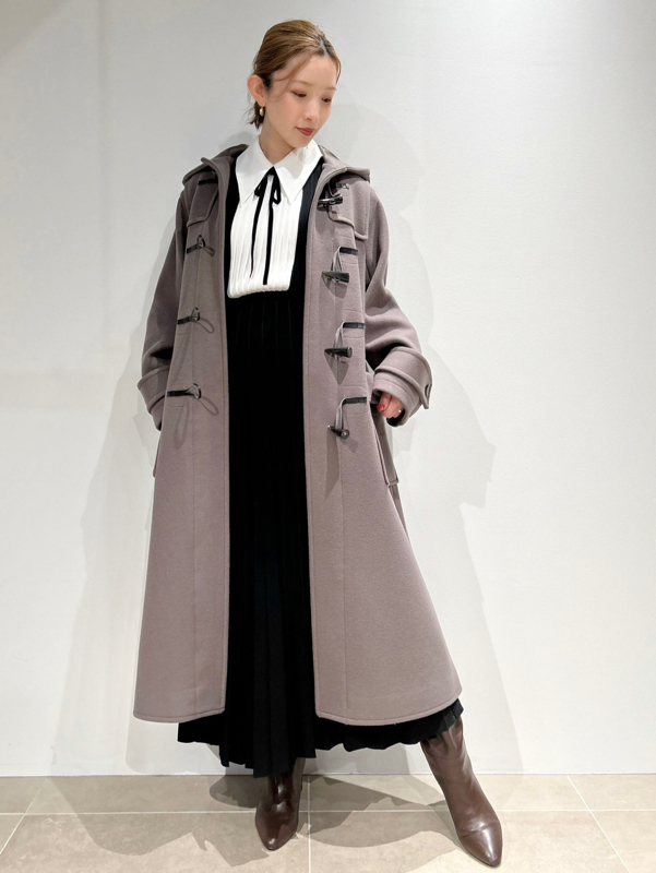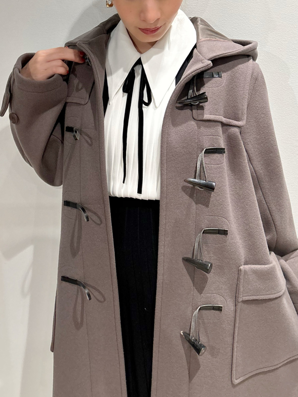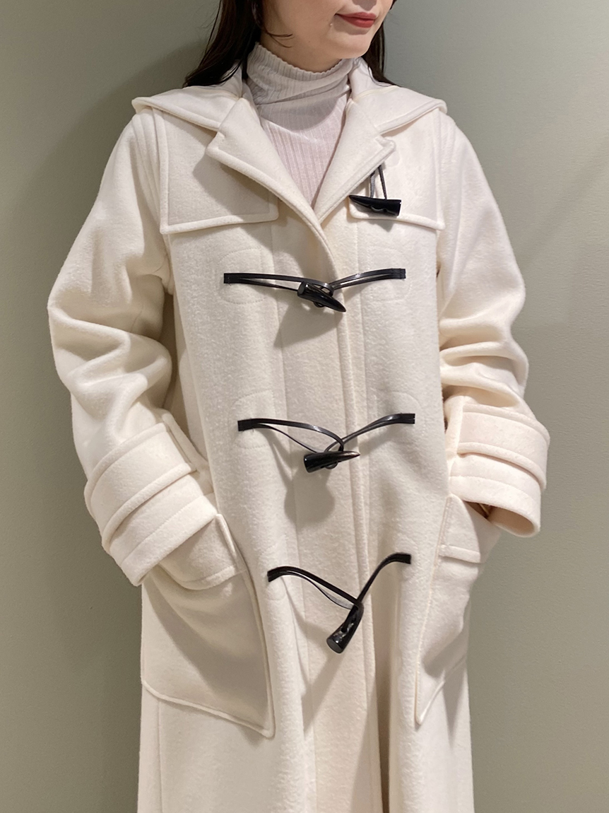 【こだわりのシルエットで女性らしく仕上げたロングダッフルコート】