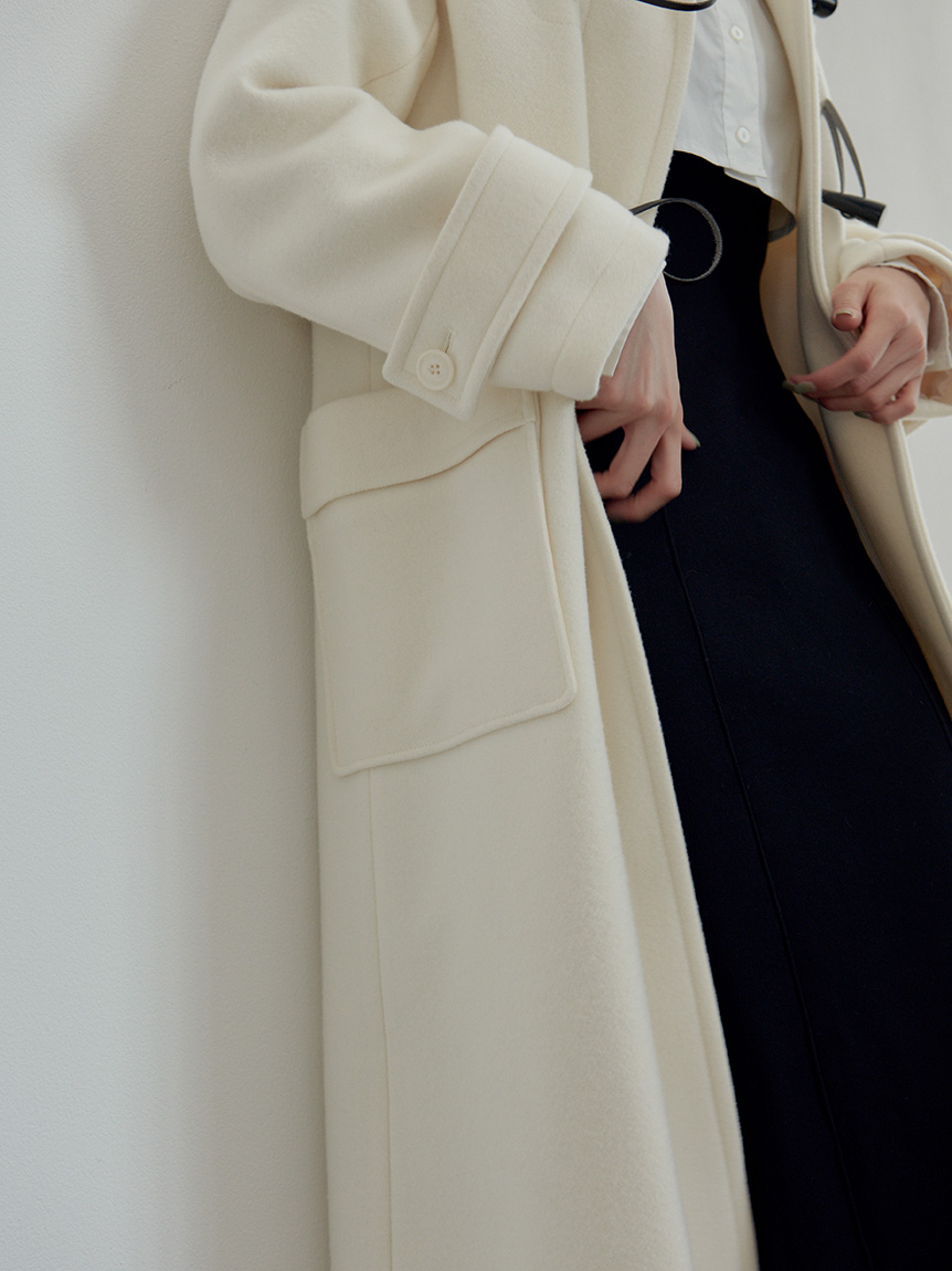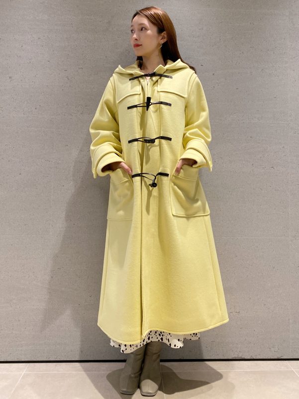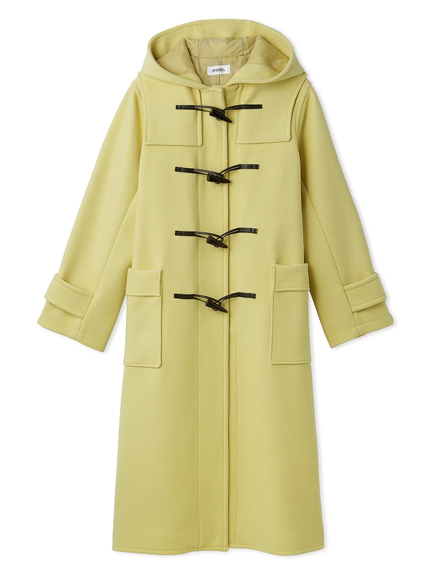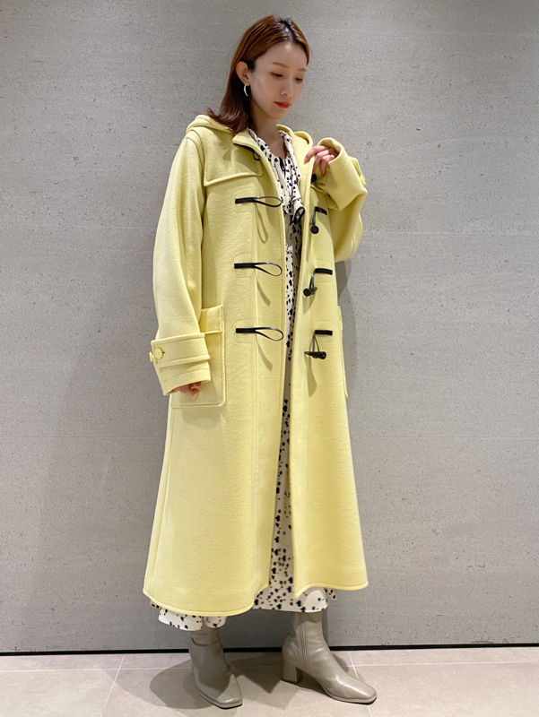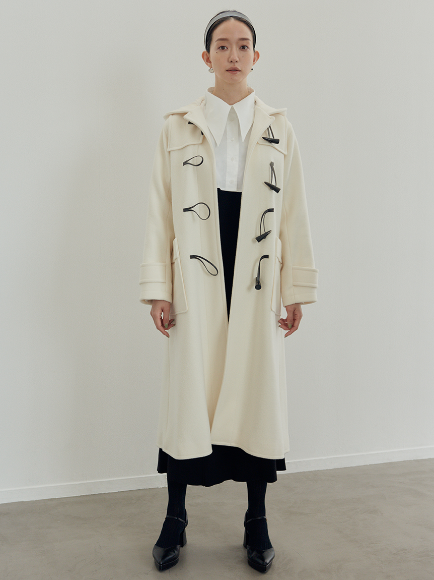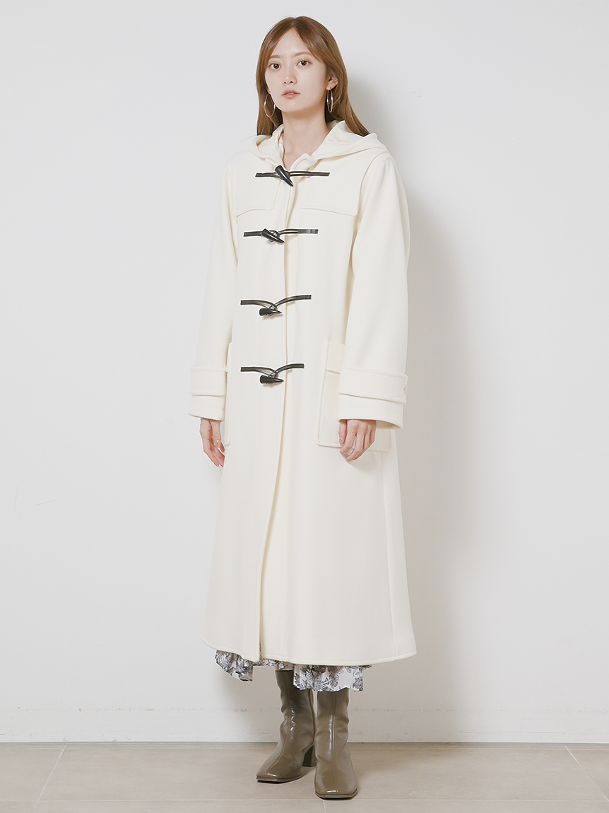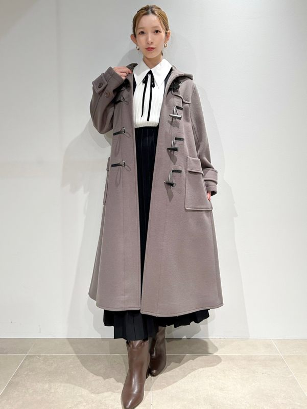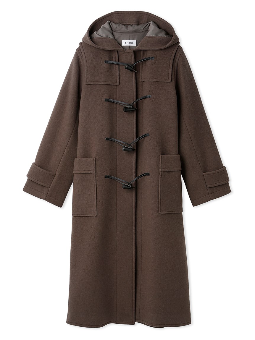 【こだわりのシルエットで女性らしく仕上げたロングダッフルコート】