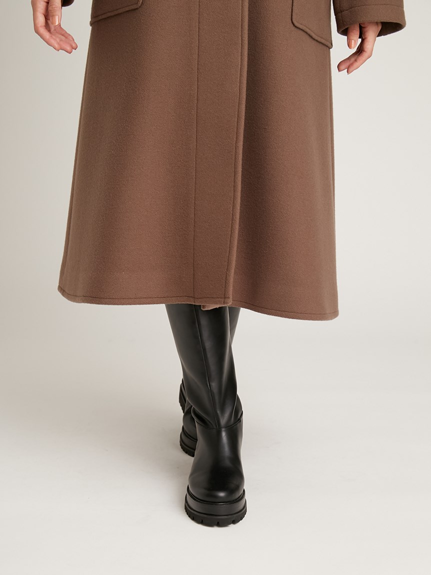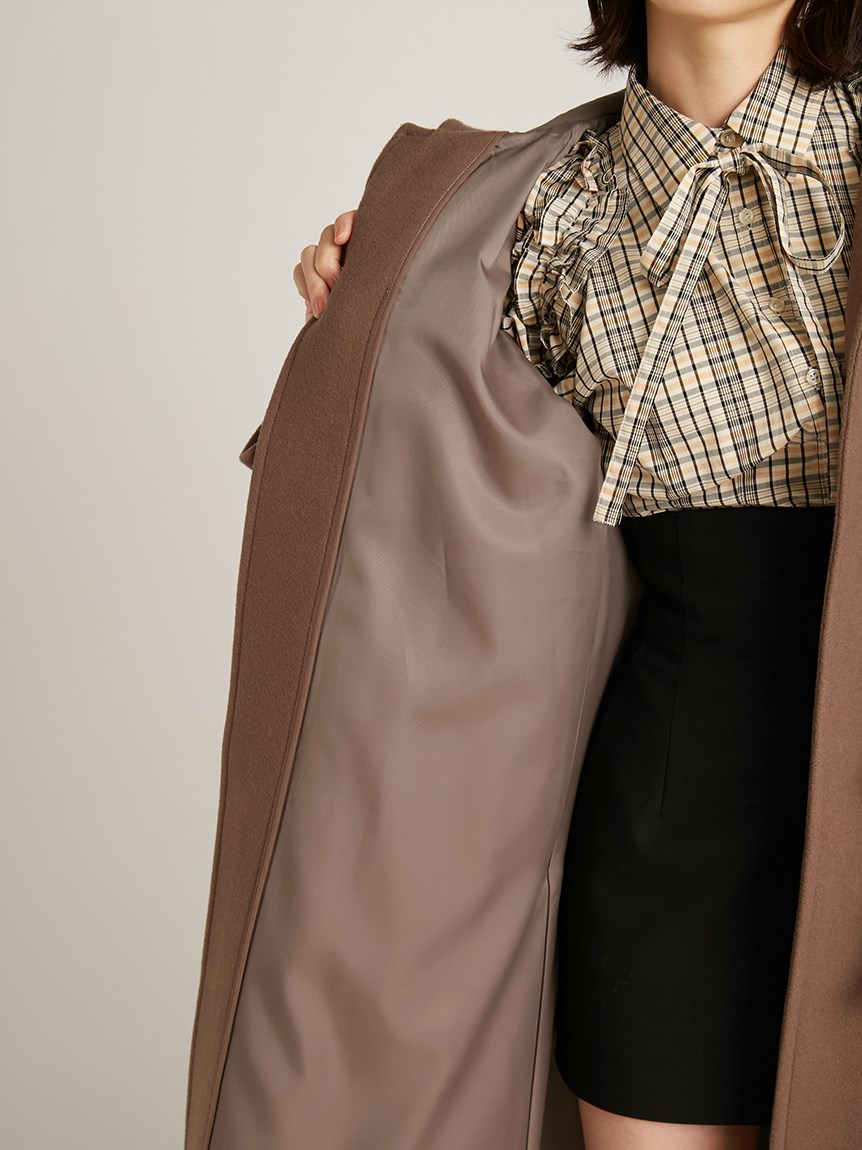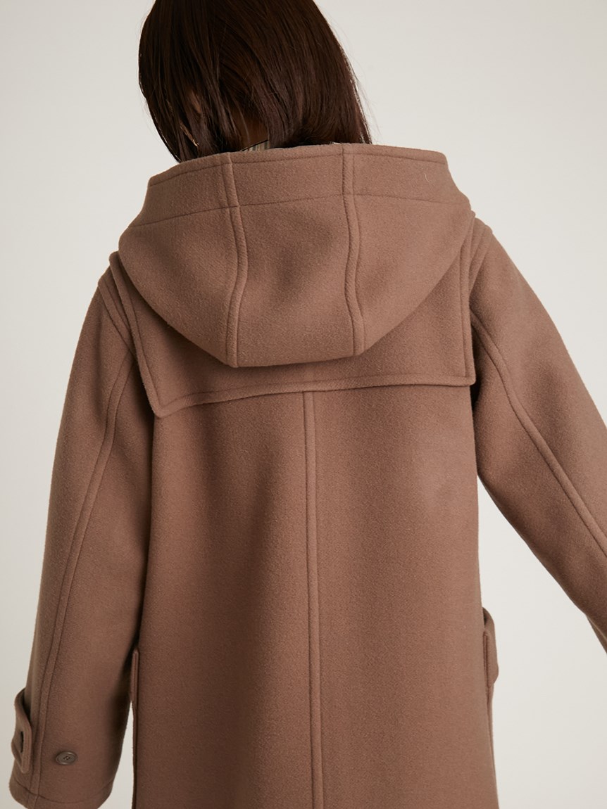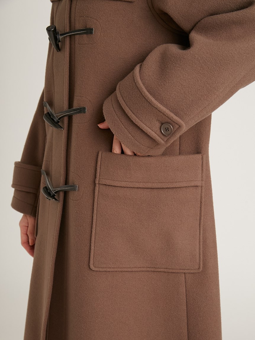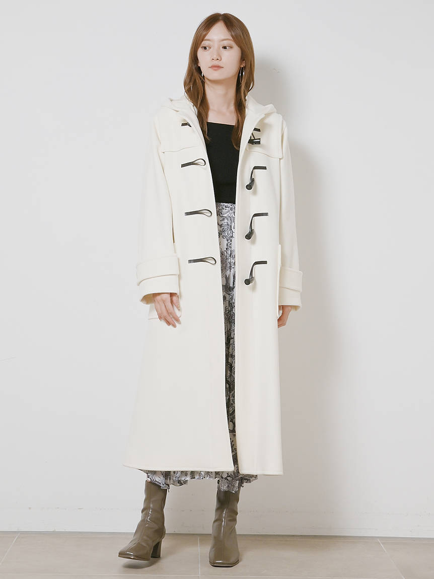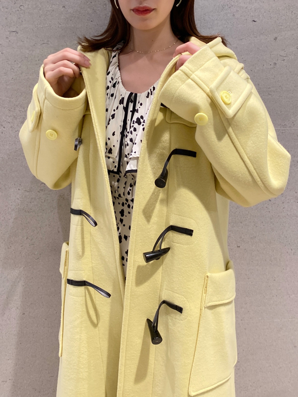 【こだわりのシルエットで女性らしく仕上げたロングダッフルコート】