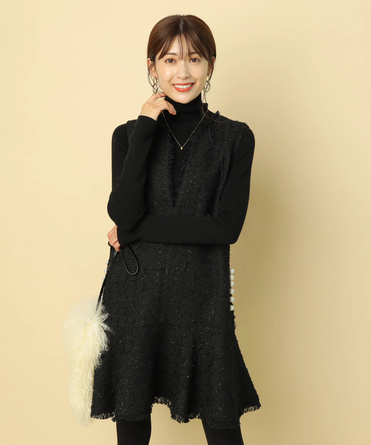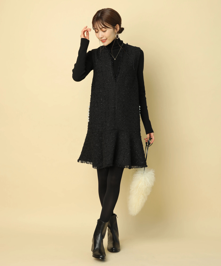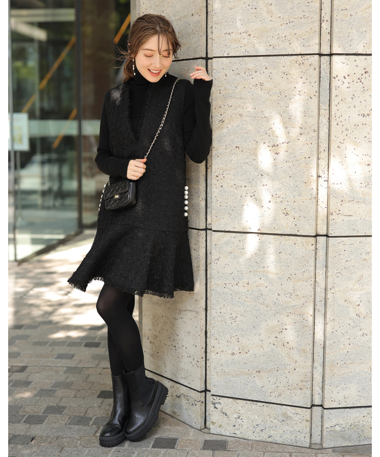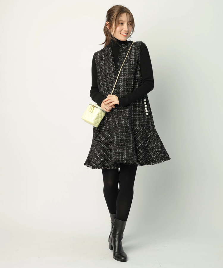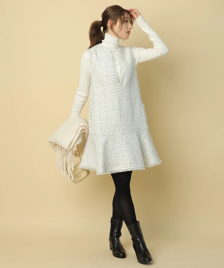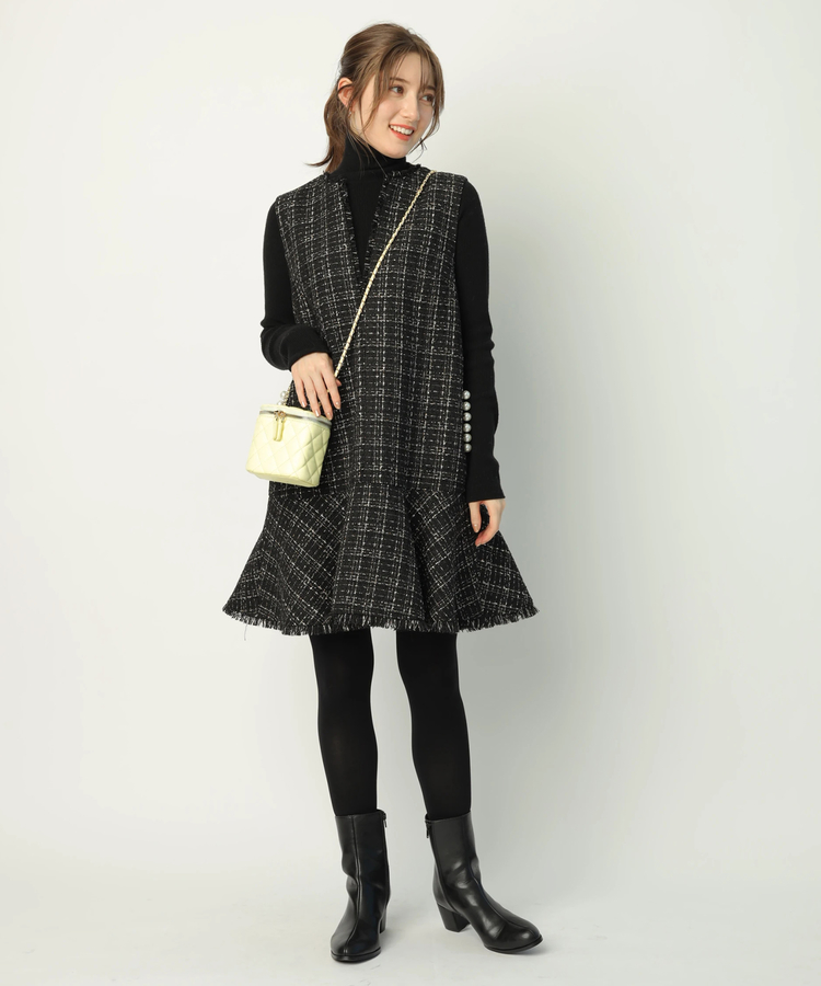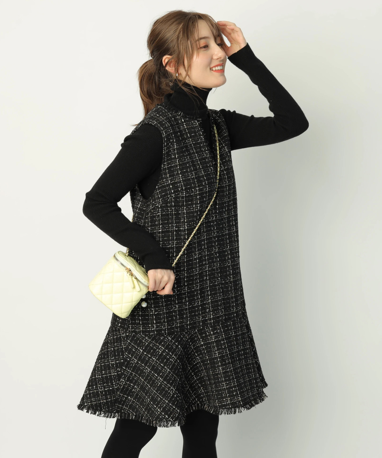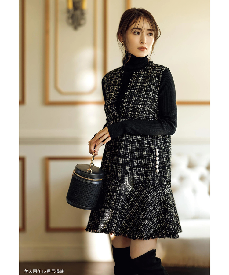 品のあるツイード生地がシーズンムードを演出するワンピース。