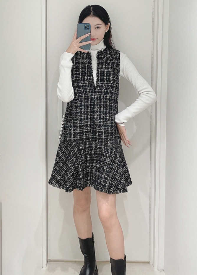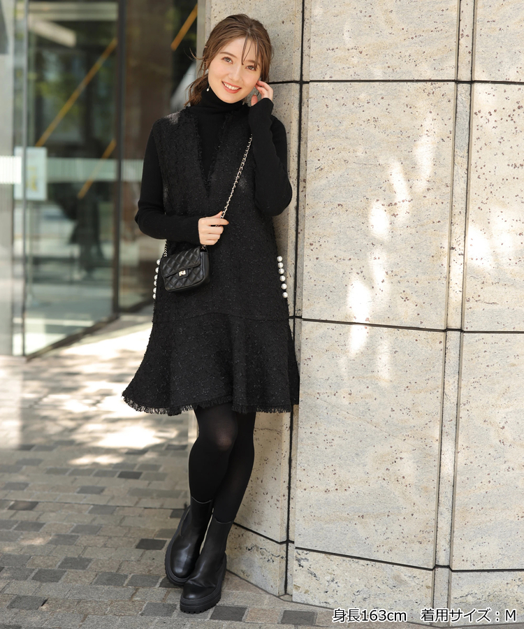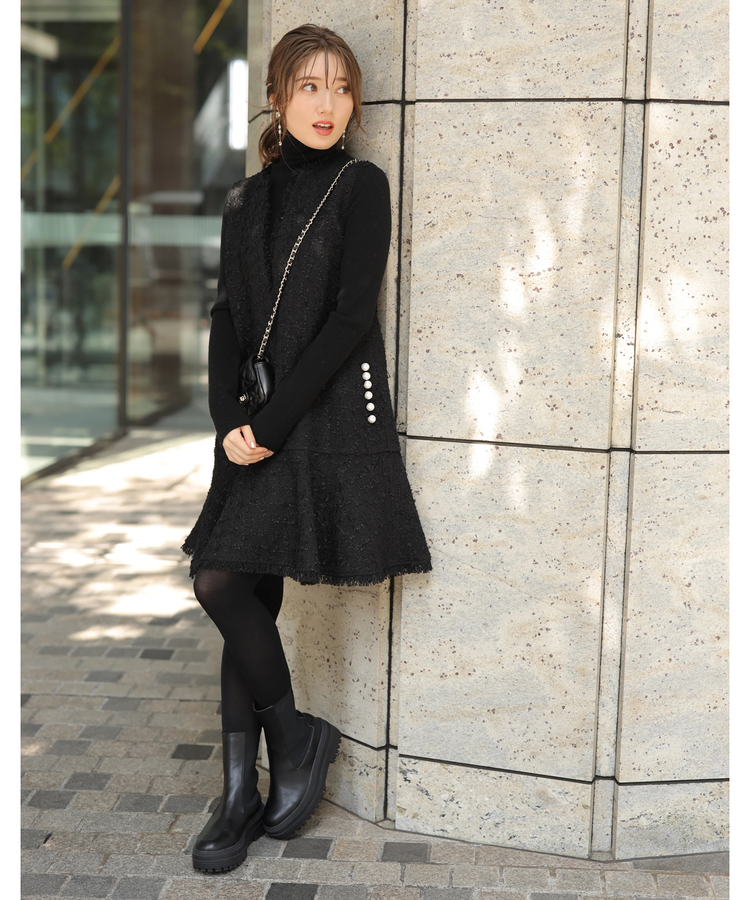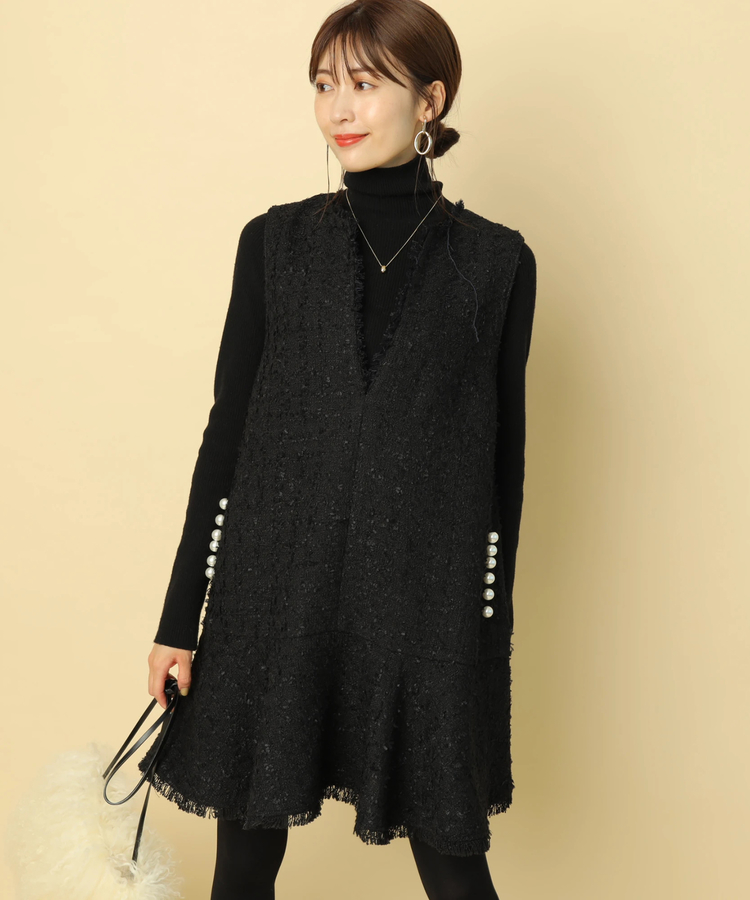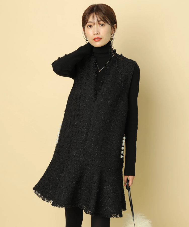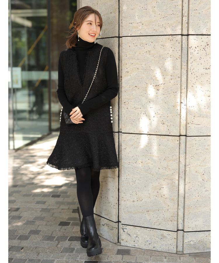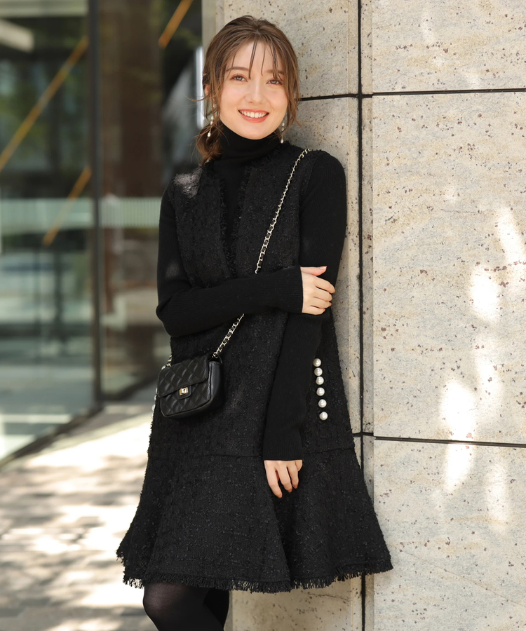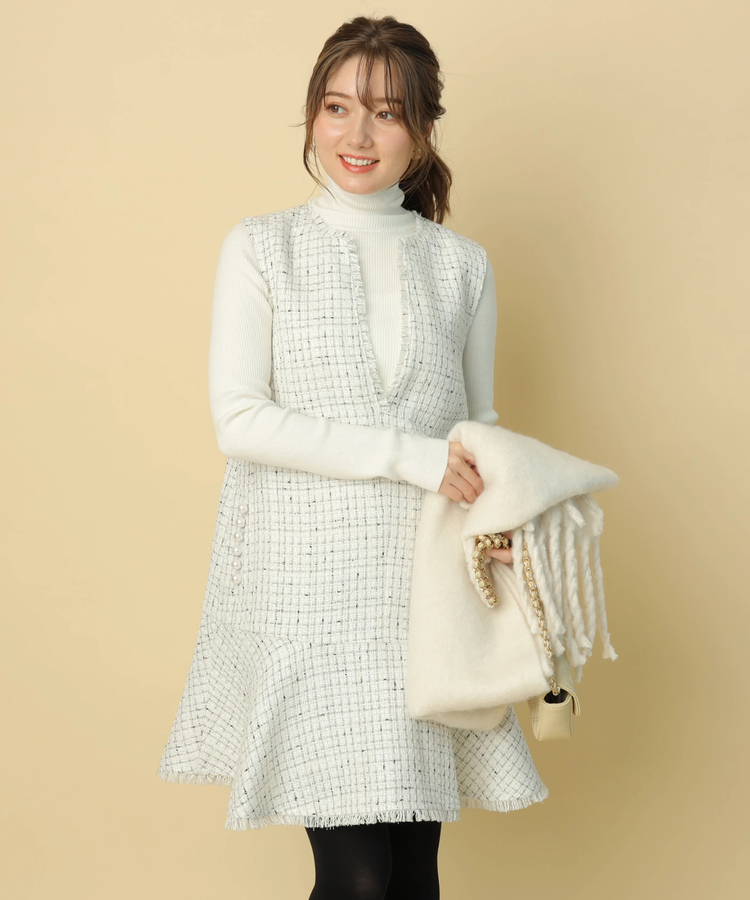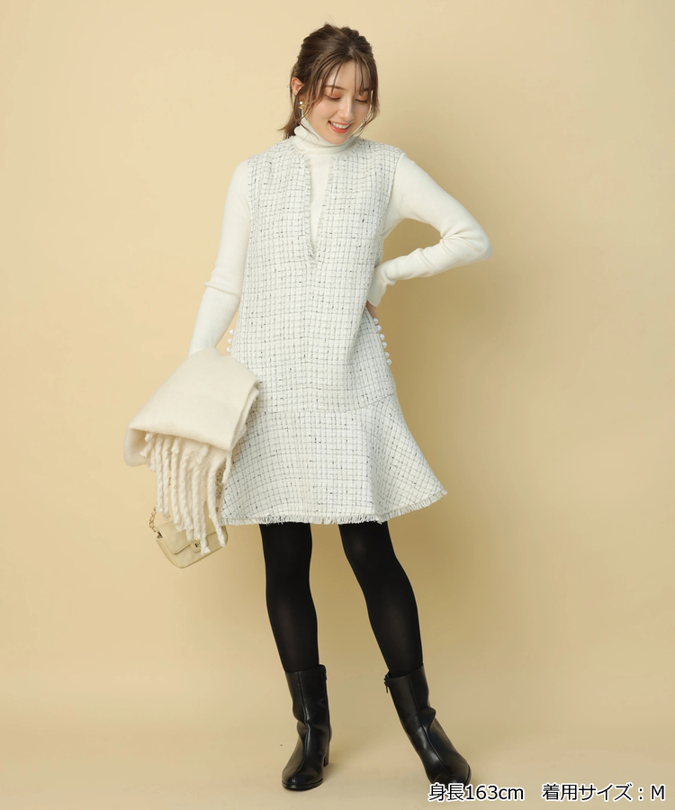 品のあるツイード生地がシーズンムードを演出するワンピース。