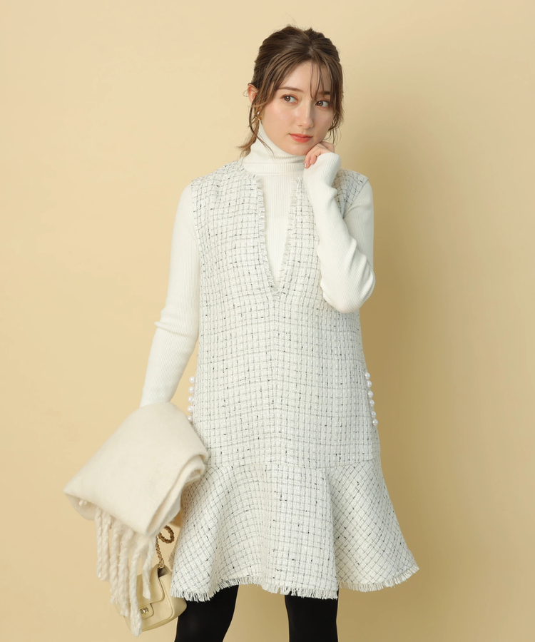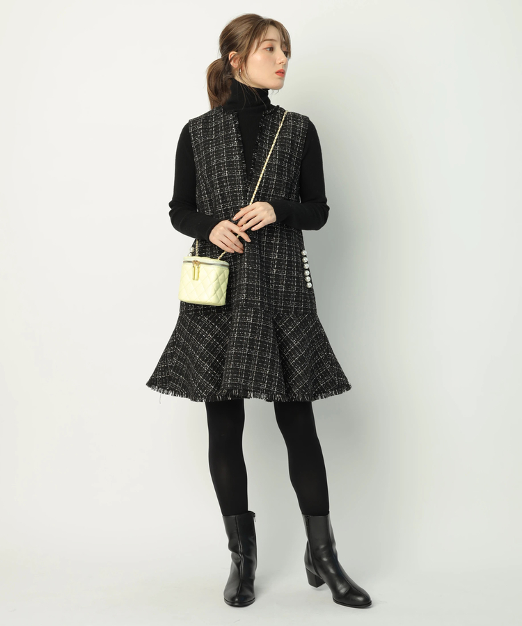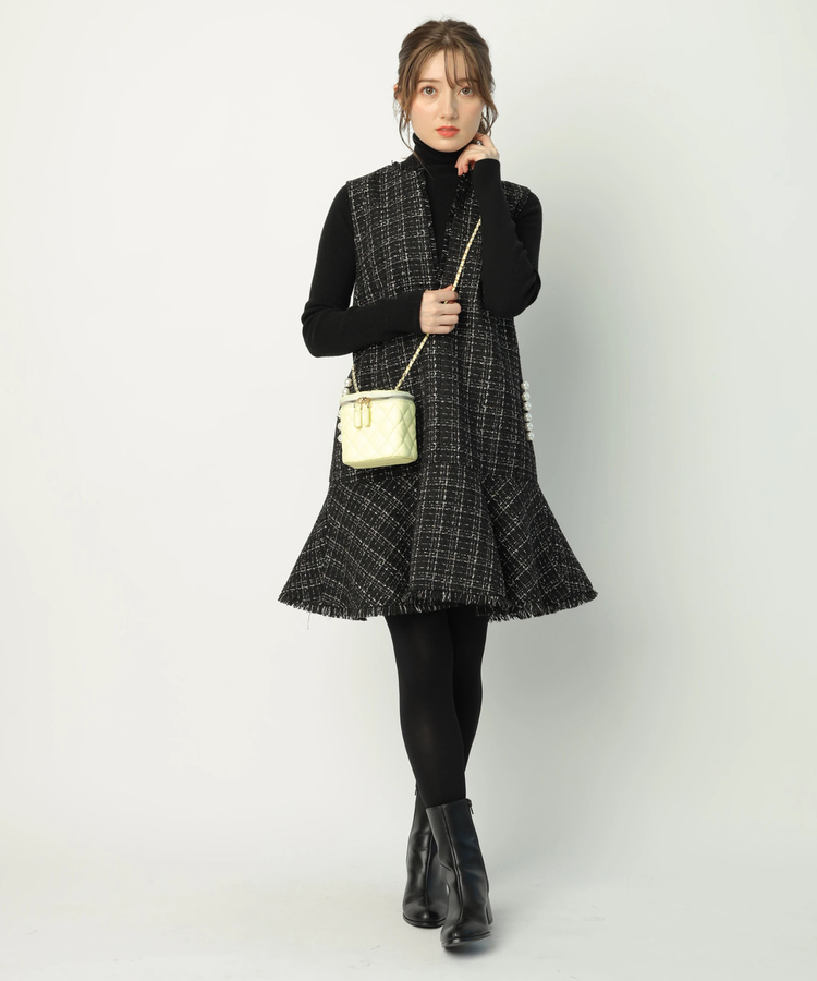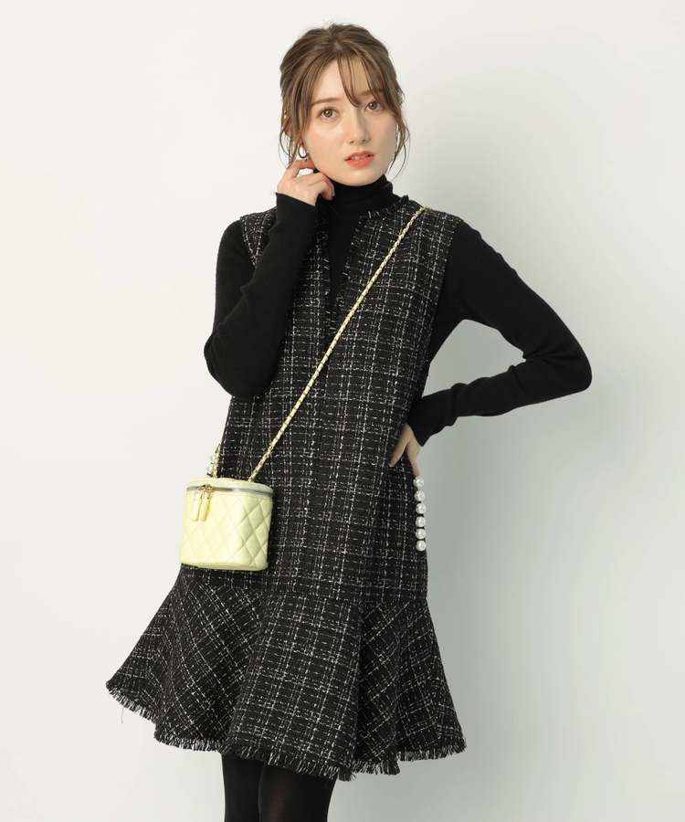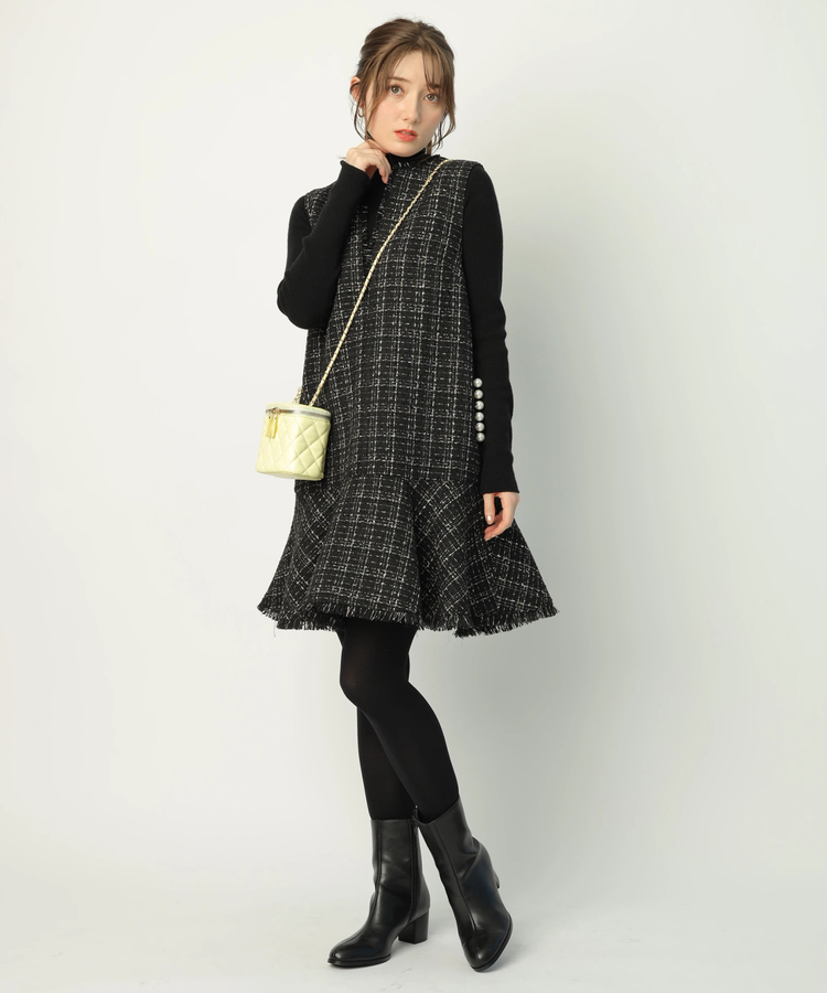 ツイードペプラムミニワンピース